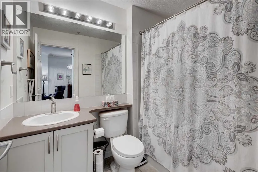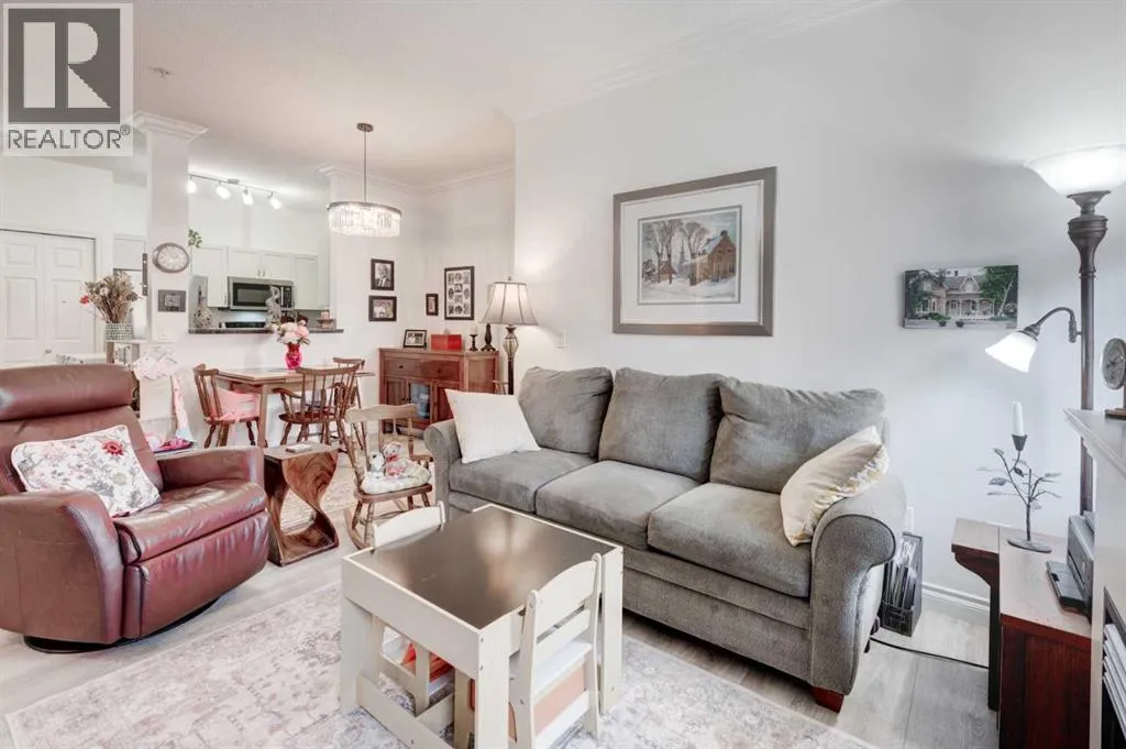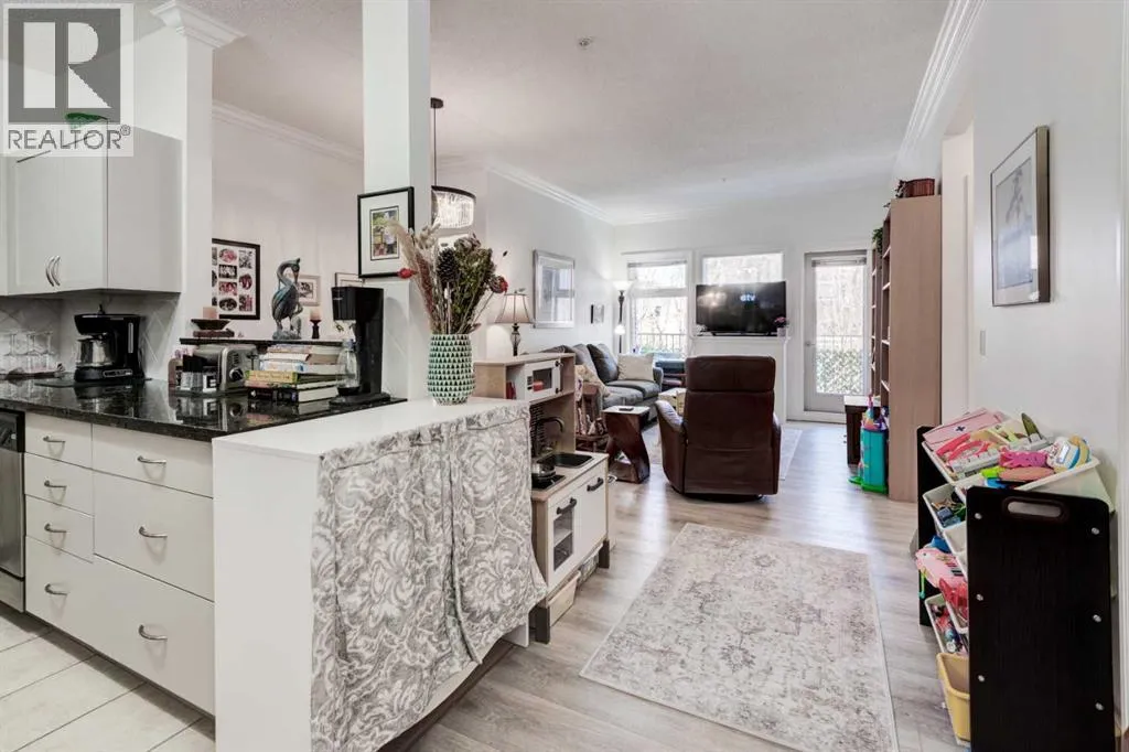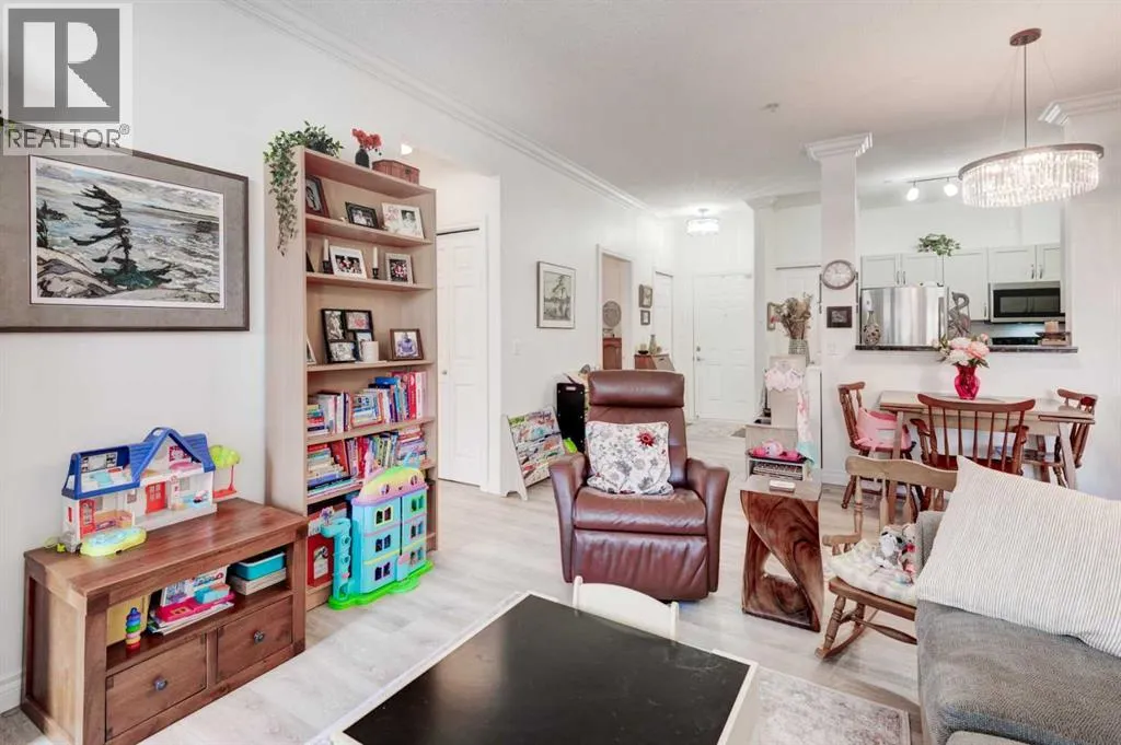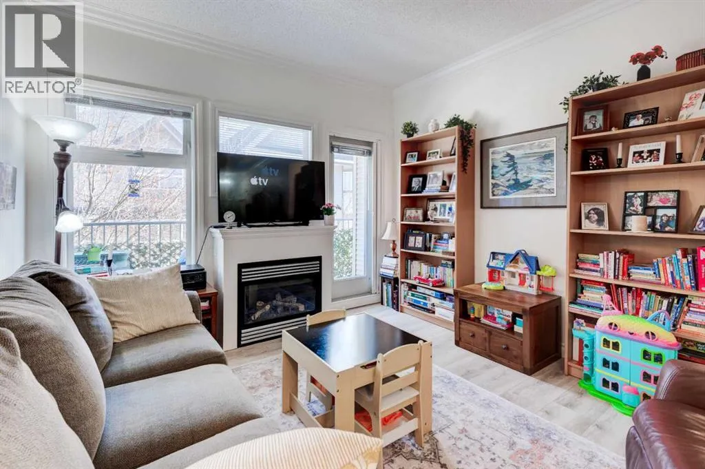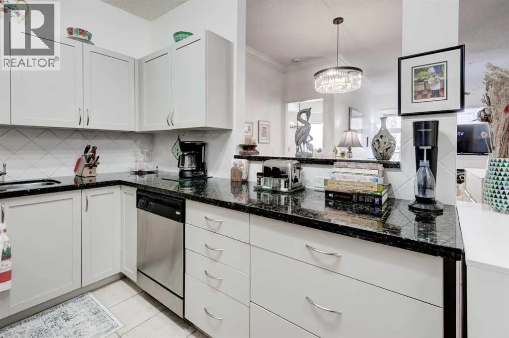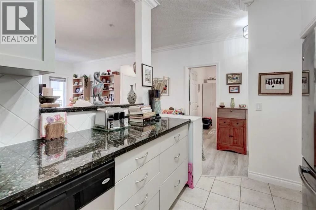 Welcome to this well-maintained 2 bedroom + den, 2 bathroom condo located in the established community of Cedarbrae. Situated in a low-rise building, this second-floor unit offers 885 sq ft of functional living space with a bright, open-concept layout, and high ceilings! Added BONUS it was freshly painted, and has new Carpet & LVP flooring!The kitchen features granite countertops, a breakfast bar, and ample cabinetry, flowing into the living area complete with a gas fireplace and access to a private balcony with gas line.The primary bedroom includes a 3-piece ensuite, and a built-in closet system in the walk through closet. The secondary bedroom is spacious and the Den provide flexibility for your family or a home office. A full 4-piece bathroom and in-suite laundry complete the unit.This unit includes one assigned heated underground parking stall and an assigned storage locker. Condo fees of $614.99/month include heat, water, sewer, parking, professional management, reserve fund contributions, and common area maintenance.Stonecroft is a well-managed complex offering amenities such as access to a fitness centre($25/month) in the building (same floor), bicycle storage, and elevator access. Conveniently located close to parks, schools, shopping, and golf. Pet ownership is subject to board approval and short-term rentals are not permitted. (id:27476)