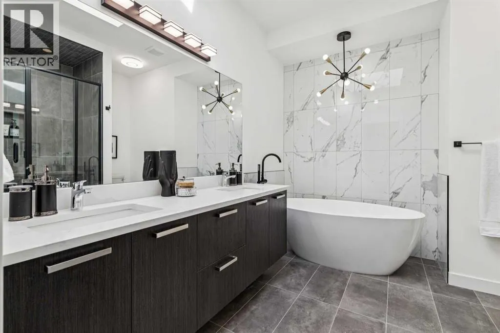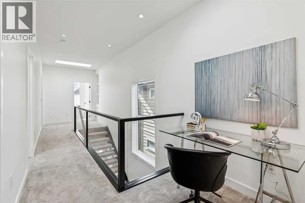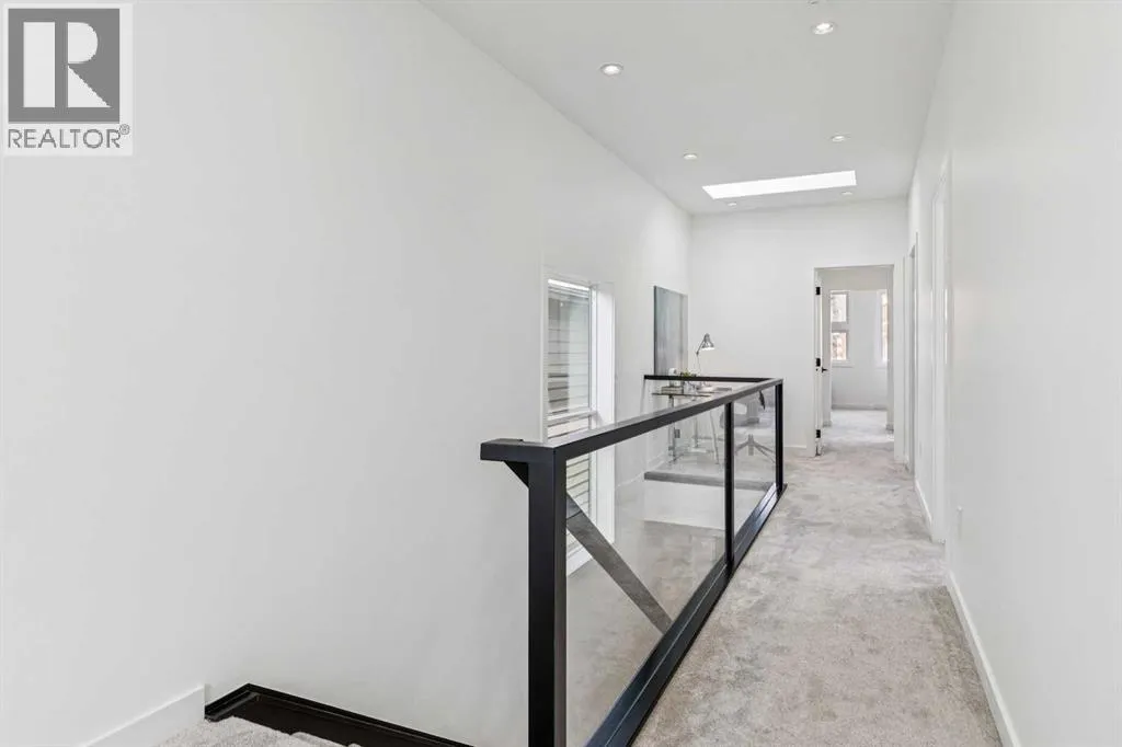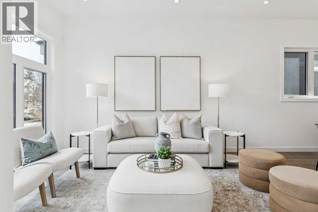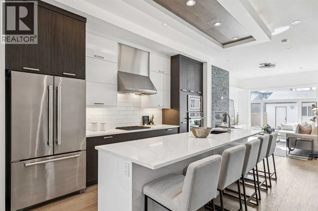 Situated on a 25' x 135' south-backing lot on a quiet, tree lined street in sought after Hillhurst! Located just five doors down from West Hillhurst Park (soccer field, baseball diamond, & playground), this newly constructed detached home offers over 2,800 sq ft of executive level living space. A bright & spacious front foyer opens into an expansive living area with large windows; gleaming hardwood floors throughout the main level beautifully accentuate the soaring 10ft ceilings. A centrally located dining area sits adjacent to the kitchen making it ideal for entertaining. The chef inspired kitchen features a commercial grade Jenn-Air package including gas cook top, wall oven,, & SS refrigerator; a large island offers ample seating & generous prep space. The commercial grade hood fan is a must have for serious chef's. An informal living area resides at the south end of the floor plan & is flooded with natural light through floor-to-ceiling South facing windows; the stone clad gas fireplace & custom millwork adds warmth & ambience. The South backyard is made even more impressive by the rare 135-foot lot depth which offers ample room for seating areas & green space/kids play space. A beautiful powder room & a spacious mudroom (with both open & closed storage) completes the main level. Open riser stairs lead you to the upper level where you will find three generously sized bedrooms, a convenient laundry room & a quiet study/office space (ideal for homework/working from home). The primary bedroom is a true sanctuary: large enough to accommodate a sitting area it features a custom walk-in closet & a luxurious 5-piece ensuite with heated floors, dual vanity, a deep soaker tub & standalone shower. Multiple skylights flood the upper level with natural light. The second & third bedrooms are spacious & include built-in closet organizers. The 4pc main bath also enjoys in-floor heat. The fully developed lower level features a large media area - perfect for movie nights - & is complemented by a nearby wet bar. A fourth bedroom & full bathroom provide an ideal setup for guests &/or extended family. The Hydronic in-floor Heating System is hooked up & operational & Central Air Conditioning has been already installed; working together they ensure comfort throughout all seasons. The double garage (built with 2x6 construction) provides room for vehicles & all of your gear. This home presents a great opportunity to live in one of the cityâs most desirable inner city communities & is located just one block from Queen Elizabeth School (Kâ12), a few blocks to the shops & restaurants of Kensington, & just four blocks to Riley Park. The location offers an exceptional inner-city lifestyle with unmatched walkability & is ideal for active families & professionals alike, call today for more information! (id:27476)