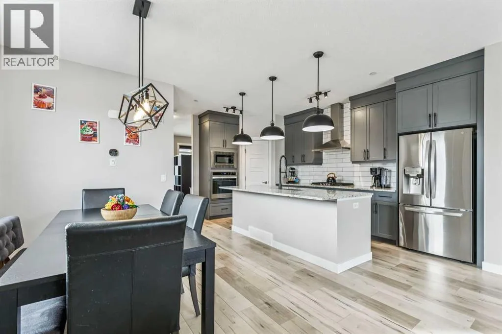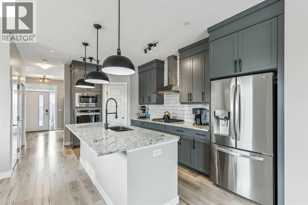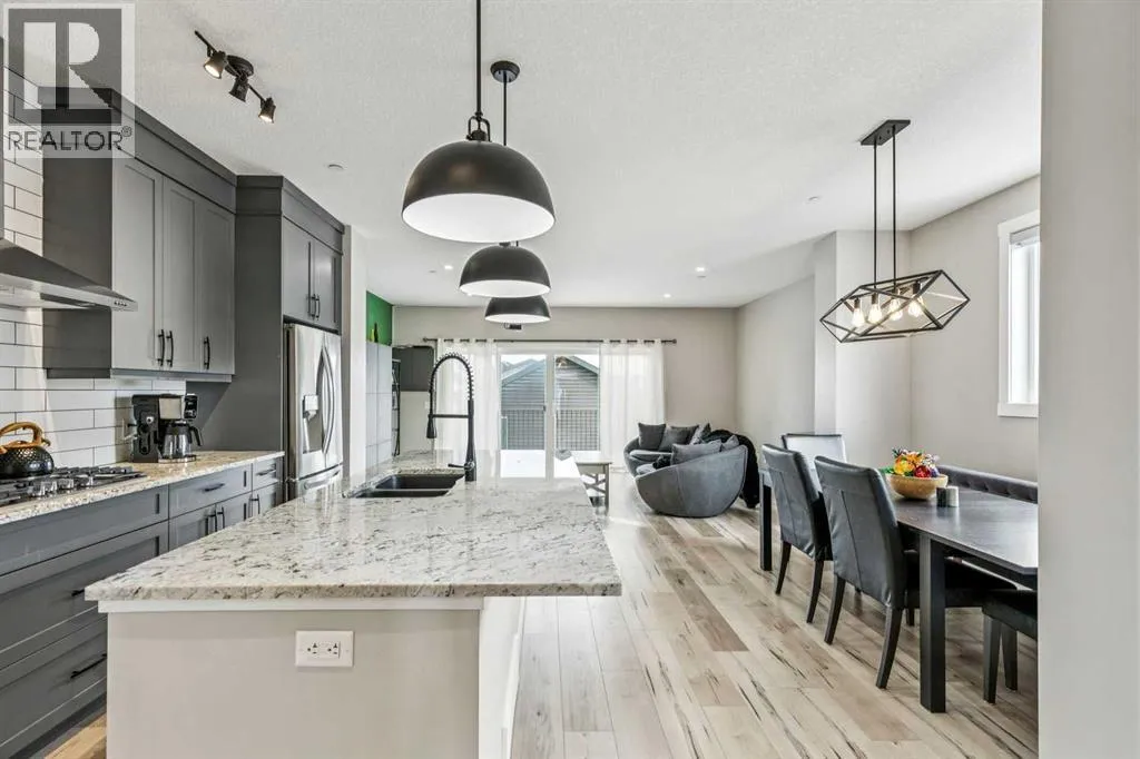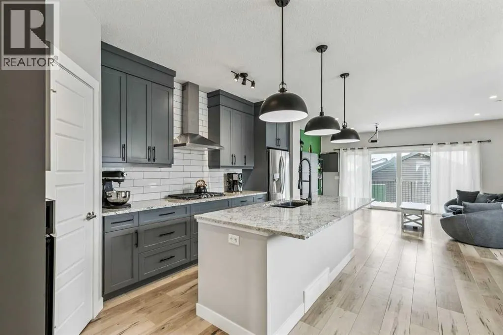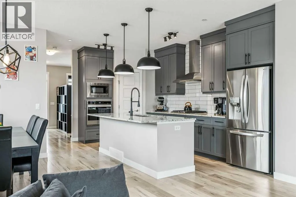 Welcome to 240 Lucas Avenue NW, a well-designed home in the growing community of Livingston that offers space, flexibility, and thoughtful upgrades throughout.Set on a corner lot, this property stands out right away with added privacy, extra light, and functional outdoor spaceâincluding a dedicated parking area perfect for a camper or additional vehicles. The double detached garage was built by the builder, matching the quality and design of the home.Inside, the main floor is bright and open with large windows and upgraded sliding doors that lead straight out to the deckâmaking it easy to enjoy indoor-outdoor living. The front room is currently set up as a home office but can easily flex into a playroom, sitting area, or formal dining space depending on your needs.The kitchen is a true highlight, featuring a gourmet upgrade with quartz counters, a large island, gas cooktop, built-in oven, and plenty of storage. Itâs built for both everyday living and hosting.Upstairs, youâll find three well-sized bedrooms, including a spacious primary retreat with a full ensuite, along with a bonus living area and convenient upper laundry.Downstairs, the legal suiteâprofessionally developed by the builderâoffers a great setup for rental income or multi-generational living. With its own separate side entrance, full kitchen, bedroom, bathroom, and no carpet throughout, itâs clean, durable, and low maintenance.Additional features include central A/C, a projector that stays with the home, and a fully fenced yard.Livingston is one of Calgaryâs most sought-after newer communities, known for its incredible community hub, parks, playgrounds, and future amenities. The Livingston Hub offers year-round activities, skating, events, and space to connectâgiving the area a real sense of community. Youâre also close to major roadways, making it easy to get in and out of the city.For more information, photos, and a guided 360 tour, click the links below. (id:27476)