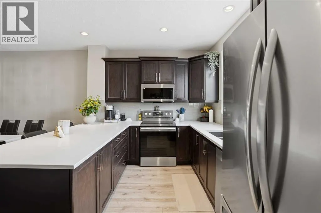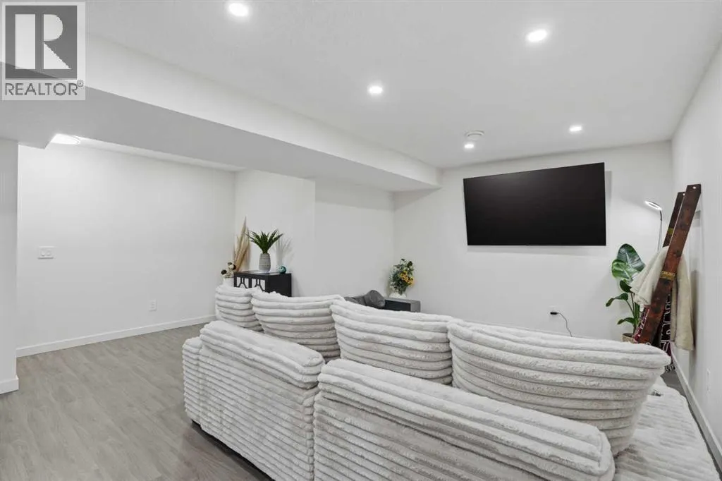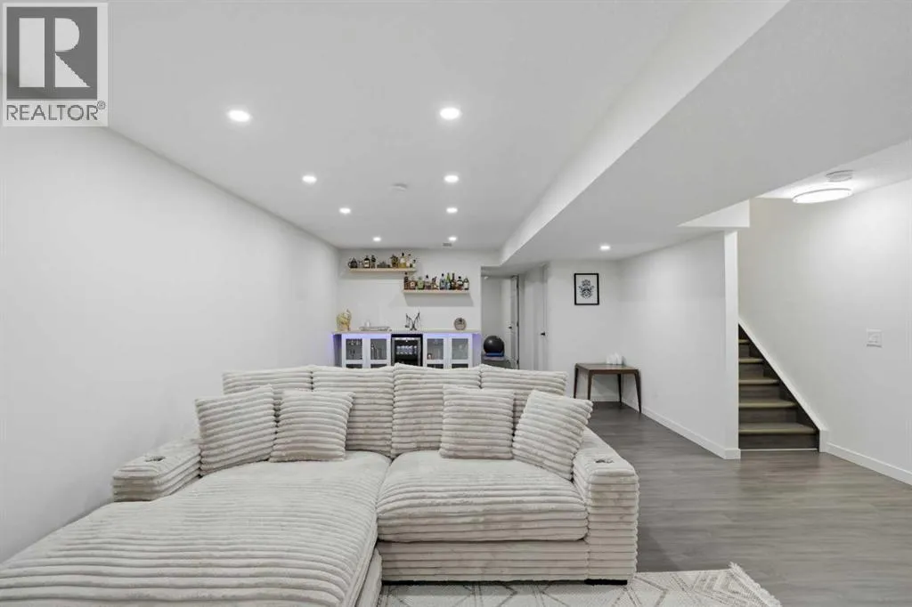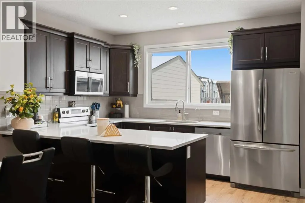 Exquisite craftsmanship and modern design define this stunning Jayman BUILT âAvidâ model, ideally located in the prestigious lake community of Mahogany. offering over 2,600 sq ft of FULLY DEVELOPED beautifully designed living space, this home delivers the perfect blend of style, function, and lifestyle.Step inside to discover a bright and OPEN FLOORPLAN anchored by a GOURMET KITCHEN featuring an extended flush eating bar, Polaire QUARTZ COUNTERTOPS, undermount Silgranit sink, sleek STAINLESS STEEL Samsung appliances, and elegant pendant lighting. The kitchen flows seamlessly into the spacious dining area and inviting great room, creating an ideal space for both everyday living and entertaining.Just off the kitchen, a well-sized MUDROOM with direct backyard access provides everyday convenience, complete with ample space for storing jackets, shoes, and all of your familyâs daily essentials.At the front of the home, a VERSATILE FLEX ROOM offers incredible functionality, perfect for a home office, study area, kidsâ playroom, or additional family space.The main floor is finished with rich harp plank oak laminate flooring, complemented by designer tile in the entryways and powder room. A versatile front flex space and charming veranda add both character and functionality to the home.Stay comfortable year-round with the added bonus of central AIR CONDITIONING.Upstairs, youâll find THREE GENEROUS BEDROOMS, convenient upper floor laundry, and a cozy loft space perfect for a home office or relaxation zone. The primary retreat offers a walk-in closet and a private ensuite designed for comfort and convenience.The fully FINISHED BASEMENT expands your living space with a fourth bedroom, 3-piece bathroom, large recreation area, and bar, making it perfect for guests, entertaining, or growing families.Located in one of Calgaryâs most sought-after lake communities, Mahogany offers year-round amenities including beaches, pathways, and an unmatched lifestyle for families. This is your opportunity to own a beautifully finished home in a community youâll enjoy for years to come. (id:27476)