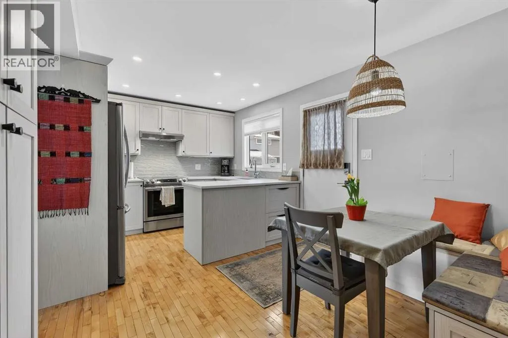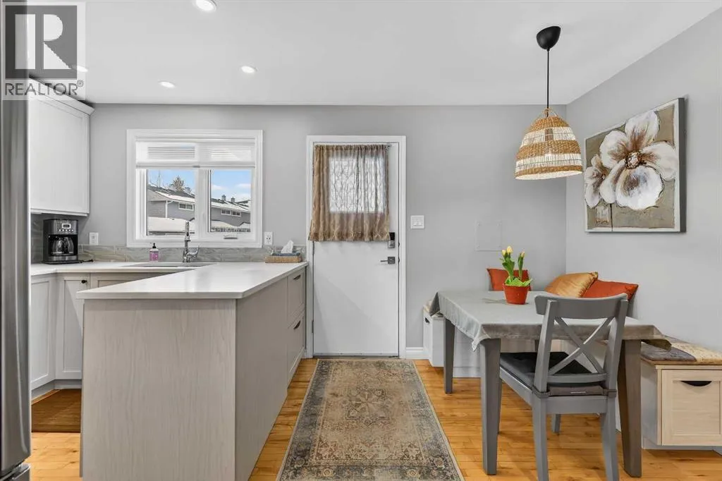 Welcome to this charming and lovingly maintained townhouse in the heart of Renfrew, where pride of ownership is evident throughout. Having been cared for by the same owner for 25 years, this home has been thoughtfully updated over time, blending comfort, functionality, and timeless appeal.Step inside to a bright and inviting main level, where sunshine pours through the kitchen window, creating a warm and welcoming space to start your day. The kitchen was beautifully renovated in 2018, featuring custom cabinetry, sleek quartz countertops, stainless steel appliances, and clever storage solutions. A cozy breakfast nook with a built-in bench and hidden storage adds both character and practicality.The spacious living room offers a relaxing retreat, complete with a large window that fills the space with natural lightâperfect for both quiet evenings and entertaining guests. Additional updates include new windows in 2020 and fresh paint throughout in 2024, giving the home a refreshed, move-in-ready feel.Upstairs, youâll find two well-sized bedrooms with durable vinyl flooring and an updated 4-piece bathroom (2022), designed with comfort and style in mind.The lower level adds valuable flexibility with a developed recreational spaceâideal for a home office, workout area, or additional living space to suit your lifestyle. Mechanical updates provide peace of mind, including a hot water tank and furnace replaced in 2019, along with a washer and dryer updated in 2021.Located just minutes from downtown Calgary, this home offers exceptional access to a wide range of amenities. Enjoy nearby attractions such as the Renfrew Aquatic & Fitness Centre, tennis courts, the Calgary Zoo, TELUS Spark Science Centre, and an abundance of parks and pathways along the Bow River and Nose Creekâperfect for walking, running, or cycling. Trendy cafés, restaurants, shopping, and off-leash dog parks are all within easy reach.This is your opportunity to experience the perfect balance of a pe aceful, park-like setting with the convenience of inner-city living. Call today to book your private showing and discover why Regal Park is the perfect place to call home. (id:27476)