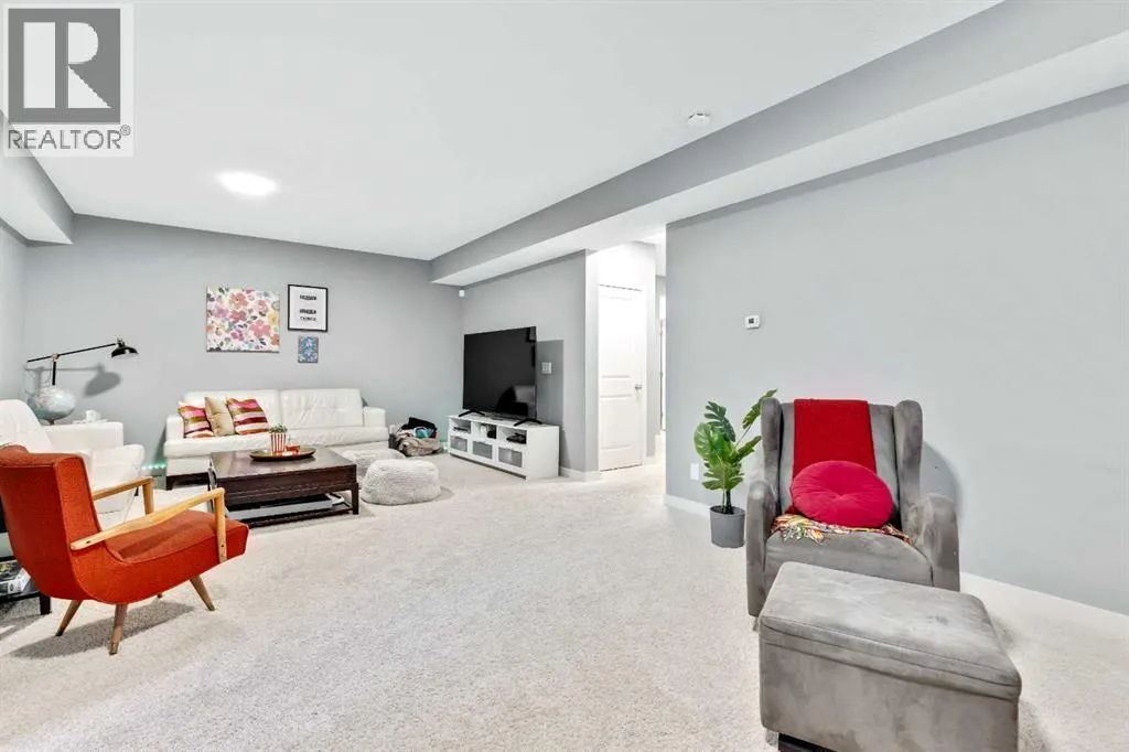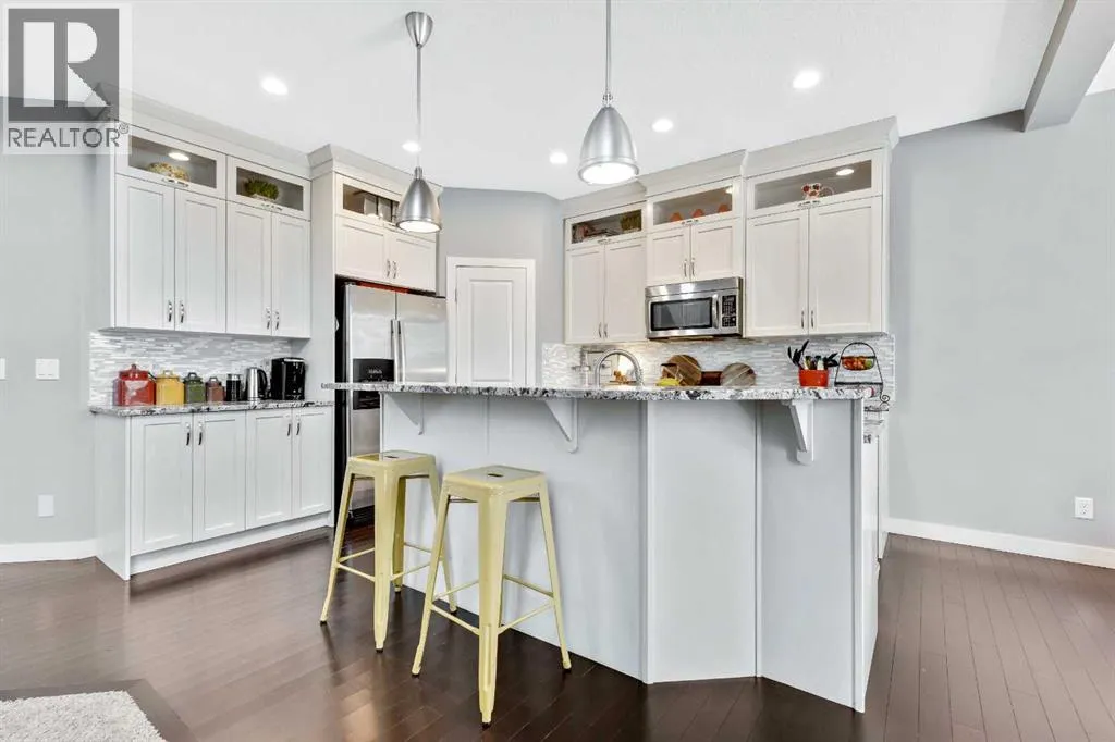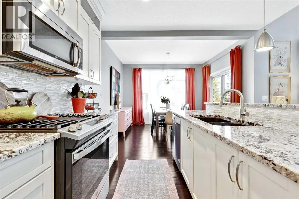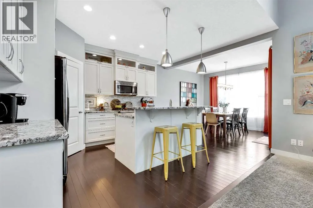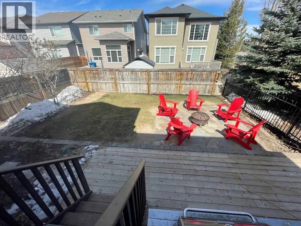 Welcome home to this bright and open family home in Cranston. Located on a quiet street, siding onto a park and across the street from the ridge walking trails this house is positioned perfectly in the community as you are also a short walk to the community center, shopping and pub and most importantly walking distance to schools. When you enter the home you notice this isn't your cookie cutter build as the 2 storey foyer greets you and shows off the 2 storey great room as well. Hardwood floors lead you past the main floor office/flex space to a bright kitchen with full height cabinets, gas stove and granite countertops. Upstairs you will find 3 bedrooms and 2 full baths. Granite countertops are featured throughout the house in all the bathrooms and even laundry/mudroom. The basement is finished at the same level of craftsmanship as the main floor and contains 2 more bedrooms, 1 full bath and a large rec room. Under the stairs you will find a cute space for kids to have as a hidden fort or reading nook. The landscaping has been thought of to maximize the lots location and privacy, the backyard is an oasis with plenty of plants, a fire patio, hammock patio and BBQ deck to make entertaining a breeze. Currently there is a rink in the backyard from the winter months but will be taken down with warmer weather coming our way to reveal the landscaping you see in the photos. (id:27476)