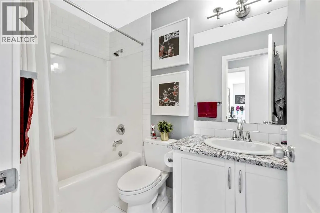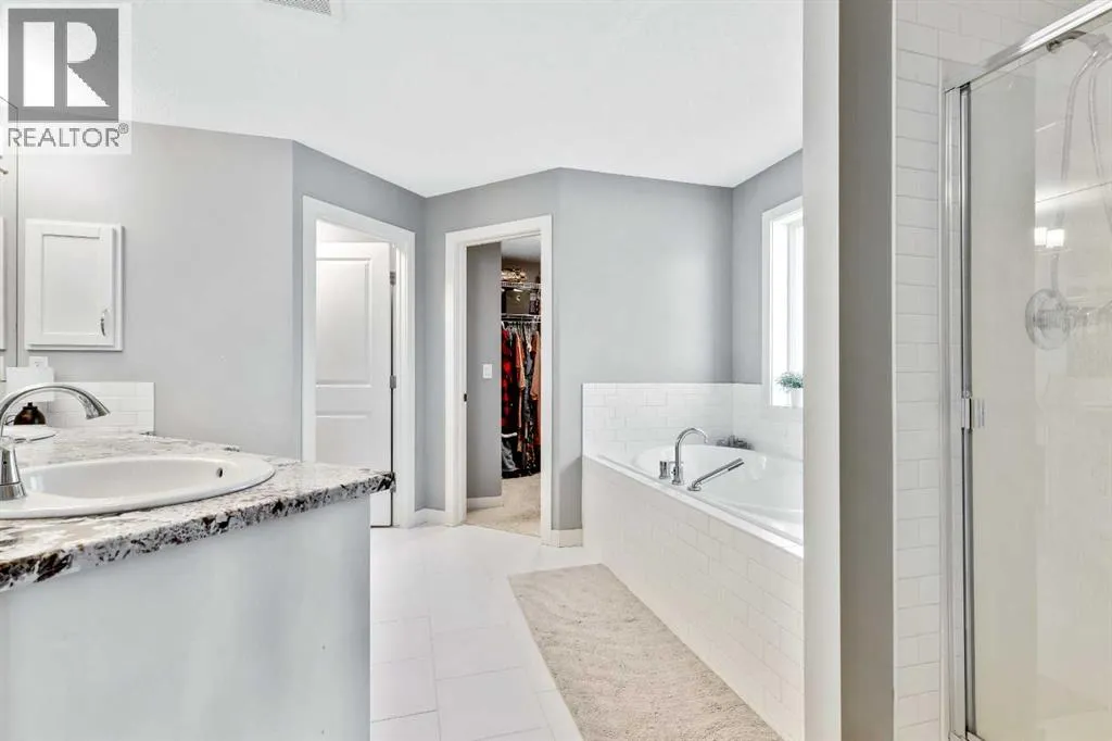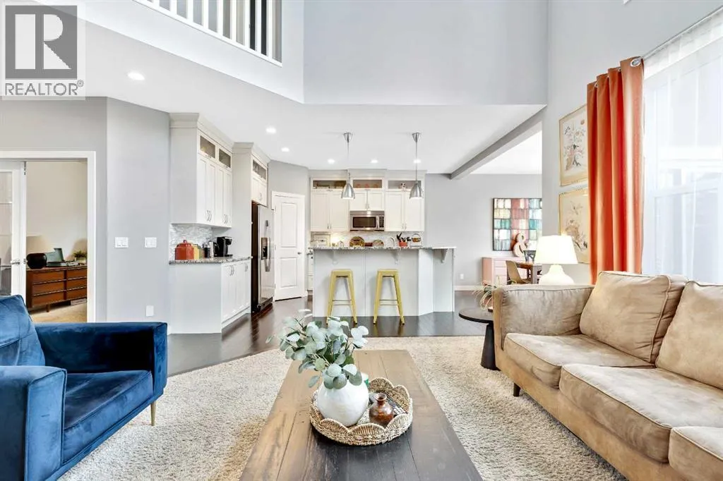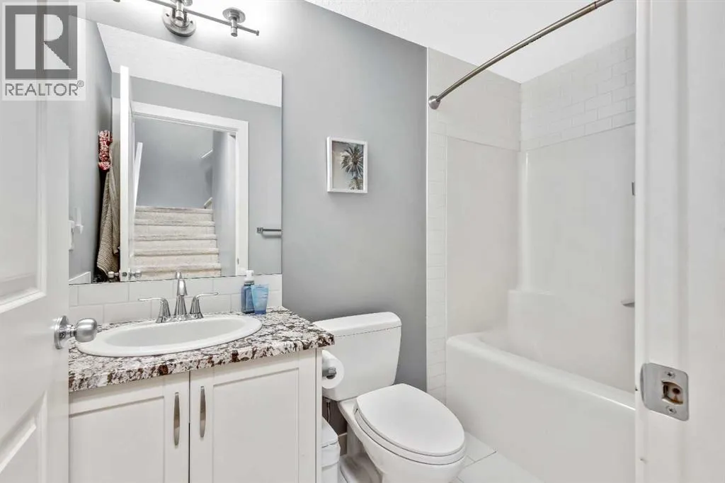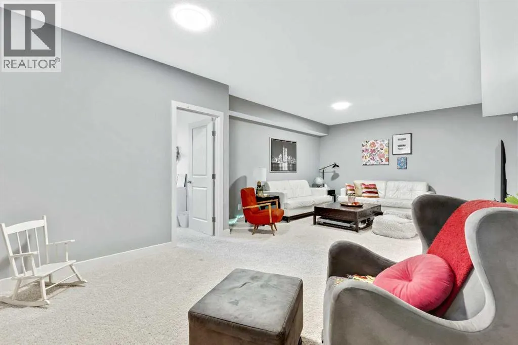 Welcome home to this bright and open family home in Cranston. Located on a quiet street, siding onto a park and across the street from the ridge walking trails this house is positioned perfectly in the community as you are also a short walk to the community center, shopping and pub and most importantly walking distance to schools. When you enter the home you notice this isn't your cookie cutter build as the 2 storey foyer greets you and shows off the 2 storey great room as well. Hardwood floors lead you past the main floor office/flex space to a bright kitchen with full height cabinets, gas stove and granite countertops. Upstairs you will find 3 bedrooms and 2 full baths. Granite countertops are featured throughout the house in all the bathrooms and even laundry/mudroom. The basement is finished at the same level of craftsmanship as the main floor and contains 2 more bedrooms, 1 full bath and a large rec room. Under the stairs you will find a cute space for kids to have as a hidden fort or reading nook. The landscaping has been thought of to maximize the lots location and privacy, the backyard is an oasis with plenty of plants, a fire patio, hammock patio and BBQ deck to make entertaining a breeze. Currently there is a rink in the backyard from the winter months but will be taken down with warmer weather coming our way to reveal the landscaping you see in the photos. (id:27476)