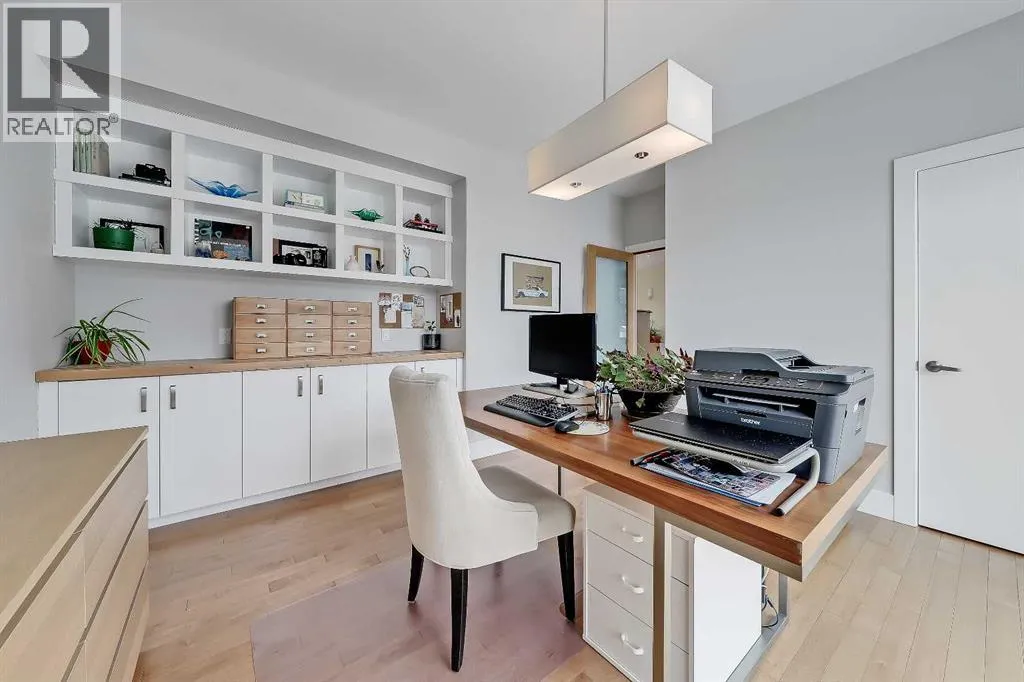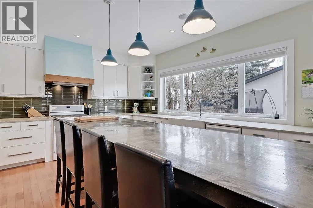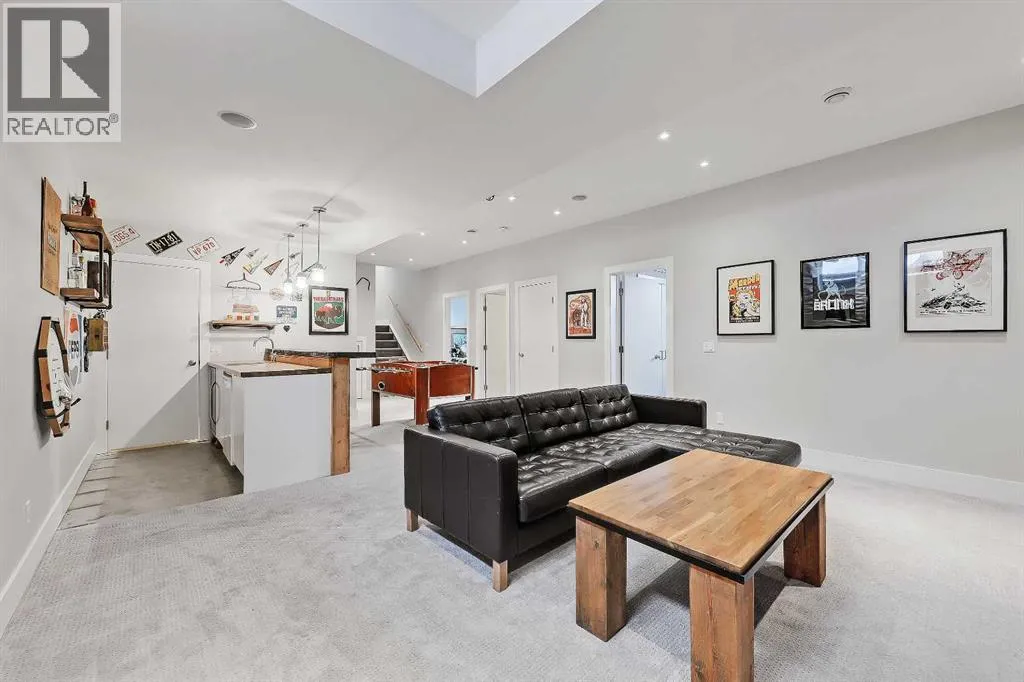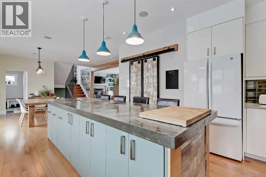 Incredibly rare opportunity for a custom-built infill on a full-sized 50â x 120â lot in the established inner-city community of Montgomery! This unique home offers a total of 3,524 sq. ft. of living space with 5 bedrooms plus a den/additional bedroom, 3.5 baths, a fully developed basement, an oversized double detached garage, with loads of custom features inside and out including an ICF concrete foundation and an outdoor sauna! This property is ideal for families, professionals working from home, or buyers seeking a well-built inner-city home with modern features and convenient access to outdoor recreation. Boasting an impressive curb appeal, this home offers a stucco exterior, large windows, and a well-landscaped front yard. The bright, open-concept main floor features floor-to-ceiling windows, a large living room with a wood-burning fireplace with concrete hearth, wood mantle, and built-in shelving, and a spacious office or spare bedroom. The chef-inspired kitchen features a poured-in-place concrete island, apron-front sink, gas stove, tile backsplash with under-cabinet lighting, extensive cabinetry, and a pantry with reclaimed-wood barn doors. The adjacent dining area opens directly to the backyard, while a mudroom with built-ins and a discreet powder room complete the level. Upstairs, the spacious primary suite includes a private SW-facing balcony, his-and-hers closets, and a 5-piece ensuite with heated tile flooring, a soaker tub, a dual quartz vanity, and a glass shower with a steam rough-in. Two additional upper bedrooms share a full bathroom, while a versatile bonus room and a dedicated laundry room with sink and cabinetry add everyday convenience. The fully developed basement features a large recreation room with a built-in entertainment unit, a wet bar with a beverage fridge and dishwasher, two additional bedrooms, a full bathroom with in-floor heating, a wine storage room, plus extra storage space. Outside, enjoy a large deck with a gas line, generous g rassy space, garden beds, and a unique outdoor sauna! The insulated oversized double garage includes a heater. Additional features include central air conditioning, a high-efficiency furnace, a humidifier, a water softener, a roughed-in central vacuum, and four security cameras. Enjoy living in one of Calgaryâs most connected inner-city communities, with groceries and amenities all located nearby! This home is just minutes from Montalban Park, Montgomery Hill, the Bow River pathway, Montgomery Community Association, and Shouldice Athletic Park. Nearby schools include Terrace Rd School, plus the UofC and SAIT. Commuting is effortless with easy access to Sarcee Trail, Downtown Calgary, and the Trans-Canada Highway for mountain trips. This is a superb home in an excellent location! (id:27476)
