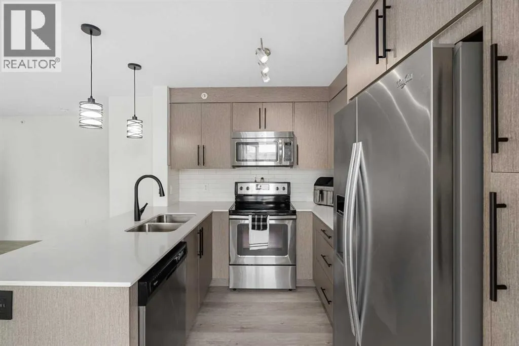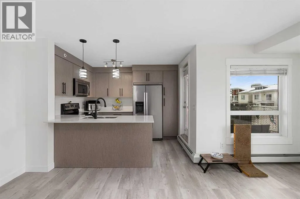 Welcome to this exceptional top-floor corner unit in the sought-after community of Skyview Ranch, Calgary. Offering 839 sq. ft. of beautifully updated living space, this 2-bedroom, 2-bathroom condo combines modern finishes with an unbeatable layout and stunning northwest-facing viewsâincluding the rare chance to catch the Aurora Borealis.Recently renovated, the home features brand new flooring, fresh paint, and upgraded quartz countertops throughout. The stylish kitchen is both functional and elegant, complete with stainless steel appliances, ample cabinetry, and sleek finishes, perfect for everyday living and entertaining.The spacious primary bedroom includes a private ensuite, while the second bedroom is ideal for guests, a home office, or roommates.Step out onto your private balcony with a natural gas BBQ line and enjoy open skies and breathtaking views. Additional highlights include underground parking and the comfort of top-floor living.Located close to shopping, dining, parks, and walking paths, with quick access to major routes, this home offers both convenience and lifestyle in one of Calgaryâs most vibrant communities.Perfect for first-time buyers, investors, or those looking to downsizeâthis turnkey condo truly has it all. Donât miss your opportunityâbook your showing today! (id:27476)