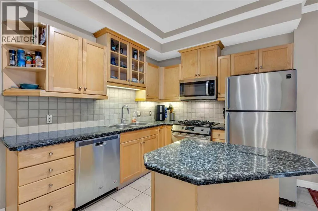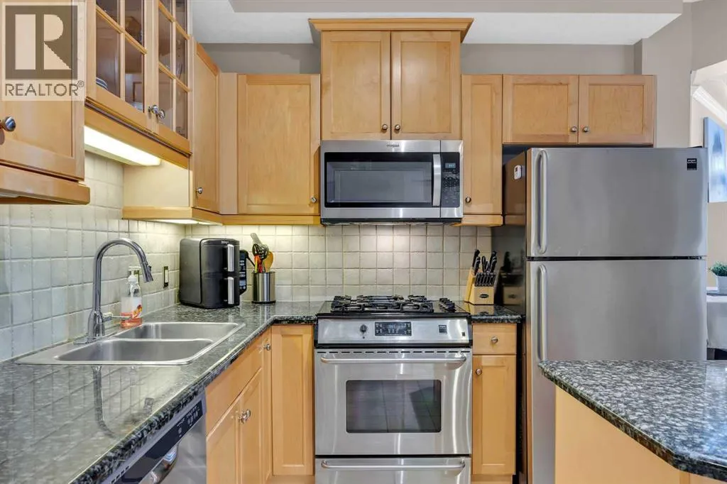 Mark your Mark at The Monoco! Welcome to Unit 401 âan exceptional corner unit in the heart of Connaught, one of Calgaryâs most vibrant and walkable inner-city communities. Just minutes to downtown and steps from the energy of 17th Avenue, this 2 bedroom, 2 bathroom condo offers the perfect blend of style, comfort, and location.This bright, move-in ready home features 9â ceilings and a well-designed open-concept layout that maximizes both space and natural light. The kitchen is beautifully appointed with granite countertops, stainless steel appliances, maple cabinetry, ceramic tile flooring, a tiled backsplash, and a central island with bar seatingâideal for casual dining or entertaining guests.The spacious living room is anchored by a built-in entertainment unit and flows seamlessly to French doors leading onto your private balcony. As a corner unit, youâll enjoy expanded sightlines and an abundance of natural light. For an even more impressive experience, take advantage of the buildingâs rooftop patio, offering incredible views and the perfect setting for entertaining.The primary bedroom is generously sized and features a 4-piece ensuite with a jetted soaker tub, creating a true retreat. A second bedroom provides flexibility for guests, a roommate, or a home office. Both bathrooms have been updated with granite countertops and tiled tub surround and shower. Additional highlights include in-suite laundry and a heated, underground titled parking stallâa must-have for inner-city living.Whether youâre a professional, investor, or looking to enjoy the best of Calgaryâs urban lifestyle, this is a rare opportunity in a sought-after location. (id:27476)