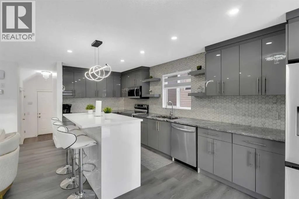 EXTENSIVELY RENOVATED | BACKS ON TO GREEN SPACE | FRONT ATTACHED GARAGE | FINISHED BASEMENT | LOCATED IN SOUGHT-AFTER ROYAL OAK | Welcome to this beautifully updated home in the highly sought-after community of Royal Oakâwhere comfort, style, and location come together seamlessly.This front-attached double car garage home offers incredible curb appeal and backs directly onto serene green space, providing privacy and peaceful views with no neighbors behind. From the moment you step inside, youâre greeted by a soaring high-ceiling foyer that sets the tone for the spacious and thoughtfully designed layout.The main floor features a bright and inviting living room, flooded with natural sunlight and centered around a stunning gas fireplaceâperfect for cozy evenings or entertaining guests. The renovated kitchen is truly eye-catching, boasting ample cabinet and counter space, ceiling-height cabinetry, and a gorgeous backsplash that ties the space together beautifully. Adjacent to the kitchen, the dining area is bathed in natural light thanks to large patio doors that open to the backyard, creating an ideal indoor-outdoor flow.Convenience is key on this level, with a 2-piece bathroom, a dedicated laundry area, and a functional mudroom that provides direct access to the garageâperfect for busy families and everyday living.Upstairs, youâll find three well-appointed bedrooms, including a spacious primary retreat complete with a walk-in closet and a private 4-piece ensuite. A versatile family room offers the perfect space for movie nights, a kidsâ play area, or a home office. This level is completed with an additional 4-piece bathroom, ensuring comfort and functionality for the whole family.The fully finished basement expands your living space even further, featuring a large recreation room with a wet barâan ideal setup for hosting gatherings or creating your own entertainment hub. A 4-piece bathroom and a generous utility room with ample storage add even more value to this lower level.This home has seen numerous recent upgrades, including a renovated kitchen, new fencing, an upgraded garage floor, fresh paint throughout, new flooring, modern lighting fixtures, and stylish window coveringsâallowing you to move in with confidence and ease.Located in a family-friendly neighborhood, Royal Oak offers an abundance of nearby amenities including parks, schools, shopping plazas, and easy access to major routesâmaking it an ideal place to call home.This is a rare opportunity to own a turn-key property in a prime location with unbeatable backyard viewsâdonât miss it. (id:27476)