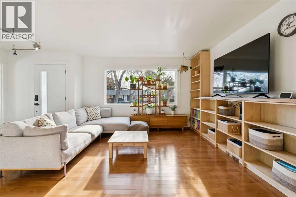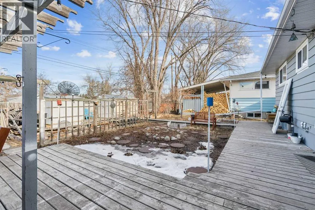 Welcome to this charming bungalow in the established community of Fairview, offering excellent curb appeal and loads of potential. This well-maintained home sits on a beautifully landscaped lot with mature trees and a spacious west-facing backyard, creating the perfect setting for outdoor living. Upon entering, you are welcomed by gleaming hardwood floors in the bright and spacious living room that flows seamlessly into the dining area. The main floor features three bedrooms, including a comfortable primary bedroom, along with a renovated 3-piece bathroom. The functional kitchen offers plenty of cabinet space and pantry. The fully finished basement provides even more living space with a large family/rec room, designated storage room, laundry area, another renovated 3-piece bathroom, and a versatile bedroom/flex room. The basement has also been thoughtfully set up for a potential home-based business or office space, offering excellent flexibility for entrepreneurs and the side stair location on the left side of the property offers excellent potential for a future separate side entry (subject to City approvals)âa big advantage for clients/guests and added privacy. This home has seen numerous updates over the years, including newer paint, new upstairs windows and doors, refrigerator/dishwasher/washer & dryer (2023), roof (2015), furnace and hot water tank (2020), along with two renovated bathrooms and an updated basement. Step outside to the serene west-facing backyard where youâll find an impressive 18â x 15â deck with pergola, beautiful flower beds, three storage sheds, and rear parking with plenty of room to build a future detached garage. Ideally located just minutes from parks, schools, shopping, and everyday amenities, and less than 15 minutes to downtown Calgary, this home offers both convenience and comfort. Residents of Fairview enjoy access to great local schools including Acadia School, St. Cecilia School, and Le Roi Daniels School, making it a wonderful pla ce for families. The property also offers plenty of street parking right out front, making it incredibly convenient for homeowners and guests alike. Donât miss the opportunity to own a well-cared-for home in one of Calgaryâs most established communities. (id:27476)