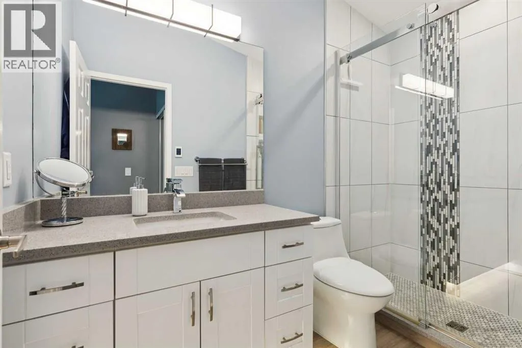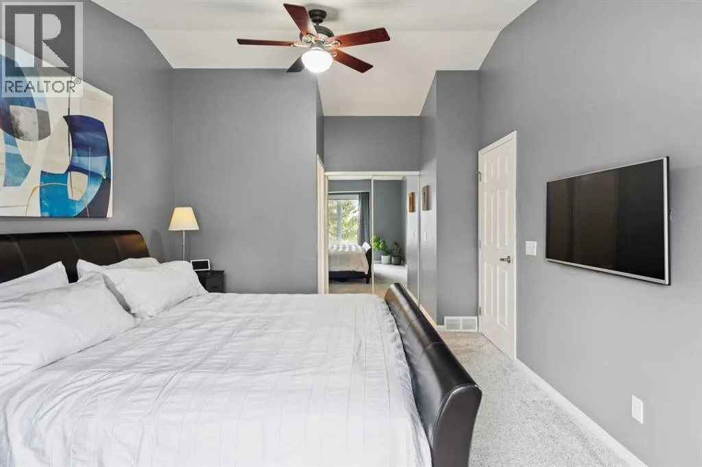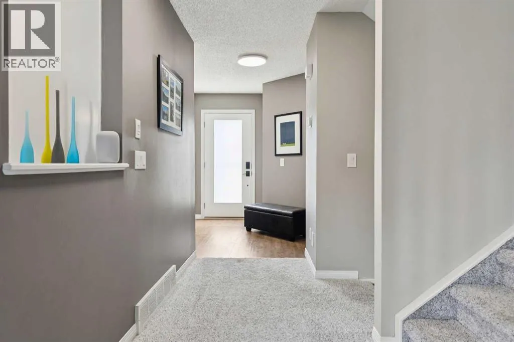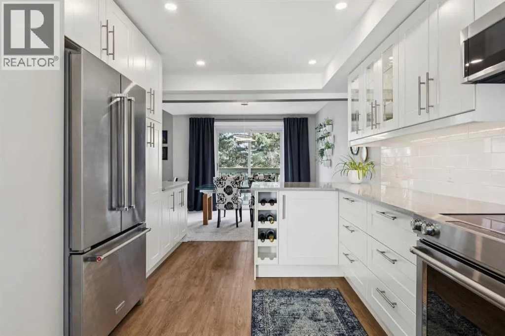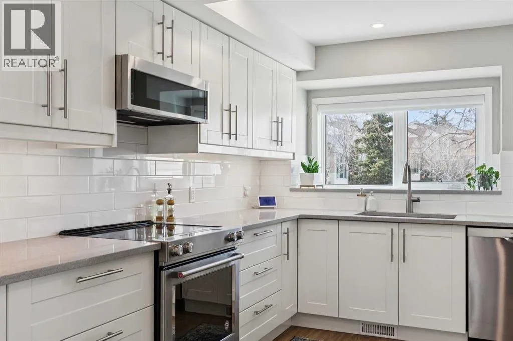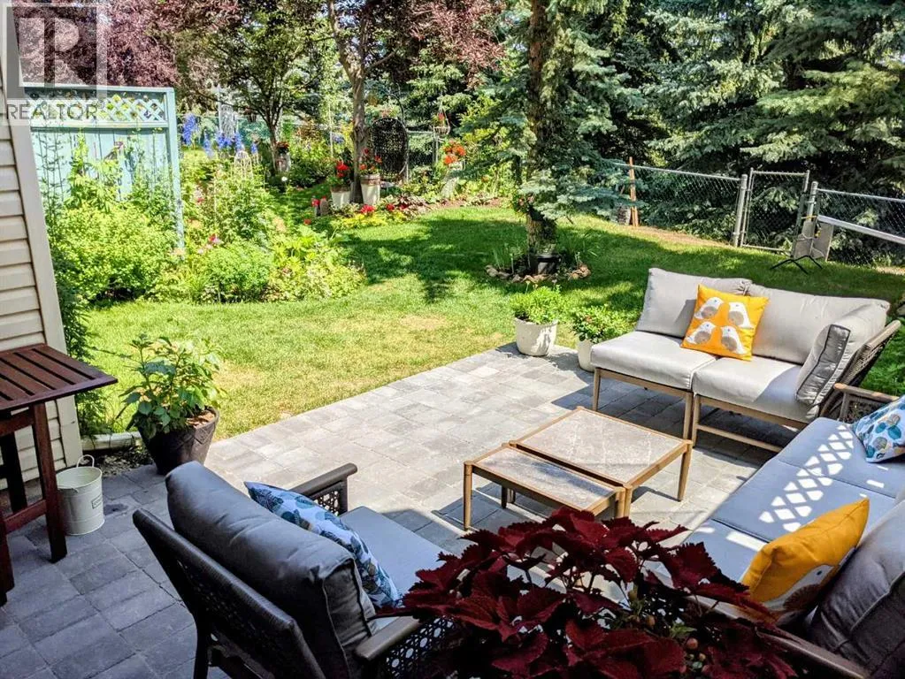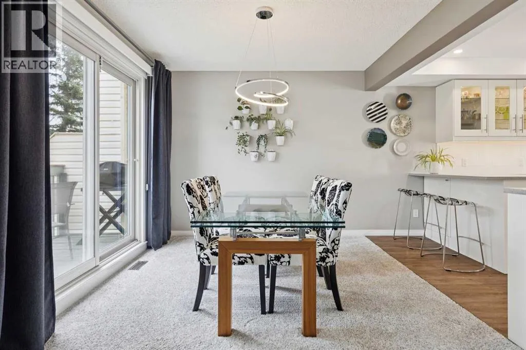 Move-in ready, and designed for both comfort and function, this fully updated townhome offers a rare combination of quality renovations, thoughtful layout, and an exceptional outdoor setting. The main floor has been completely elevated by a fully renovated half bathroom with high efficiency toilet, professionally renovated kitchen, featuring quartz countertops, soft-close cabinetry with a hidden interior drawer, drawer and under-cabinet lighting, and a window overlooking the front street that fills the space with natural light. The adjacent dining area opens directly onto the patio through sliding doors, creating a seamless indoor-outdoor flow. The living room is a standout, with soaring vaulted ceilings, expansive windows with a cozy built-in window seat adding both charm and functionality making this space feel open and inviting. Upstairs, the open-to-below design enhances the sense of space and light. Both bedrooms feature their own ensuite bathrooms, a rare and highly desirable layout. The secondary bedroom includes day & night honeycomb shades, a Murphy bed (optional inclusion), and a fully renovated ensuite complete with a soaker tub, high efficiency toilet, luxury vinyl plank flooring, and under-cabinet lighting.The primary bedroom offers vaulted ceilings, a ceiling fan, day & blackout night honeycomb blinds, and peaceful views of the backyard and pathway. The walk-in closet is fully customized with built-in cabinetry. The ensuite is finished with quartz countertops, under-cabinet lighting, in-floor heating, a high-efficiency toilet, and a walk-in shower with dual shower heads.The walkout basement adds meaningful, flexible living space. The family room opens directly outside through sliding doors, while an additional side area provides the perfect setup for a home office, gym, or creative workspace, complete with a large window and closet storage. This level also includes under-stair storage, a full 4-piece bathroom with tile, and a well-designed laundry ro om with custom built-ins and hanging racks. Significant mechanical and exterior updates provide long-term confidence, including a high-efficiency furnace (2024), heat pump (2024), hot water tank (2024), level 4 wind and hail resistant shingles and gutters (2025), and garage door and opener (2017). Outside, the partially fenced backyard is a true highlight. Thoughtfully landscaped with patio stone seating area, established perennial gardens, and mature trees backing onto a walking path which offers a private and peaceful setting. In summer, it feels like a garden retreat. In winter, it transforms into a quiet, tree-lined escape.Additional features include a single attached garage, a tandem driveway accommodating two vehicles, and an HOA that handles shoveling in the winter and mowing in the summer which supports the overall community upkeep without the restrictions of condo living.This is a home that has been carefully upgraded, meticulously maintained, and designed to stand out. (id:27476)
