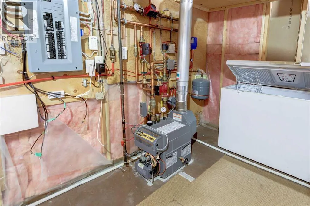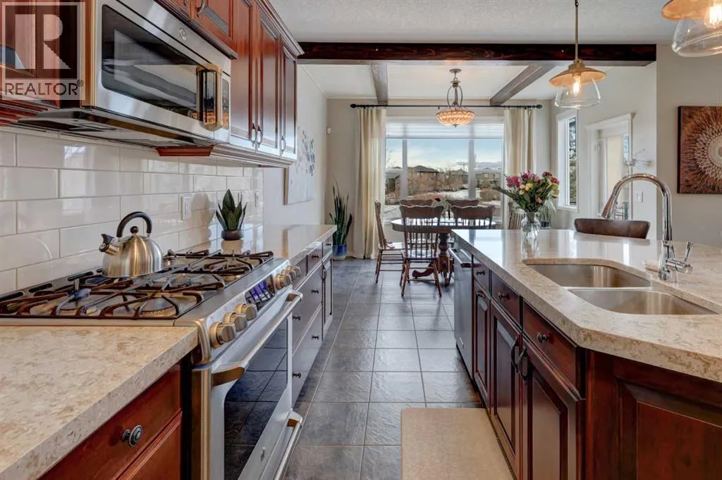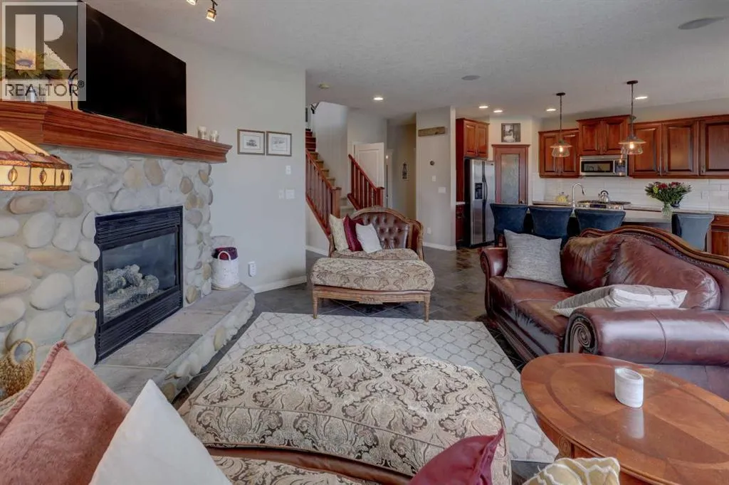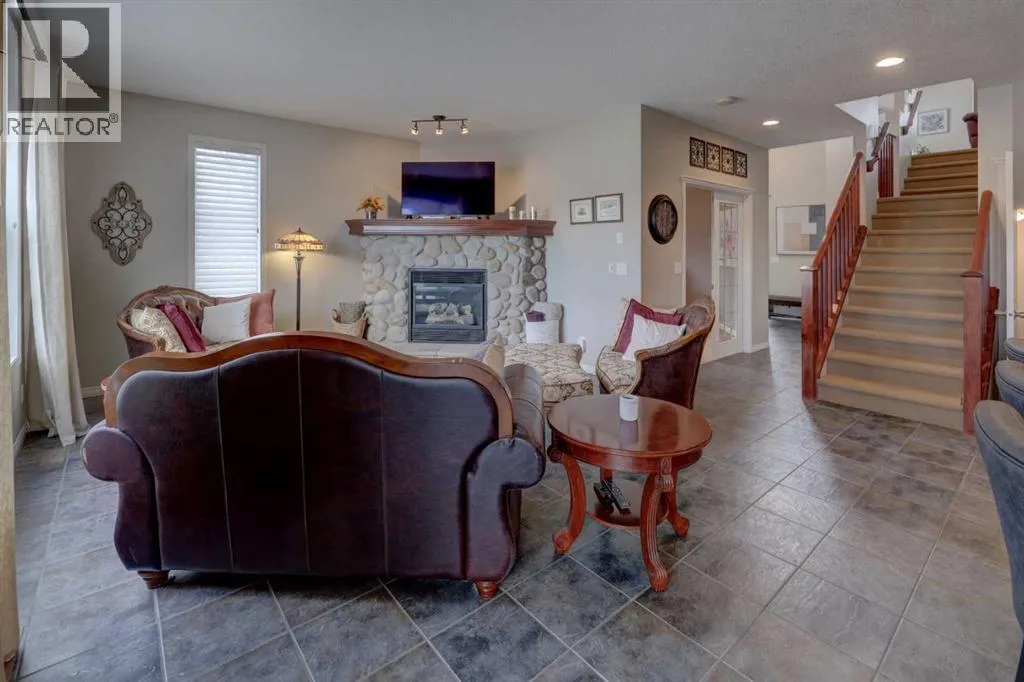 Welcome to this fantastic four bedroom plus den walkout home in Royal Oak, perfectly situated on a quiet corner cul-de-sac backing onto a serene pondâoffering both privacy and a peaceful natural setting.With nearly 3400 sq. ft. of developed living space, the main floor features tile flooring throughout and knockdown ceilings creating a clean, modern feel. A spacious main floor office provides the ideal work-from-home setup, while the inviting living room with a gas fireplace is complemented by large windows showcasing stunning pond views. The kitchen is thoughtfully designed with stainless steel appliances, including a gas range, granite countertops, and an extra-large L-shaped pantry. The generous dining area features a beamed ceiling and expansive window, making it the perfect place to gather while enjoying the picturesque surroundings. A large west facing deck overlooks the beautifully treed backyard and the pond and pathways. A convenient main floor laundry/mudroom and 2-piece bathroom complete this level. Upstairs, youâll find three generously sized bedrooms, including a beautiful primary retreat with a walk-in closet and a luxurious 4-piece ensuite featuring heated tile flooring, a granite vanity, a corner glass walk-in tile shower, a deep soaker tub with skylight, and a separate water closet. The additional 4-piece bathroom includes a double vanity for added functionality. A HUGE family room (bonus room) with vaulted, beamed ceilings and a striking feature wall with recessed window creates an ideal space for relaxing or entertaining. Roughed in for sound system.The professionally developed walkout basement is a standout, featuring in-floor heating foradded comfort, a massive rec room with large windows for abundant natural light, a fourthbedroom, and a 4-piece bathroom with a granite-topped vanity. This home is equipped with air conditioning, a built-in irrigation system to keep both the front and backyard lush and low-maintenance. The oversized atta ched double garage is 22 x22 ft with an additional 3 x 17 ft expanded space in the garage for additional space & storage and a man door to the side yard.Step outside to enjoy the 10 x 16 ft concrete patio and main-level deckâperfect for entertaining or simply relaxing while taking in the beautifully landscaped yard with underground sprinkler system. Mature trees and foliage enhance privacy and create a tranquil outdoor retreat. Additional features include a convenient area ideal for a dog run and a charming garden shed. Enjoy breathtaking pond views from every level of this exceptional home. Ideally located near a middle school, YMCA, shopping, parks, playgrounds, sports courts/recreation, transit, and moreâthis is truly the perfect family home.Donât miss your opportunityâbook your private showing today before this incredible property is sold to someone else! (id:27476)