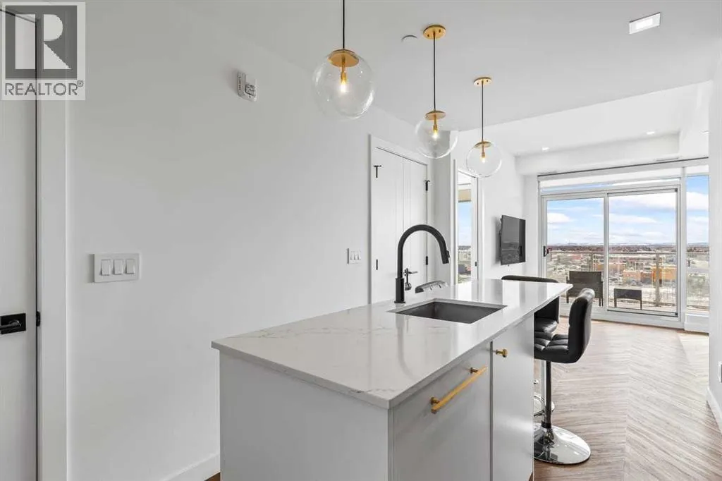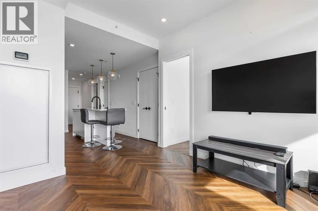 WELCOME TO GATEWAY AT WEST DISTRICT, where modern design meets everyday convenience in the heart of sought-after West Springs. This BRIGHT and BEAUTIFULLY finished 2-BEDROOM, 2-BATHROOM condo offers a perfect blend of style, comfort, and functionalityâideal for professionals, downsizers, or investors alike.Step inside to discover a thoughtfully designed OPEN-CONCEPT LAYOUT featuring 9-FOOT CEILINGS, sleek pot lighting, and LUXURY VINYL PLANK FLOORING THROUGHOUT. The CUSTOM GALLEY-STYLE KITCHEN is a true standout, showcasing STAINLESS STEEL APPLIANCES, QUARTZ COUNTERTOPS and backsplash, soft-close cabinetry with under-cabinet lighting, a GAS COOKTOP, built-in WALL MICROWAVE OVEN, INTEGRATED REFRIGERATOR, PANELLED DISHWASHER, and a CENTRAL ISLAND perfect for cooking and entertaining.Enjoy seamless indoor-outdoor living with floor-to-ceiling glass doors leading to your private, south-facing balconyâcomplete with modern glass railing and privacy panels, perfect for relaxing in the sun.The SPACIOUS PRIMARY BEDROOM offers LARGE WINDOWS, a convenient walkthrough closet, and a stylish 3-PIECE ENSUITE with a tiled shower. A bedroom and a full 4-PIECE BATHROOM provide flexibility for guests, a home office, or family living. Additional highlights include in-suite laundry, window coverings, a titled underground parking stall, and a secure storage locker.Gateway at West District elevates your lifestyle with premium building amenities including a rooftop deck, party room, secure parking, and bicycle storage. Step outside and enjoy unbeatable walkability to a vibrant mix of shops, dining, and services along 85th Street SW, including Boston Pizza, My Favorite Ice Cream Shop, TD Canada Trust, Orangetheory Fitness, Mercato West, Shoppers Drug Mart, Blanco Cantina, Una on 85th, 722 World Bier Haus, Jerusalem Shawarma, and Ace Liquor.Experience the perfect combination of urban convenience and contemporary comfortâthis is West District living at its finest. BOOK YOUR SHOWING TODAY! ! (id:27476)