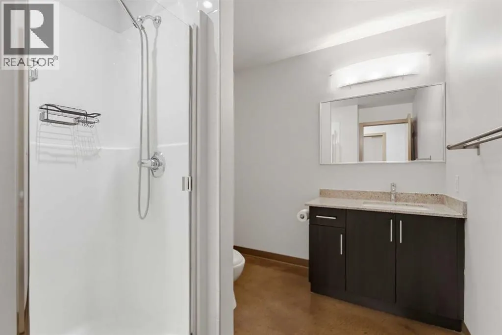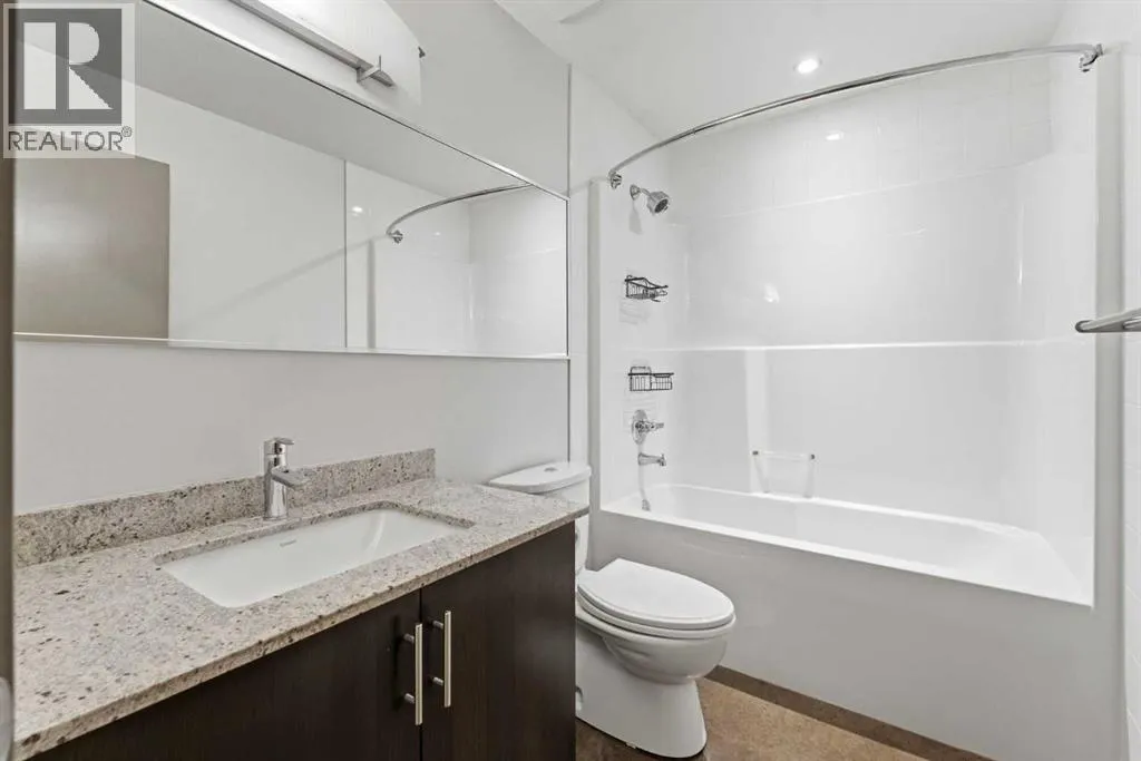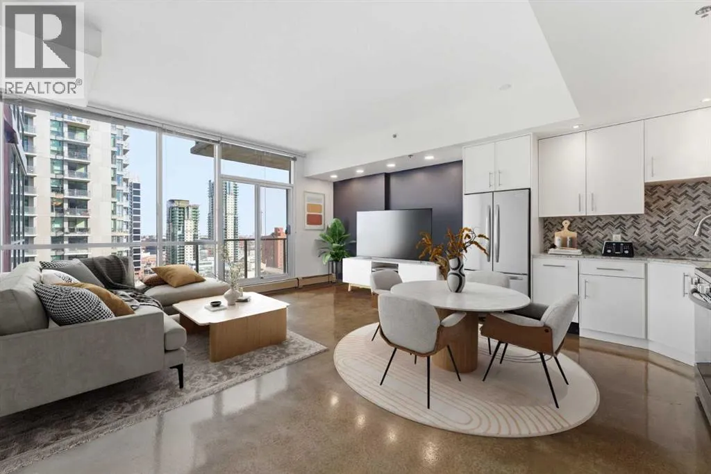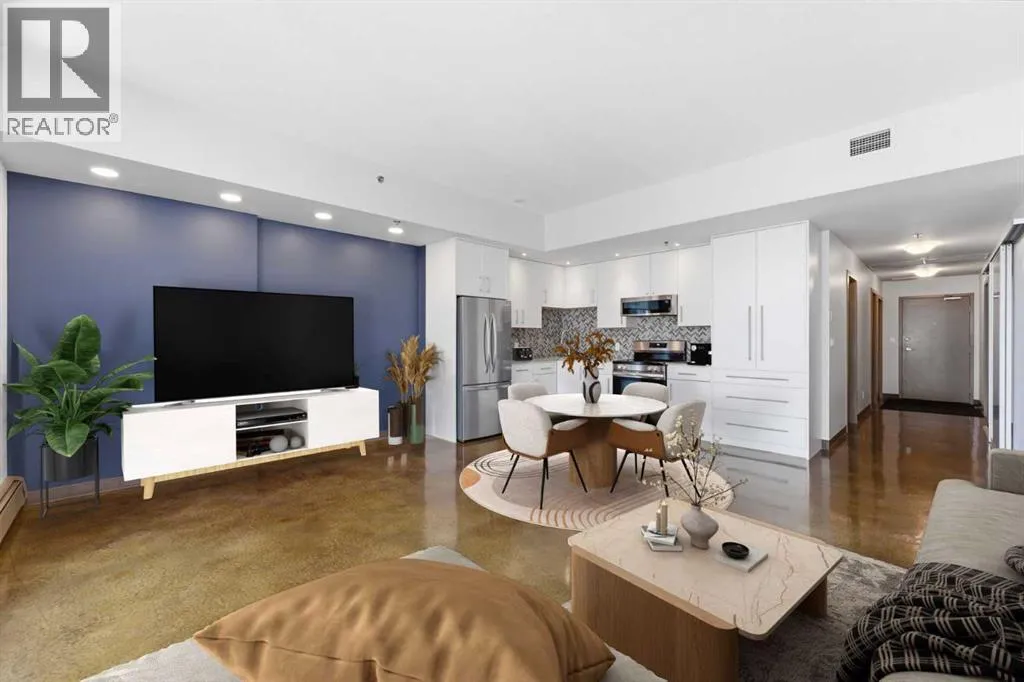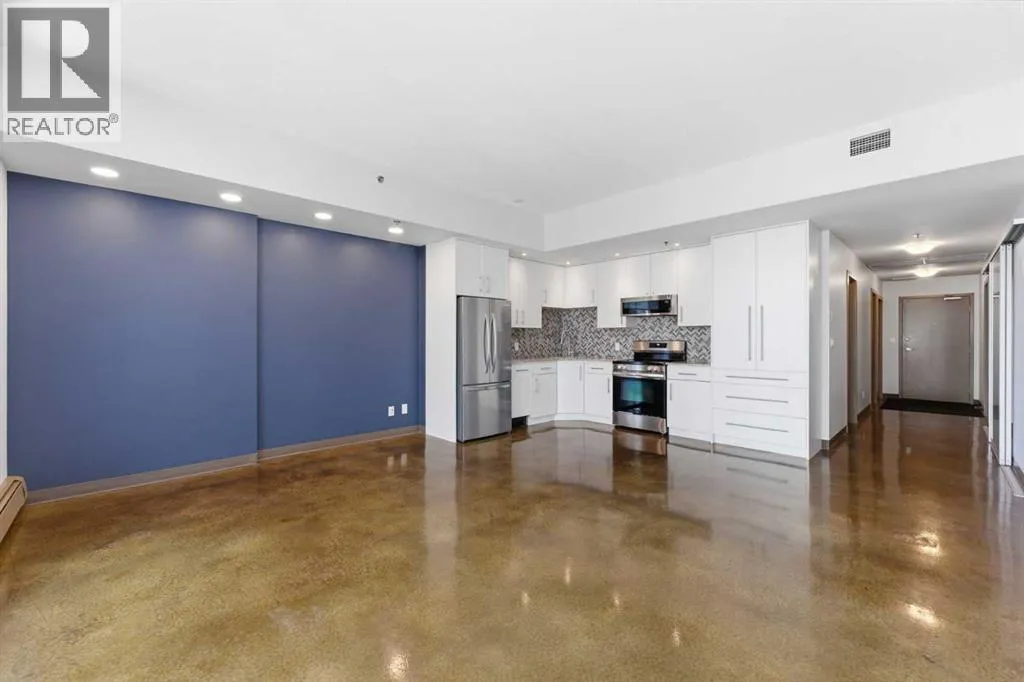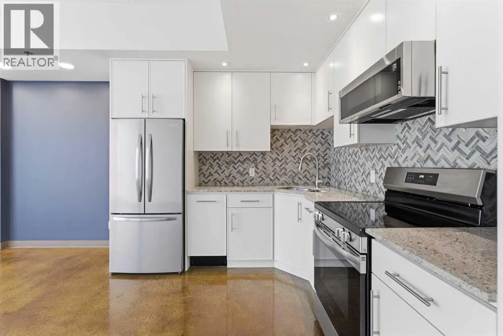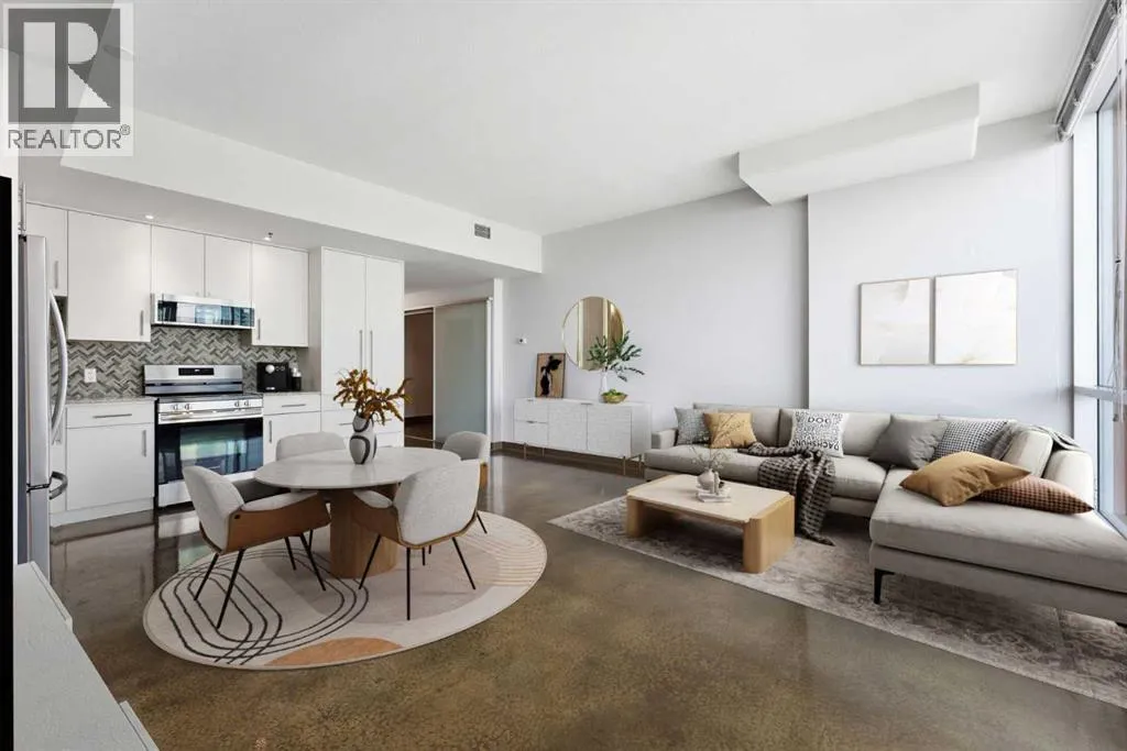 Take a look at this stunning well priced 2 bedroom 2 bath unit located in the heart of Calgary - just steps away from some of the cities best restaurants, cafes, pubs and local shops. This condo perfectly incorporates modern city life with comfortable living. This future home takes convenience and functionality to the next level, with an in-unit laundry room, storage, and a titled parking stall. Gleaming polished concrete flooring runs throughout the entire unit. A large open-concept living room with floor to ceiling windows bathes the entire space in natural light, perfect for hosting or daily relaxation. The kitchen, equipped with modern upgrades that provide greater comfort and convenience. Approximately 1.5 yrs ago the kitchen was remodeled with extended height cabinets that now reach the ceiling, a larger pantry with pot drawers, all new back splash and a new stainless steel appliance package, including a french door fridge with a freezer drawer, hidden dishwasher with a cabinet panel and extra lighting. The kitchen is an ideal work space offering plenty of counter and tons of cupboard space. Both bedrooms are purposefully placed to provide maximum privacy and comfort for the owners or guests. The master suite includes a full 4-piece en-suite. Sliding glass doors open to the second bedroom (office or flex space) perfect for guests with a full 3-piece bathroom located just steps away. With Stampede Park and local cafes just minutes away, this unit provides a vibrant urban lifestyle that perfectly encapsulates modern downtown living and local convenience. This condo offers the flexibility perfect for first time buyers, young couples or investors. (id:27476)