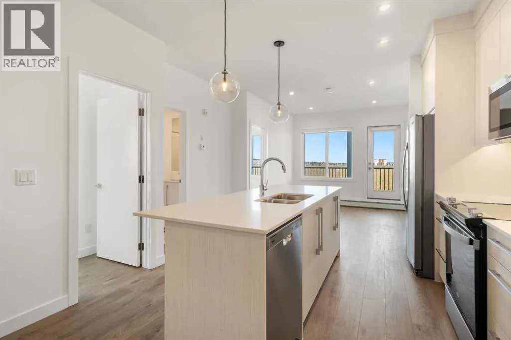 Welcome to this bright and beautifully finished corner unit in the family-friendly community of Cityscape. Offering a rare 3-bedroom, 2-bathroom layout and an oversized north-facing balcony, this home perfectly blends comfort, functionality, and everyday convenience.Inside, youâll find elegant LVP flooring throughout and oversized windows that flood the space with natural light. The open-concept kitchen, dining, and living area creates an inviting environment for both daily living and entertaining. The primary bedroom features a private 3-piece ensuite, while two additional bedrooms and a full bathroom provide excellent flexibility for families, guests, or a home office. In-suite laundry adds to the overall convenience.Residents also enjoy access to premium amenities including a fitness centre and ownerâs loungeâperfect for your daily workout or hosting larger gatherings.Step outside to the spacious balcony, ideal for relaxing, summer BBQs, or unwinding at the end of the day.Located in one of northeast Calgaryâs fastest-growing and well-planned communities, Cityscape offers future school development, parks, and pathwaysâmaking it a great choice for families planning ahead. Major amenities including CrossIron Mills, Costco, Calgary International Airport, Stoney Trail, and Métis Trail are all within a convenient 15-minute drive. (id:27476)