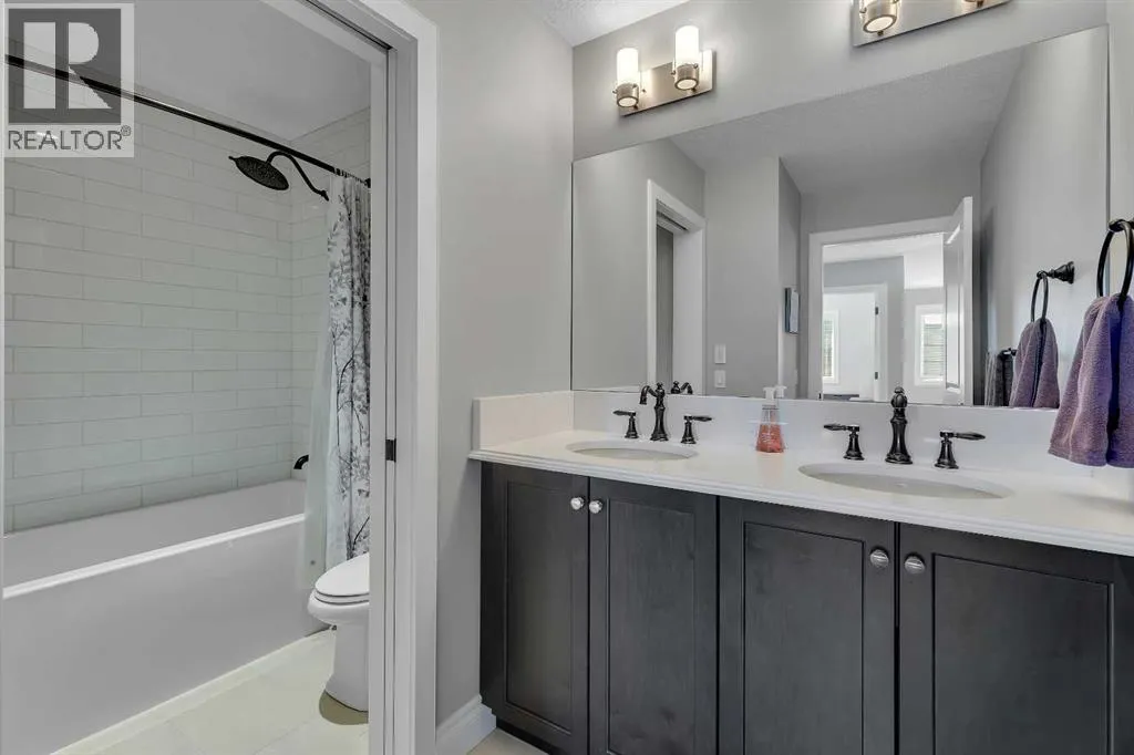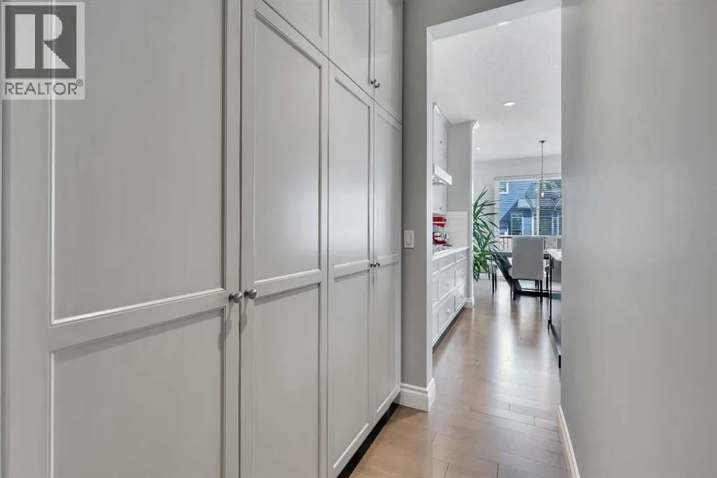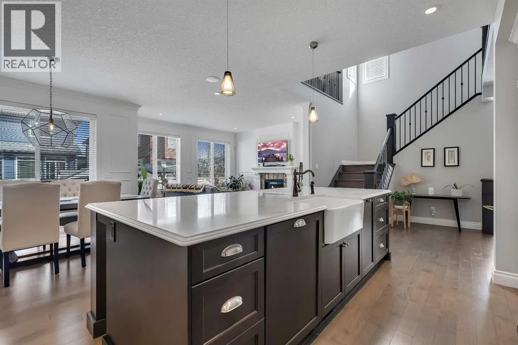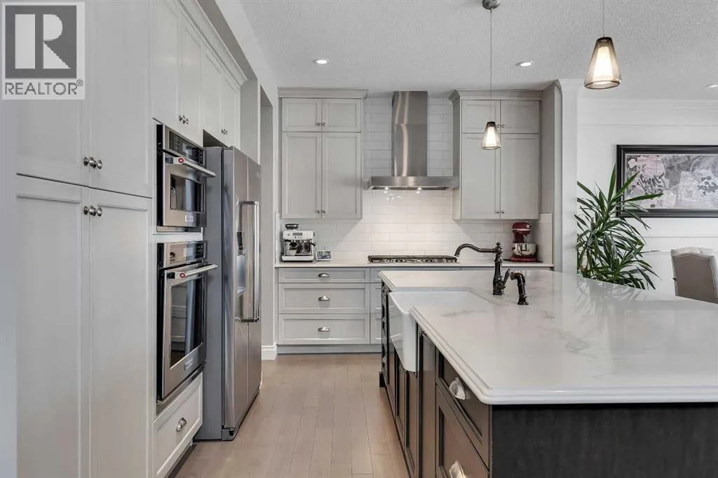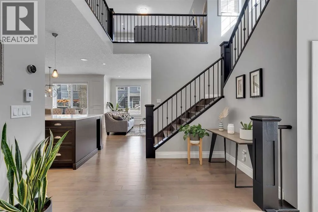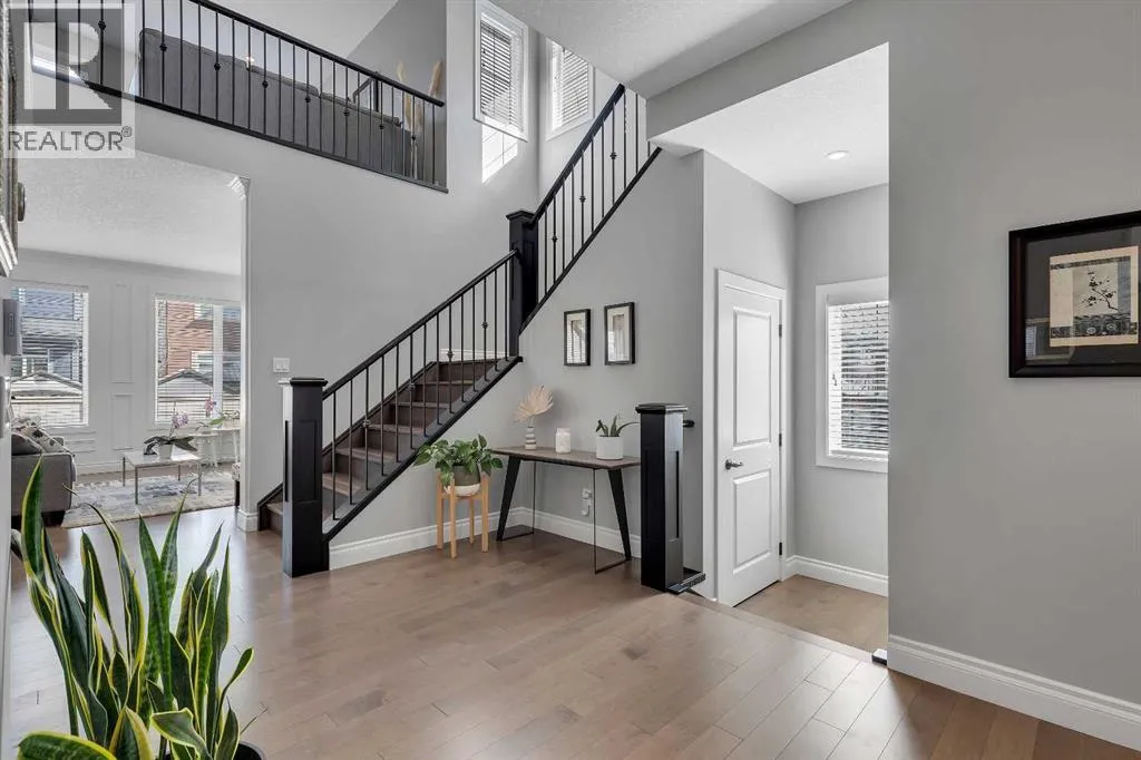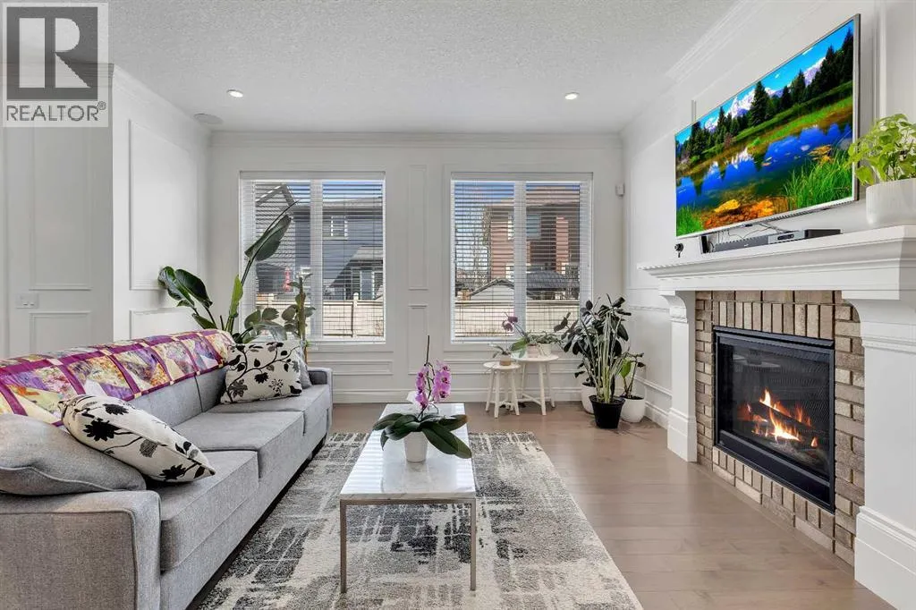 Elevate your lifestyle in this exquisite former SHOWHOME from the exclusive Arrival Collectionâan architecturally curated streetscape designed by Michelle Moodie, where no two homes are alike. Situated on a coveted CORNER LOT with sunny southern exposure, this French Country residence blends a feeling of old world charm with modern luxury.Thoughtfully styled by Amanda Hamilton of Amanda Hamilton Interior Design, the home reflects the âMaison de Rêveâ aestheticâwarm, refined, and distinctive individual. With 2,611 sq. ft., FOUR SPACIOUS BEDROOMS, and an inviting, family-focused layout, this property offers both comfort and sophistication.The main floor features rich hardwood, elegant wainscotting, and a striking one-way fireplace. At the heart of the home is a chef-inspired kitchen with an EXTRA-LARGE ISLAND, HIGH END KITCHENAID APPLIANCES, including a GAS COOKTOP and wall oven, Caesarstone quartz countertops, high-end cabinetry, and a WALK-THRU pantry connecting to the mudroom.Upstairs, the primary suite offers a serene retreat with a double-vanity, soaker tub, and separate shower. Three additional spacious bedrooms and a LARGE FAMILY ROOM complete the upper level, making it perfect for family living.The expansive basement provides exceptional potentialâwell-suited for future bedrooms, a theatre, gym, or a combination of spacesOutside, enjoy METICULOUSLY LANDSCAPED FRONT AND BACK YARDS with IRRIGATION, a private deck, and full fencing. Additional features include a NEW ROOF AND GUTTERS (2025), SOLAR SYSTEM, and AIR-CONDITIONING. The INSULATED, FINISHED & PAINTED GARAGE, CENTRAL VACUUM, and BUILT-IN SPEAKERS add everyday convenience . The home is finished with JAMES HARDIE SIDING, known for its durability and resistance to harsh weather conditions such as hail. This long lasting material ensures that your new home is protected and maintains its aesthetic appeal for years to come.Situated just steps from the picturesque Symons Valley pathway system, this home of fers access to tranquil wetlands and the vibrant bird life that defines Nose Creek. Savour daily strolls along scenic trails and immerse yourself in natureâs beauty right outside your door.Evanston has multiple schools, parks, and quick access to amenities and Stoney Trail, creating a vibrant, supportive community for families.This estate model from Homes by Dream is not just a home; itâs a lifestyle. Schedule your private viewing today and experience the blend of luxury, comfort, and individuality that his stunning residence offers. (id:27476)