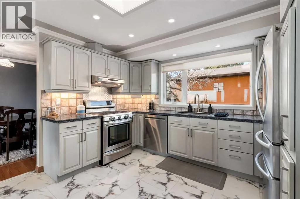 UPPER NORTH HAVEN | OVER 2300 SQFT OF DEVELOPED | VIEWS | OUTDOOR KITCHEN | HEATED GARAGE | 3 BEDROOM | 2.5 BATH | Welcome to this exceptional home in the highly sought-after Upper North Haven community, offering over 2,300 SQFT of fully developed living space and an unbeatable location surrounded by nature. Perfectly positioned across from and overlooking a massive greenspace, this property delivers both privacy and picturesque viewsâjust steps from Nose Hill Park and with quick access to 14th Street for effortless commuting. This meticulously maintained and extensively updated 3-bedroom, 2.5-bath home showcases pride of ownership throughout. The main level features a functional and inviting layout with spacious living and dining areas, complemented by a stunning open-concept kitchen that overlooks the living spaceâperfect for both everyday living and entertaining. The kitchen is anchored by a large island and is equipped with a gas range, stainless steel appliances, and a huge skylight that fills the space with natural light, creating a bright and airy atmosphere. Large triple-pane windows (replaced in 2009) further enhance the homeâs efficiency while bringing the outdoors in. Upstairs, youâll find a generous primary retreat complete with its own ensuite and walk-in closet. Down the hall is an additional bedroom and 4-piece main bathroom. The inviting lower level features a bright family room with gas fireplace, a 3rd bedroom, convenient laundry room and 2-piece half bath. The fully developed basement provides additional versatile living spaceâideal for a rec room, home office, or gym as well as plenty of storage. Step outside to the SW facing backyard and experience a true outdoor oasis. The beautifully landscaped yard is highlighted by stunning stamped concrete patios and a fully equipped outdoor kitchenâideal for entertaining or enjoying quiet evenings with family. Car enthusiasts and hobbyists will appreciate the heated double garage, complete with a brand-new garage furnace installed in Spring 2025. This home also offers peace of mind with numerous key upgrades: New Grade 4 hail-rated shingles (September 2025), New furnace and A/C (2021), New hot water tank (October 2020), Annual furnace inspections ensuring optimal performance. Combining thoughtful upgrades, an unbeatable location, and exceptional outdoor living, this is a rare opportunity in Upper North Haven. A truly turnkey home that delivers on lifestyle, comfort, and long-term value. (id:27476)