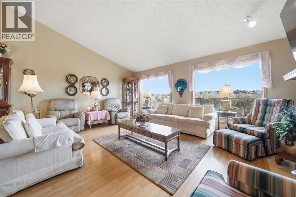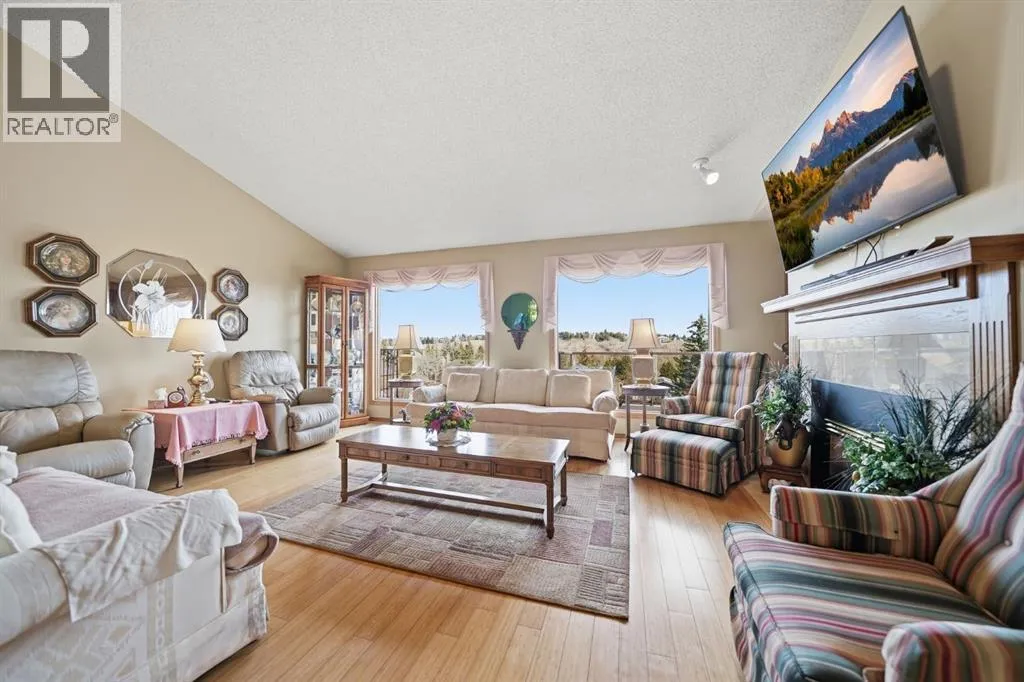 Welcome to a rare opportunity to experience villa living at its finest. Perfectly positioned on an extremely quiet street, this outstanding villa backs onto a greenspace, offering you great views of downtown Calgary and the rolling hills of Edgemont. It is a setting designed for peace and tranquillity, yet it keeps you wonderfully connected to the city you love. Constructed with both quality and lifestyle in mind, this home is sure to make you feel right at home from the moment you step into the welcoming large entry space. Directly off the foyer, you will discover a versatile flex room, which serves perfectly as a home office or as an additional main floor bedroom for visiting guests. Continuing on the main level, you will find the spacious primary bedroom, a true retreat complete with a great ensuite for your comfort and privacy. Moving into the heart of the home, you will be memorized by the soaring vaulted ceilings that create an incredible sense of space and openness. The layout flows effortlessly from the formal dining area into the living room, where a gas fireplace adds a touch of warmth and elegance. Huge windows in the living room invite a tremendous amount of natural light, making the space feel bright and cheerful all day long. Just off the living room, you will step into your large, private kitchen. Here, a cheerful sunshine ceiling brightens the space, and a welcoming breakfast nook provides the perfect spot for casual dinners. When you are ready to embrace the outdoors, step out from the nook onto your huge upper patio. You will instantly feel at peace as you listen to the soothing sounds of birds chirping and take in the serene view. The lower walkout level is fully finished and designed for both relaxation and function. It features a fantastic family room with the homeâs second gas fireplace, creating a cozy atmosphere for movie nights or quiet evenings. Two additional bedrooms, a full bathroom with an updated shower, and a huge storage room complet e this level. The true highlight, however, is the massive lower deck, which steps directly out to the greenspace you back onto. It is the perfect spot for the kids or grandkids to explore and play while you relax nearby. This home has been extremely well kept and lovingly cared for by its owner for over two decades. It is now ready for new owners to make it theirs and create many memorable memories for years to come. Some of the other thoughtful features include central air conditioning for year-round comfort, in-floor heating in the lower level, distiller for your drinking water and of course the maintenance-free oversized patio and deck, as well as some updated windows and plumbing. You will also appreciate being part of a very well-managed villa complex with affordable condo fees. If you are looking for a great villa in a quiet complex within the wonderful community of Edgemont, with easy access to groceries and shops. Come and experience the effortless lifestyle that awaits you. (id:27476)