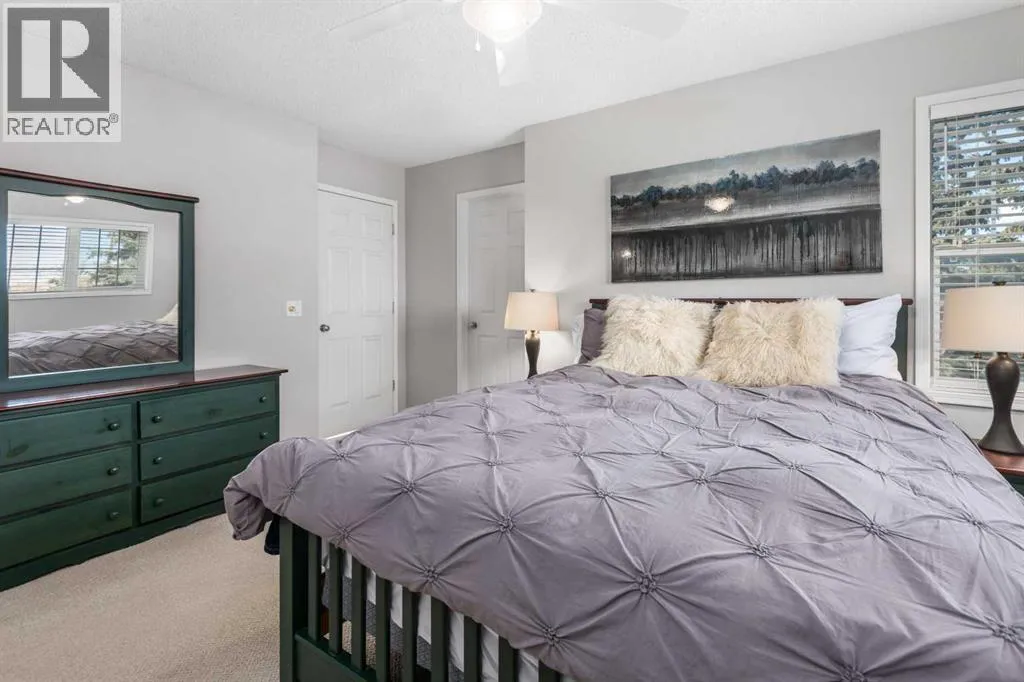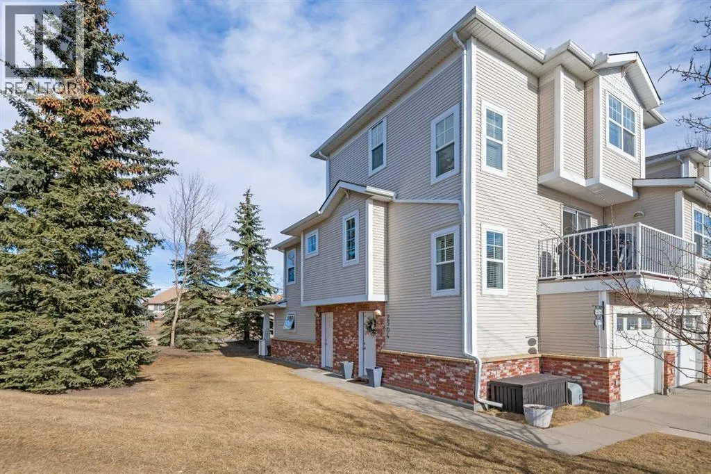 Welcome to this beautifully maintained former show suite in one of Coach Hillâs most desirable and well-established townhouse complexes. Proudly offered by only its second owner, this true end unit combines privacy, natural light, and thoughtful updates in an exceptional west-side location. With over 1,400 sq. ft. of well-designed living space, this bright and spacious home features 2 bedrooms, 2 bathrooms, and a functional layout that perfectly balances comfort and style.The main floor is warm and inviting with upgraded tile flooring, in-floor heat, updated lighting and fixtures throughout, and fresh paint completed in late 2024. The open-concept design is filled with natural light thanks to abundant south- and west-facing windows, while the surrounding green space, mature trees, and fenced front entry create a rare sense of privacy. The kitchen offers generous workspace and storage, and the home also features a newer fridge (2023/2024). Step outside to enjoy the brand new deck and patio door (2025)âperfect for relaxing or entertaining.Upstairs, youâll find two generously sized bedrooms, including a spacious primary retreat with ensuite access, while the second bedroom is ideal for guests, a roommate, or a home office. This home also offers the convenience of three parking spaces thanks to the single attached garage and extended driveway, plus it is located directly across from additional visitor parking.Set within an award-winning, professionally managed complex, residents enjoy beautifully maintained grounds, a charming water feature and gazebo, and the benefit of long-standing condo board consistency with Keystone Grey management. Condo fees include water, natural gas, in-floor heat, snow removal, vent cleaning, grounds maintenance, garbage removal, recycling, and composting, offering excellent value and ease of ownership.Location is everything, and this one delivers. Situated directly across from Paskapoo Slopes, outdoor enthusiasts will love the access to natural green space and trails. Coach Hill residents also enjoy convenient access to 69 Street LRT Station and Route 93 service for commuting, plus nearby shopping and dining at West Springs Landing and Aspen Landing Shopping Centre. Recreation options are close by at Westside Recreation Centre, and the area is well served by community parks and local schools. It is also ideally positioned for quick access downtown or an easy westbound escape to the mountains. (id:27476)