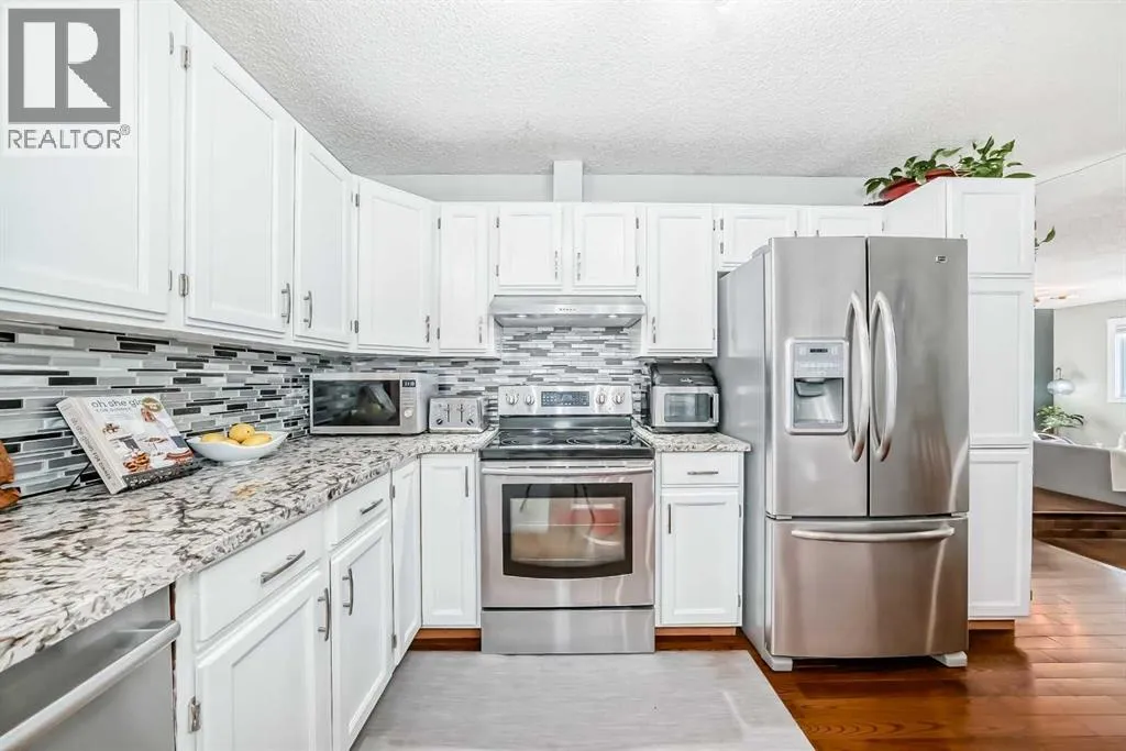 Welcome to this beautifully renovated bi-level home nestled in the heart of MacEwan, just steps from scenic pathways and Nose Hill Park. This well-maintained property offers the perfect blend of comfort, style, and location.The main floor features stunning hardwood flooring and a bright, functional layout ideal for everyday living and entertaining. The spacious dining room flows into the living room area -generous enough to accommodate a grand piano - creating an inviting and elegant atmosphere. The kitchen is equipped with white cabinetry and sleek stainless steel appliances and ample workspace.On the main level, youâll find two large bedrooms, including a primary retreat with a private ensuite, plus an additional full bathroom. The fully finished lower level offers a massive family room, a third bedroom, and another full bathroomâperfect for guests or extended family. The basement also provides direct access to the garage for added convenience. Step outside to an oversized, fully fenced backyard with mature, beautifully maintained landscapingâideal for relaxing or entertaining. Additional features include central air conditioning, central vacuum, a new hot water tank (2024), and a new water softener (2025), plus an outdoor lighting system that was installed last year.Pride of ownership is evident throughout. Once you step inside, you won't want to leave. Conveniently located near parks, schools, shopping, and all essential amenities. This property truly has it all.Book your private showing today before it's too late. Don't forget to check out the Virtual 3D tour to fully appreciate everything this exceptional home has to offer. (id:27476)