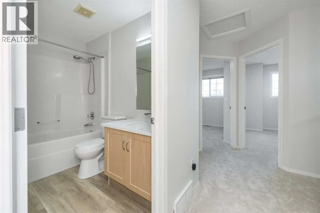 Welcome to this former show home townhouse located in Tarawood Lane NE , ideally situated in one of the best locations for easy access to everything you need. This corner unit offers extra privacy, a large east-facing backyard, and plenty of street parking right behind the home, along with a dedicated stall in front. Inside, youâll love the extensive recent upgrades throughout both floors, including fresh paint, new modern lighting, brand-new carpet, refinished hardwood flooring, and durable luxury vinyl plank (LVP) in upper washroom. The kitchen has been tastefully refreshed with new countertops and updated plumbing fixtures, along with stainless steel appliances and a convenient pantry. The main floor features a bright living room with a cozy gas fireplace, a 2-piece bathroom, and an open-concept kitchen with access to your backyard â perfect for relaxing or entertaining. Upstairs, youâll find three spacious bedrooms, including a comfortable primary bedroom, plus a full bathroom. The partially finished basement adds extra space and flexibility for future development. This home is steps away from Shoppers Drug Mart, within walking distance to the train station, and directly faces a park, making it ideal for families and professionals alike. With its low condo fee, prime location, and extensive updates, this property is a fantastic opportunity you wonât want to miss! (id:27476)