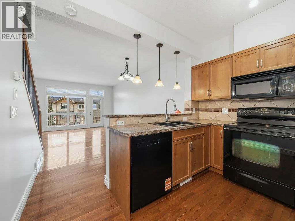 Welcome to this beautifully maintained townhouse in the highly sought-after community of Rocky Ridge, offering over 1,450 sq. ft. of developed living space with South & West facing mountain views. Tucked away in a quiet, private location at the end of the complex, this home combines comfort, functionality, and lifestyle, with pride of ownership evident throughout.Step inside to a spacious entry-level foyer featuring a large storage area, Vacuflo system, and direct access to the single attached, heated garage, ideal for everyday convenience.The main floor impresses with soaring 9â ceilings, gleaming hardwood floors, and a bright open-concept layout designed for modern living. The kitchen features a new dishwasher and breakfast bar, seamlessly connecting to the dining and living areas. Expansive windows bring in an abundance of natural light and are enhanced by added security film on the main floor windows for peace of mind.Enjoy not one, but two front-facing decks where you can take in the west exposure and mountain views, while the private rear patio with gas BBQ hookup backs onto a quiet green space, perfect for relaxing or entertaining.Upstairs, the thoughtful layout continues with laundry conveniently located on the upper level. The primary bedroom offers mountain views along with a 3-piece ensuite, while a second bedroom and full 4-piece bathroom provide flexibility for guests, family, or a home office.Recent updates add tremendous value and make this home truly move-in ready, including new kitchen faucet, new carpet and fresh paint throughout,. Additional features include upgraded smart/security locks.Residents of this well-managed complex enjoy access to on-site amenities including a fitness facility, along with a charming gazebo and additional shared outdoor space. Ideally located just minutes from the Tuscany LRT station with quick access to Crowchild Trail, Rocky Ridge Co-op, Royal Oak Centre, and the Shane Homes YMCA, plus nearby shopping and restaurants. Surrounded by pathways, parks, and bike trails, this home offers the perfect balance of convenience and outdoor lifestyle. (id:27476)