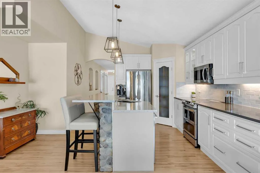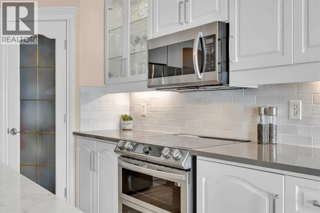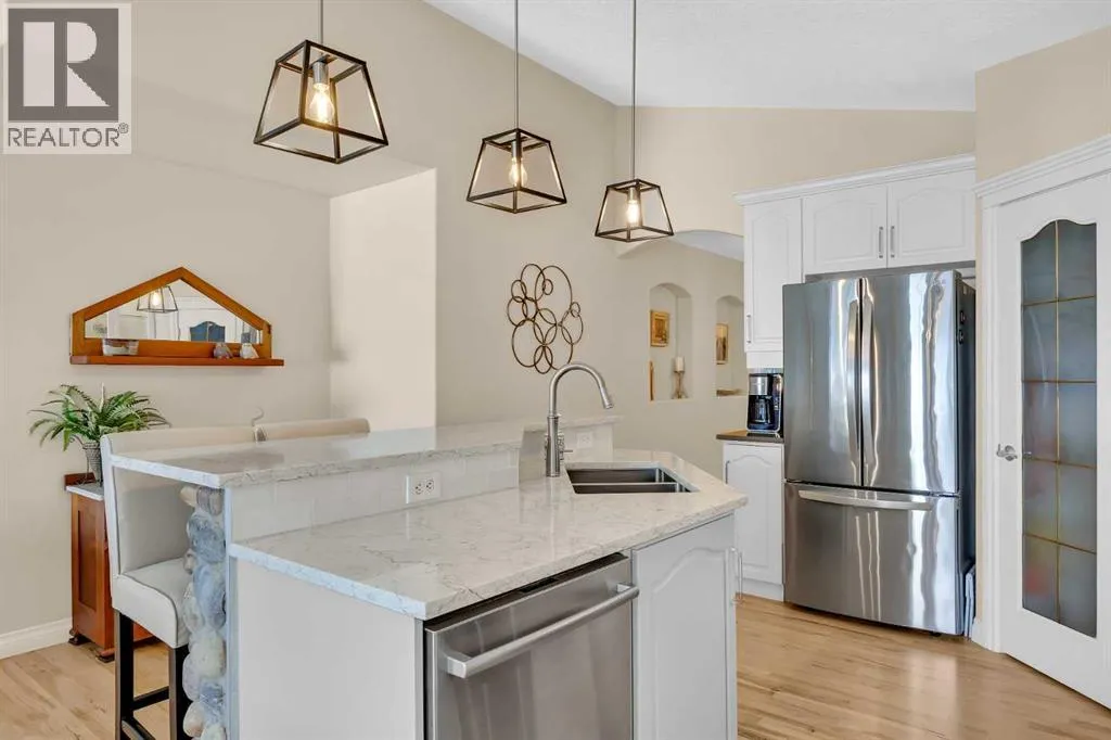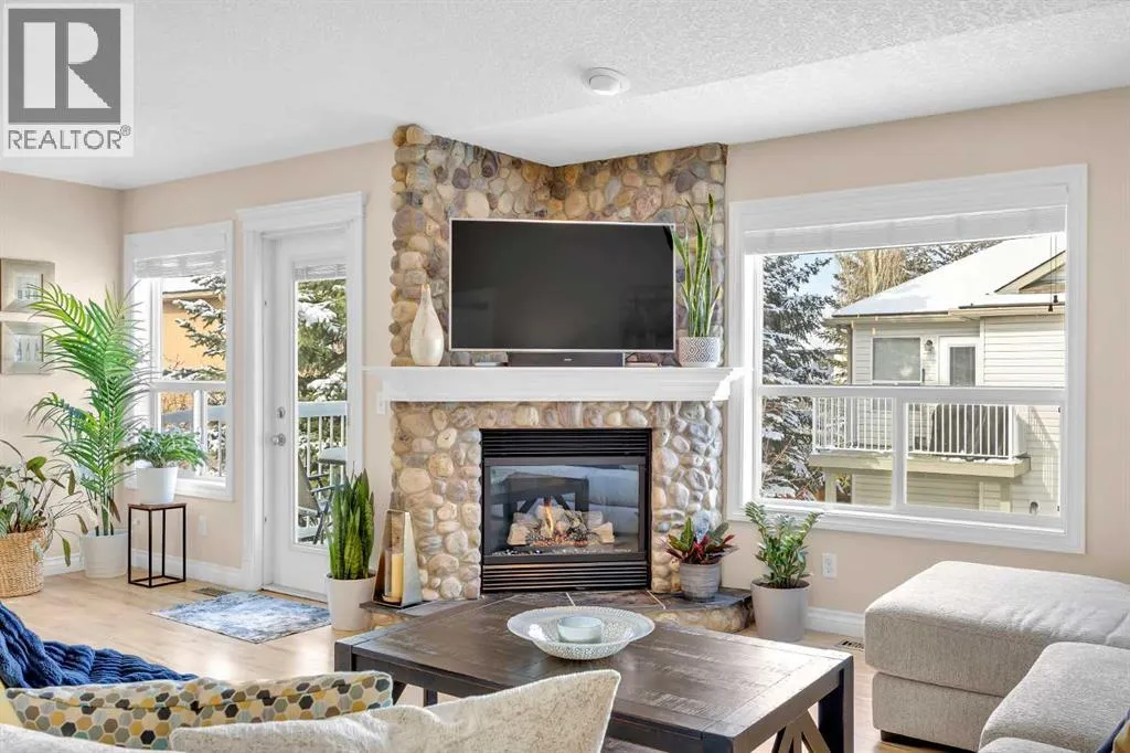 OPEN HOUSE: Sunday March 29 1:00-3:00pm. A RARE Find! This Beautifully Renovated End-Unit Villa Bungalow with walkout basement offers over 2,600 sq ft of thoughtfully designed living space, complete with central A/C and an upgraded garage featuring Epoxy Floors. From the moment you step inside, a skylight fills the welcoming foyer with natural light, setting the tone for the bright, open feel throughout. Refinished hardwood floors flow seamlessly through the main living areas, creating a warm and inviting space thatâs perfect for both everyday living and entertaining.The heart of the home is the open kitchen, dining and living room, perfect for gatherings. The Stunning kitchen is designed with both style and function in mind. Featuring Quartz countertops, Updated Cabinetry (2021), a Large Island, Walk-in pantry, and Stainless Steel Appliances (2021)âincluding an Induction Range with Double Ovensâthis is a space any home chef will appreciate. Just off the dining area, step onto the balcony to enjoy your morning coffee or summer BBQs with the convenience of a Gas line.The main floor offers two generously sized bedrooms (one being used as an office), a convenient laundry room/bathroom with Custom Built-Ins, and excellent storage throughout. The Spacious Primary Suite is a true retreat, complete with vaulted ceilings, room for a king-sized bed and plenty of additional furniture, a walk-in closet, and a private ensuite with an oversized shower.Downstairs, the fully developed walkout basement is designed for comfort, connection, and flexibility. A large recreation room with a cozy fireplace, large windows and dedicated games area offers endless possibilitiesâfrom movie nights to fitness or family gatherings. Walk outside to a private patio and enjoy the peaceful setting of a large treed green space. A substantial third bedroom with its own private ensuite provides a comfortable and private space for guests.This Professionally Managed Complex offers a true lock-and-l eave lifestyle, with lawn care and snow removal taken care of for you. With No Age Restrictions and Pet-Friendly living (board approval required), itâs a welcoming and connected community youâll love to be part of.Additional highlights include: Beautifully updated main floor bathrooms with Custom Vanities and Quartz countertops, New lighting throughout, a High-Efficiency furnace and humidifier (2022), two Hot Water tanks and Central vacuum. Ideally located with easy access to major roadways, shopping, restaurants, and everyday amenities.Villa bungalows like this rarely come availableâoffering the perfect blend of comfort, space, and low-maintenance living in a well-established community. Book your private tour today! (id:27476)