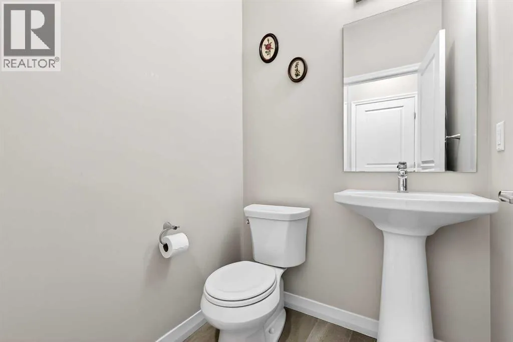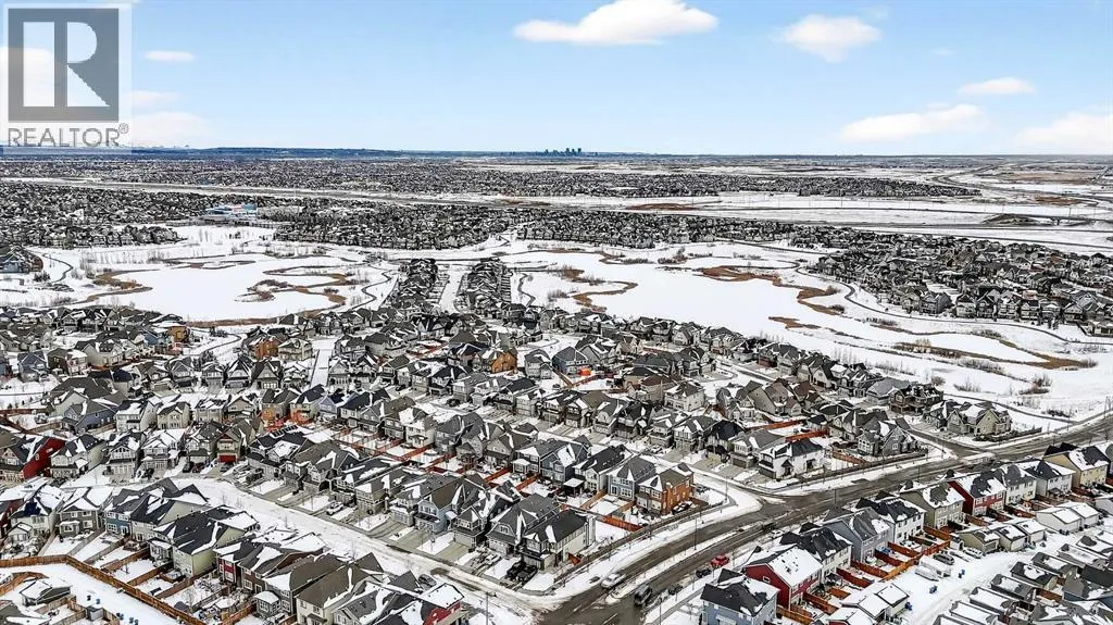 Welcome to this exceptional 2-storey residence in the highly sought-after lake community of Mahogany, where lifestyle and design come together in perfect harmony. Showcasing the ever-popular Sonata floorplan by Jayman BUILT, this home has been thoughtfully elevated with refined finishes & timeless style throughout. From the moment you arrive, the stunning stucco exterior sets the tone, leading you into a grand foyer with soaring ceilings reaching nearly 12 feetâan impressive introduction to the space that unfolds within. The intelligently designed layout offers both openness & definition, creating a unique separation between living areas while maintaining a seamless flow. The lower living room is a true showpiece, featuring a striking floor-to-ceiling shiplap feature wall anchored by a cozy electric fireplaceâan inviting space to relax and unwind. Overlooking this area is the beautifully appointed kitchen & dining space, framed by upgraded wrought iron railings that add architectural interest & elegance. The chef-inspired kitchen is both functional and beautiful, showcasing rich woodgrain Flint cabinetry with soft-close doors & crown moulding extending to the ceiling. A Blanco Silgranit undermount sink, upgraded Whirlpool appliancesâincluding a smooth-top convection range and French door refrigerator with ice makerâcomplement the space, while Crystal granite countertops and an expansive flush extended island provide the perfect setting for casual dining and entertaining. Warm, earthy tones throughout the home create a welcoming and cohesive atmosphere. Upstairs, youâll find three generously sized bedrooms, including a spacious primary retreat designed for comfort and convenience. The primary suite features a large walk-in closet with direct access to the upper laundry room, and a well-appointed 3-piece ensuite complete with an oversized walk-in shower and sleek sliding glass doors. Two additional bedrooms and a full main bathroom complete this level, offering ample space for family living. The unfinished basement presents a wonderful opportunity to customize and expand your living space, already equipped with a 3-piece rough-in and impressive ceiling height in portions of the area. Step outside to a thoughtfully designed backyard retreat, where an upper deck for grilling leads down to a spacious lower deckâideal for entertaining or relaxing. A charming pergola sets the stage for summer gatherings, while the artificial turf ensures a low-maintenance lifestyle. The oversized double detached garage completes this outdoor space with both function and convenience. Living in Mahogany means embracing a true four-season lifestyle centered around Calgaryâs largest man-made lake. Enjoy swimming & paddle boarding in the summer months, and skating & recreational activities in the winter. The community clubhouse offers year-round programs and gathering spaces, all within one of Calgaryâs most vibrant and family-friendly neighbourhoods. This is more than a home-it's a lifestyle. (id:27476)