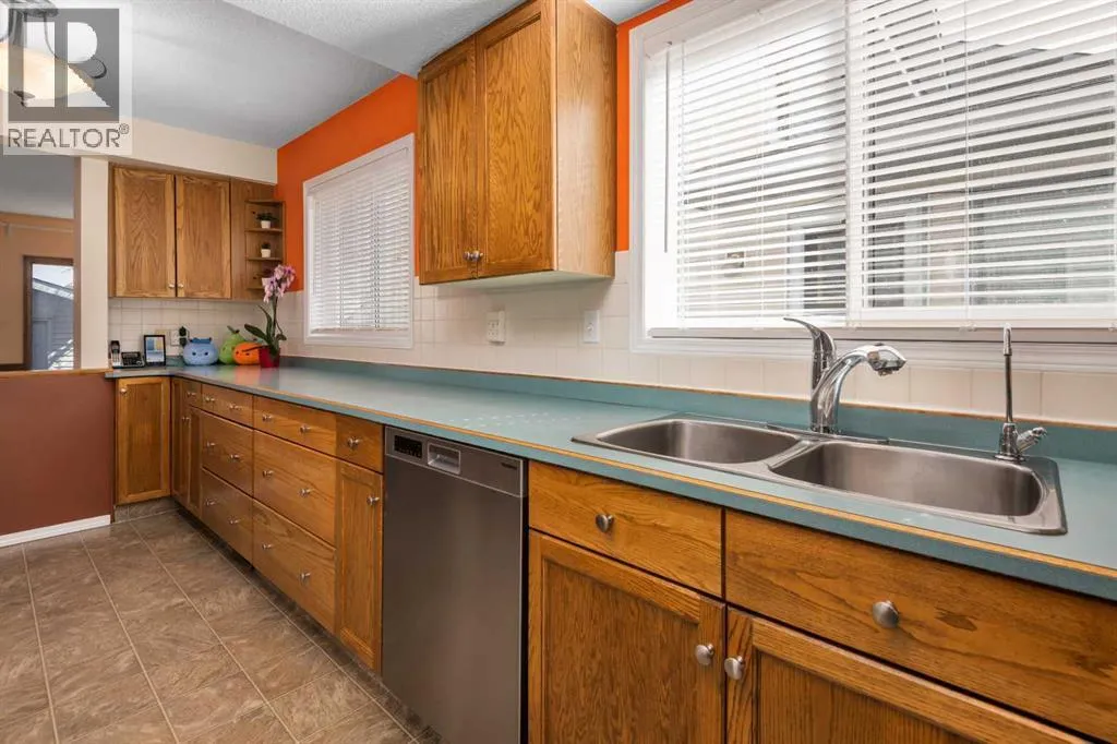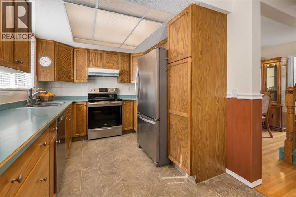 If youâre looking for an affordable, beautifully maintained home in a mature south communityâjust steps from parks, schools, transit, and shoppingâthis property truly stands out. This charming west-facing residence is only a short walk to the local school and Millrise Park, and offers quick access to public transit for effortless commuting. With more than 2,400 sq. ft. of developed living space across two storeys and a fully finished basement, the home provides an ideal blend of comfort, functionality, and room to grow. The upper level features three generously sized bedrooms, including a spacious primary suite with its own full ensuite. A fourth bedroom and an additional full 3 piece bathroom are located in the lower level, perfect for guests, teens, or extended family. The main floor showcases a traditional, well-proportioned layout designed for larger gatherings and everyday living. Gleaming, meticulously maintained hardwood floors add warmth and character throughout. The inviting family room, complete with a stone-surround wood-burning fireplace, creates a cozy retreat on cooler evenings. The bright, oversized kitchen offers ample cabinetry, newer stainless steel appliances, and a rare featureâtwo large windows that fill the space with natural light. While the laundry is currently located in the basement, the home is equipped with hookups on the main level should you prefer the convenience of relocating it. The lower level also includes abundant storage and a dedicated workbench area for hobbyists or DIY enthusiasts. The front yard is beautifully landscaped with lawn, wooden deck, childrenâs playhouse, mature shrubs, and trees, all enclosed by a secure chain-link fence. The private, low-maintenance backyard features a stone patio, vibrant flowers, and shaded areasâan ideal escape during warm summer days. The double car detached oversized garage will give you generous space for vehicles and year-round storage, making everyday living even more convenientThis is a wonderful opportunity to own a lovingly cared-for home in a highly desirable location, offering both charm and practicality in equal measure. (id:27476)
