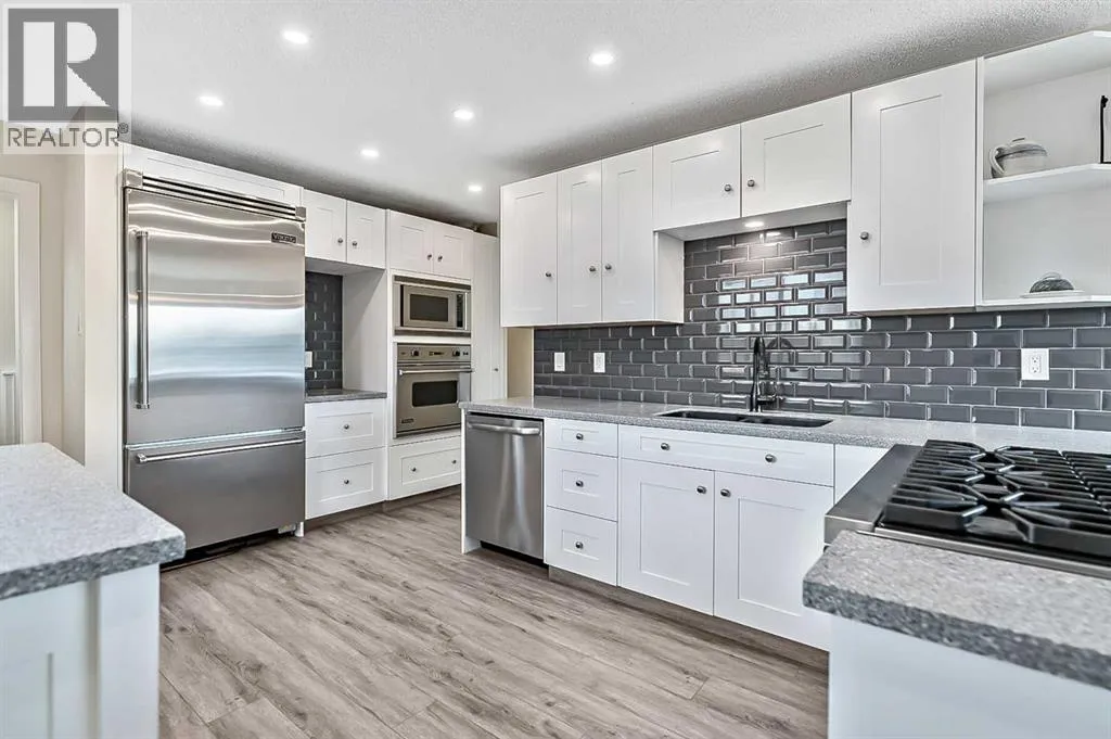 With a fantastic location on a corner lot tucked away in a quiet cul-de-sac, this home offers the perfect blend of space and functionality. The expansive lot with mature landscaping backs onto a greenway park, delivering both privacy and a seamless connection to nature in one of Calgaryâs most established southwest communities.Inside, the home has been thoughtfully updated throughout, featuring new flooring across multiple levels, a bright and spacious layout, and a beautifully renovated basement. The main level offers a warm and inviting living and dining space, complemented by a functional kitchen and three well-sized bedrooms, including a spacious primary that overlooks the backyard and features its own ensuite.The lower level adds incredible versatility with two additional bedrooms, a full bathroom, and a cozy family room anchored by a wood burning stove with updated brick surround. A generous rec room and a massive dedicated laundry room completes the lower level, making it ideal for growing families or those needing extra room for work, fitness, or guests.Outside, the large corner lot provides endless potential. The backyard is ready to enjoy with plenty of space for entertaining, gardening, or future customization. The single attached garage and extended driveway offer ample parking, while the surrounding greenery adds to the homeâs charm and privacy.Located just minutes from parks, schools, transit, the Glenmore Reservoir, Heritage Park, and major amenities, this is an exceptional opportunity to own a well cared for, move in ready home in the central, connected community of Southwood. (id:27476)