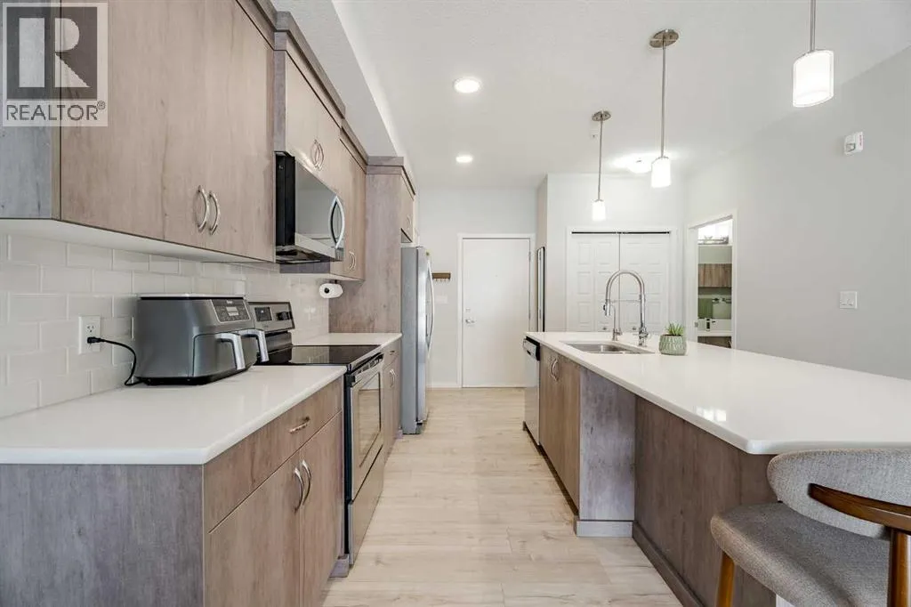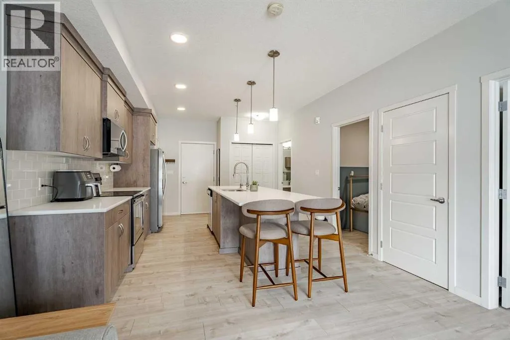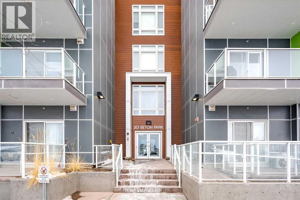 Step into a lifestyle defined by convenience, wellness, and effortless style. This isn't just a condo; itâs your front-row seat to the best of Seton. Perfectly positioned for the modern professional or the savvy investor, this pristine 2-bedroom, 1-bathroom home offers a seamless blend of comfort, high-tech upgrades, and unbeatable connectivity.Forget the elevator wait and enjoy the ultimate convenience of ground-floor living. Suite #112 is located just steps from the exit door, making grocery hauls, morning commutes, and dog walks incredibly easy. The interior is super clean, bright, and modern, featuring a thoughtful "no carpet" layout with durable flooring throughoutâperfect for allergy-sensitive living or pet owners. The aesthetic is stylish and sophisticated, featuring stylish Hue lighting in the kitchen pendants and bedrooms to set the perfect mood, while ceiling fans in both bedrooms ensure year-round comfort.Peace of mind comes standard here. The building is under excellent management that has leveled up the living experience, including the installation of security cameras and a commitment to constant cleaning that keeps the premises in fantastic condition.If location is everything, this home has it all. You are situated directly beside the Brookfield Residential YMCAâwidely celebrated as the finest YMCA facility in all of Canada. With a world-class gym, surf simulator, and Olympic-sized pools literally at your doorstep, "living well" becomes your daily reality. For those looking for a high-value investment or a short commute, the proximity to the South Health Campus is unbeatable. This location is a magnet for healthcare professionals, ensuring a premium rental pool or a quiet, professional environment for an owner-occupier.The lifestyle perks don't stop at your front door. You are surrounded by the best shopping and dining the south has to offer. Enjoy immediate access to the Seton Urban Districtâs VIP cinemas and trendy eateries, while the vibrant Mahogany shopping plaza is just a quick two-minute drive away. Future-proofing your investment is easy here, as youâll be steps away from the upcoming Green Line C-Train expansion, linking you directly to the rest of the city.Clean, upgraded, and well managedâthis is the one youâve been waiting for. Schedule your showing today and see why Seton is Calgaryâs most exciting urban community. (id:27476)