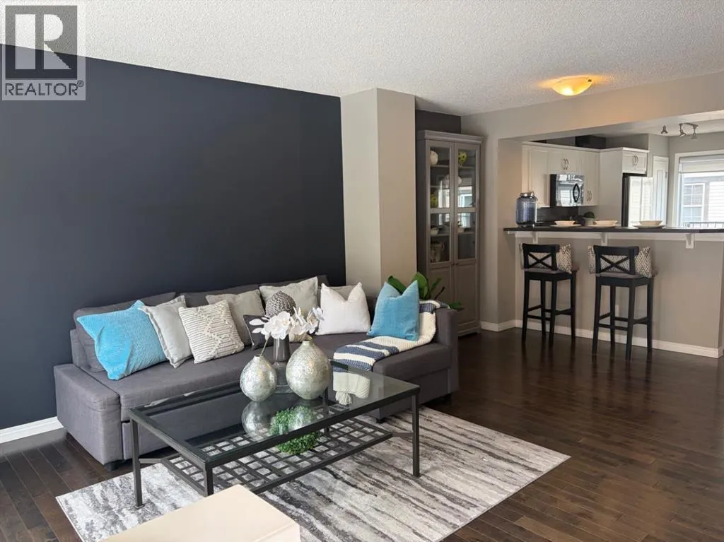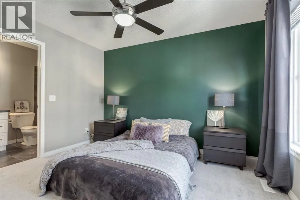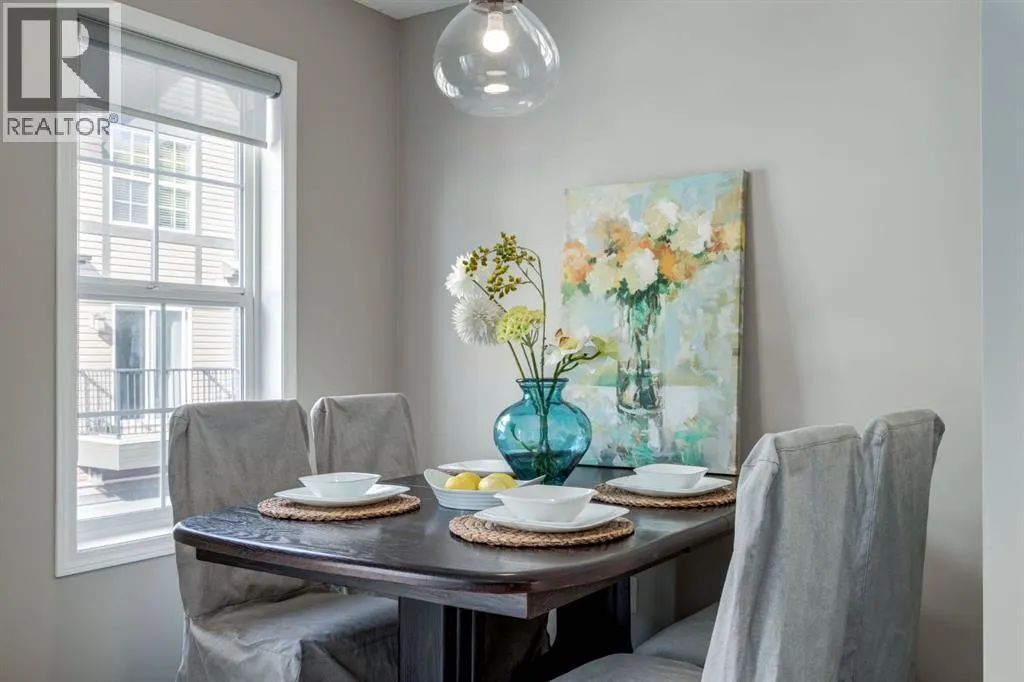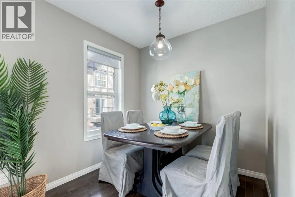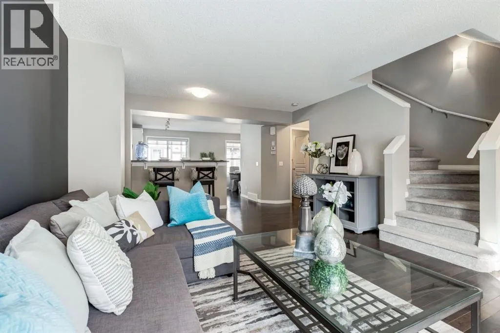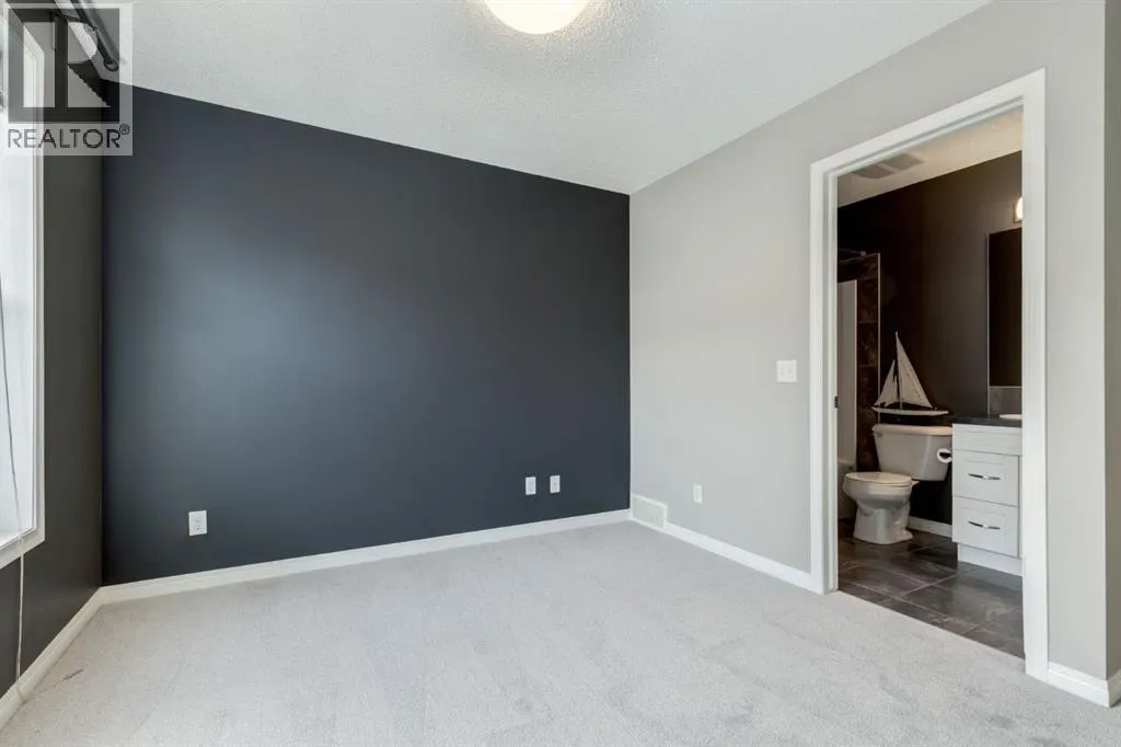 Welcome to this impeccably maintained, showhome-quality townhome in the heart of New Brighton Villasâwhere thoughtful design, timeless finishes, and an unbeatable location come together beautifully. With brand new carpet and fresh designer paint, this residence is completely move-in ready and radiates pride of ownership at every turn.Step inside to a bright, open-concept main floor featuring 9-foot ceilings and rich hardwood flooring that seamlessly connects the living, dining, and kitchen spacesâperfectly designed for both relaxed everyday living and effortless entertaining. The kitchen is both stylish and functional, offering abundant cabinetry, a convenient breakfast bar, and a sun-filled breakfast nook with sliding doors leading to your private balconyâan ideal spot for morning coffee or unwinding at the end of the day. A chic 2-piece powder room completes this level.Upstairs, youâll find a rare and highly sought-after dual primary layout, with two spacious bedrooms, each featuring its own private ensuite and walk-in closetâperfect for roommates, guests, or added privacy. A versatile loft-style office or flex space provides the ideal setting for working from home or creating a cozy reading retreat.The lower level adds everyday practicality with a dedicated laundry area (washer & dryer included), additional storage, and direct access to the fully dry-walled double attached garage. The undeveloped basement space offers future potential to customize to your lifestyle. Charming fenced patio, and a well-managed complex with low condo fees, offering peace of mind and long-term value.Located in the vibrant and family-oriented community of New Brighton, youâre surrounded by parks, playgrounds, top-rated schools, scenic pathways, and convenient shopping, all just minutes away. Most deserving your private showing!Whether youâre a first-time buyer, savvy investor, or looking to downsize without compromise, this home delivers a rare blend of style, functionality, a nd lifestyle appeal in one of Calgaryâs most desirable southeast communities. (id:27476)