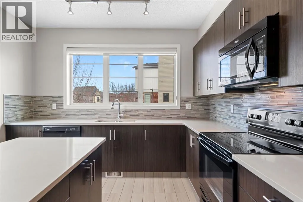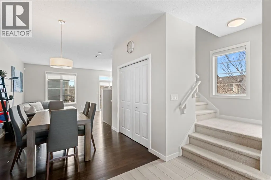 Experience the perfect blend of modern style and functional design at 102 Walden Circle SE, a stunning end-unit townhome that offers the privacy and natural light of a detached home with the convenience of low-maintenance living. This residence welcomes you with an open-concept main floor defined by 9' ceilings and extra side windows that bathe the kitchen and spacious living area in soft, natural sunlight. Whether you are hosting friends around the island with quartz countertops or enjoying a quiet evening on the balcony makes daily living effortless. The lower level provides incredible utility with an oversized double-car tandem garage, offering plenty of space for two vehicles or extra room for a workshop and seasonal storage, as well as a full sized driveway. Upstairs, you find the primary with ensuite and generous walk-in closet, complemented by well-appointed additional 2 bedrooms. Ideally situated just steps from the Gates of Walden shopping district, pathways, parks and offering rapid access to Macleod and Stoney Trails, this end-unit gem is a rare find for those seeking a harmonious, move-in-ready lifestyle. (id:27476)
