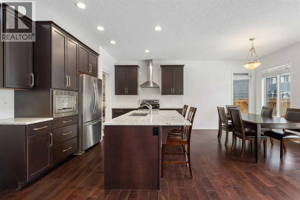 ***Open house Sunday March 22, 1-3PM *****Welcome to this beautifully maintained, original-owner home offering approximately 2,400 sq.ft. of thoughtfully designed living space by award-winning builder Morrison Homes. Step inside to a versatile main floor flex roomâperfect for a home office, study area, or kidsâ playroom. The main level features upgraded maple hardwood flooring and an open-concept layout that seamlessly connects the living room, dining area, and kitchen. The kitchen is equipped with newer upgraded appliances, granite countertops, and a convenient walk-through pantry, ideal for everyday functionality and entertaining. Expansive windows throughout the home fill the space with natural light, enhanced by the desirable south-facing backyard. Upstairs, youâll find three generously sized bedrooms, each complete with huge walk-in closets. The second floor also offers a bright and airy bonus room with impressive ceiling height, a well-appointed laundry room, and bathrooms finished with upgraded granite countertops and under-mount sinks for a clean, modern look. The unfinished basement provides an excellent opportunity to create your dream space, featuring large windows and a smart layout with the furnace tucked into the corner to maximize usable area. Located on a quiet street, this home is within walking distance to multiple schools, playground, and lake access, and just minutes from South Health Campus, YMCA, library, and shopping amenities. This is a rare opportunity to own a pristine, original-owner home in a highly desirable community - book your viewing today! (id:27476)