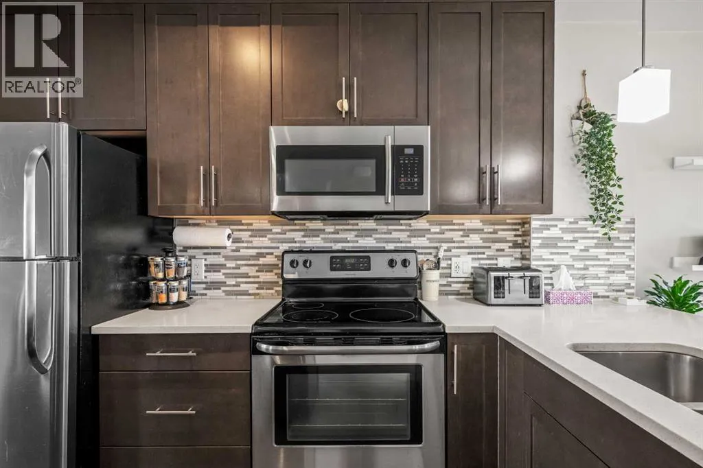 Flooded with natural light and located on a safe, family-friendly street, 51 Redstone Circle NE offers a bright and contemporary townhome with thoughtful upgrades and a layout designed for comfort and low-maintenance living. The main floor features patio balconies on both sides, creating a functional indoorâoutdoor connection. One balcony overlooks an open field and future school site, while the other extends from the kitchen toward a quiet internal drive.The main living level is designed with an open-concept layout and finished with quartz countertops and modern design elements. The kitchen is well equipped with Frigidaire stainless steel appliances, including a stove, refrigerator, microwave hood fan, and dishwasher. Large windows allow natural light to fill the space and are finished with included window coverings. Added features such as wall mounts provide convenience for an entertainment setup.Upstairs, the home continues to offer comfort and practicality with a dedicated laundry area featuring a Samsung washer and dryer. Two well-sized bedrooms and additional storage complete this level. The property has been meticulously maintained and has had no pets or children, resulting in a clean, like-new interior that is truly move-in ready.The entry level includes a single tandem garage that comfortably accommodates two vehicles or provides additional space for storage, a workshop, or recreational equipment. This flexible layout is well suited for first-time buyers, investors, or those looking to downsize while maintaining functionality and efficiency.Additional highlights include negotiable furniture, included window coverings, two balconies that enhance outdoor living, and a well-maintained interior throughout.Located in the growing community of Redstone, the home offers convenient access to parks, future schools, pathways, shopping, and major commuter routes. With its bright interior, modern finishes, and move-in-ready condition, 51 Redstone Circle NE pre sents an excellent opportunity in Calgaryâs northeast. (id:27476)