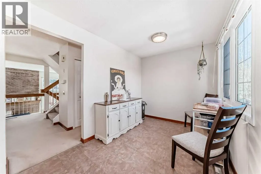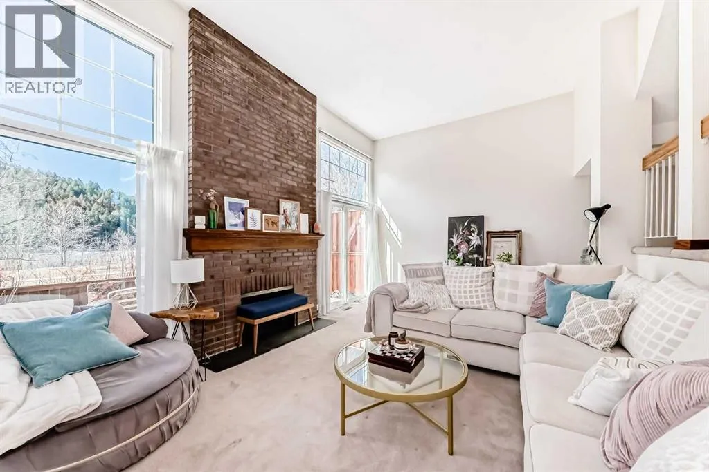 A rare riverfront find! In pristine condition, with intelligent upgrades and original character elements throughout; this beautiful Point McKay townhome presents a rare opportunity to own one of the properties that put this area among Calgaryâs most coveted communities. A covered front porch gives way to a large foyer with sizable closets, shared with the single attached garage entry. Light filters down, inviting you to step up into a stunning living area with soaring ceilings and full-height windows showcasing panoramic riverside scenery. The brick hearth from the original wood-burning fireplace extends all the way up as well, a gorgeous focal point in the light and airy room, while sliding glass doors segue into outdoor living. Wall cutouts and open railings connect the four-level split layout and the amazing views as you move up into the dining room. Noticeable updates in the kitchen include lighting and some appliances, and the windows in the home are newer as well. Oak cabinetry is timeless â you could easily refresh the look of the entire space with a flooring or countertop change. The breakfast nook enjoys morning sun, perfect for a cup of coffee before you start the day. A half bath on this level is convenient and cute as-is, or you might choose to infuse your personal taste with a simple remodel. Upstairs, you will notice a similar theme. Every inch of this home is immaculate, with neutral finishes that will work with any décor, or bring in your own aesthetic to make it truly your own. Spacious and bright, the primary bedroom includes a walk-through closet, and a four-piece ensuite with a vintage alcove shower has a unique charm. Two more bedrooms provide plenty of space for guests, a family, or offices. A well-appointed main bath completes this level. In the basement, you will find a laundry area as well as a huge utility room with tons of extra storage space. Outside, the brick patio feels like a private oasis, looking over the green space and river shore line. Garden beds thrive in the sunny exposure, and amazing sunsets paint the perfect backdrop for evening gatherings. This area is picturesque and parklike, with the Bow River Pathway just steps from your door offering hours of activities, whether you walk, run, or visit nearby outdoor fitness parks and off leash areas. Cycle commuters can be downtown in close to the same time as the short trip takes by car. This community attracts active professionals, and the neighbourhood is well-resourced, with the Riverside Club providing fitness and wellness facilities and the iconic Riverside Spa. Foothills and the Childrenâs hospitals are both nearby, as is the University of Calgary. Local residents enjoy several hidden gem restaurants, like the Lazy Loaf and Kettle, Nove Nine Diner, and LICS Ice Cream. A short drive (or bike ride) puts one of Calgaryâs hottest food districts in easy reach, or you can be headed west into the mountains with only a few minutesâ drive in the other direction. See this one today! (id:27476)