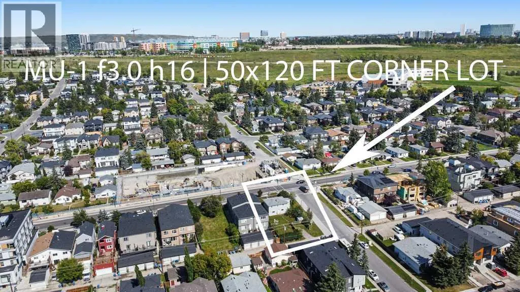 MU-1 f3.0 h16 | 50x120 FT CORNER LOT. This is your opportunity to shape the future of one of Calgaryâs most dynamic inner-city corridors. Situated on a prominent corner along Bowness Rd NW, this 50x120 ft parcel offers exceptional potential for developers looking to capitalize on the cityâs push for vibrant, walkable, mixed-use communities. With MU-1 f3.0 h16 zoning, the site offers the ideal balance of density, flexibility, & neighborhood integration, making it perfectly suited for a range of residential & commercial redevelopment options. CORNER LOT ADVANTAGE â MAXIMUM VISIBILITY & DESIGN FLEXIBILITY. This high-exposure corner lot enhances architectural possibilities, increases natural light, & offers dual street frontageâideal for activating both facades with retail, townhomes, or a signature multifamily entrance. Corner sites like this are increasingly rare in inner-city redevelopment & provide long-term value through visual prominence & efficient site access. MU-1 ZONING â INFILL-FRIENDLY & FLEXIBLE. Zoned MU-1 with a 3.0 Floor Area Ratio & a maximum building height of 16 metres, this site allows developers the freedom to build up to 18,000+ sq ft (depending on design). Permitted uses include multi-family apartments or condominiums, street-oriented townhomes, live/work units, & boutique medical, office, or retail. This zoning supports a versatile mixed-use format aligned with Calgaryâs long-term land use strategy & provides the flexibility to adapt to changing market demands. BOWNESS ROAD NW â A NEIGHBOURHOOD MAIN STREET ON THE RISE. Located within a designated Neighbourhood Main Street in the Calgary Municipal Development Plan, the site benefits from public investment, infrastructure improvements, & strong community engagement. The area is surrounded by shops, parks, transit, schools, & the Bow River Pathway, making it one of Calgaryâs most desirable growth corridors. Directly across the street, a 176-unit condo is underwayâboosting density and foot traffic th at could support two retail bays on this lot. DEVELOPMENT POTENTIAL. Subject to city approval, redevelopment options include mid-rise residential with 12â18 units, a mixed-use building with retail at grade & housing above, or ground-oriented townhomes designed for families, working professionals, or downsizers. A site-specific design could incorporate rooftop patios, green features, & modern architecture to maximize value. Calgaryâs continued westward population growth & strong demand for urban living outside the downtown core position this site perfectly to meet both investor goals & community needs. WHY INVEST HERE? Proven area growth with strong absorption in adjacent developments. Built-in demand from professionals, families, & downsizers seeking urban lifestyle. Excellent transit connectivity & walkable access to amenities support higher density. City-backed redevelopment vision offers long-term upside. Corner exposure makes this a rare infill with curb appeal & strong development potential. (id:27476)