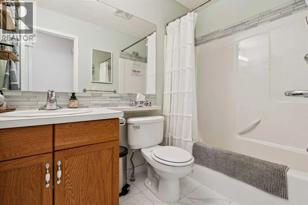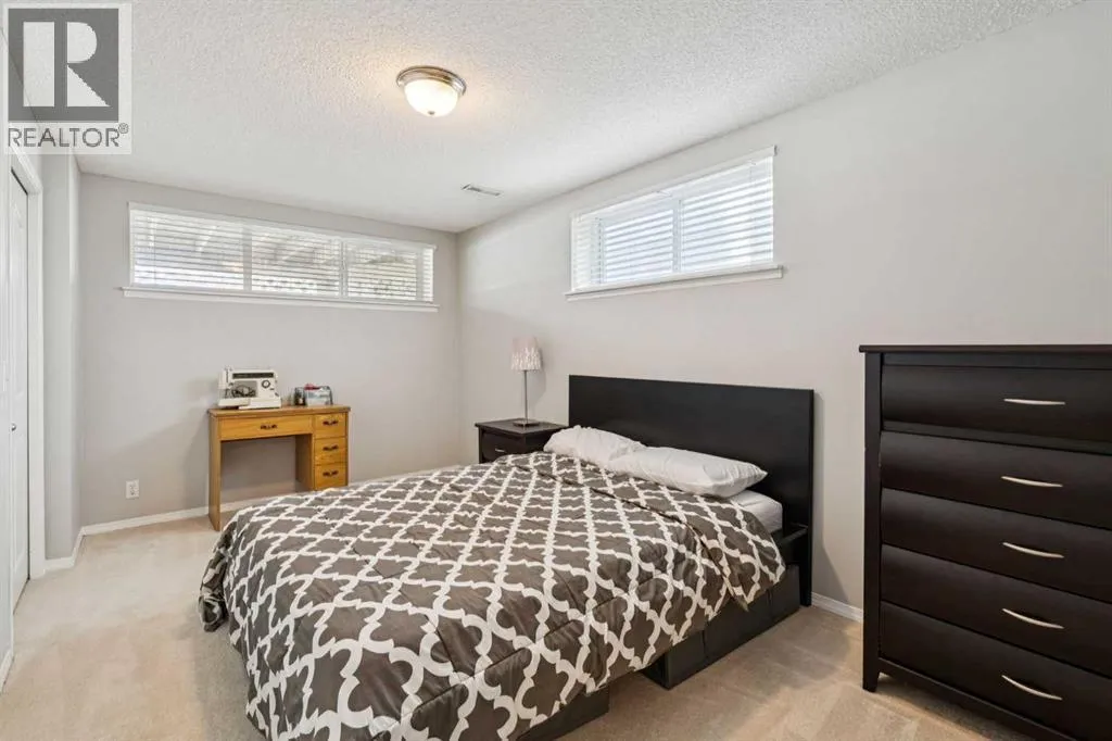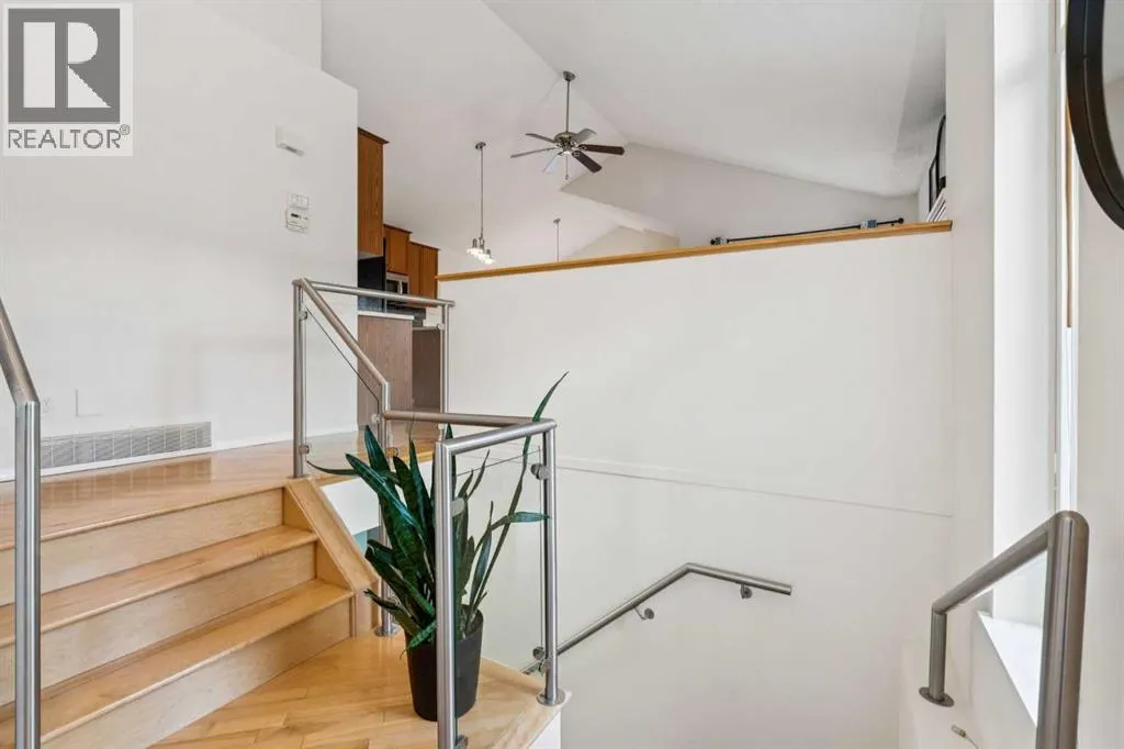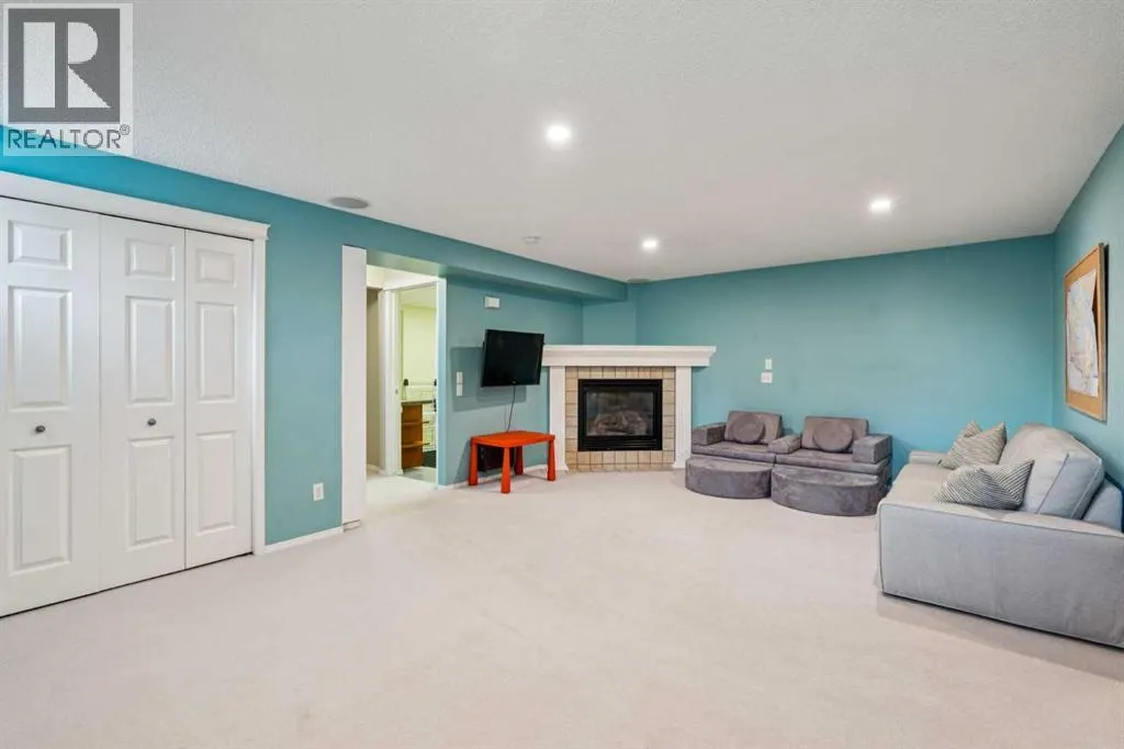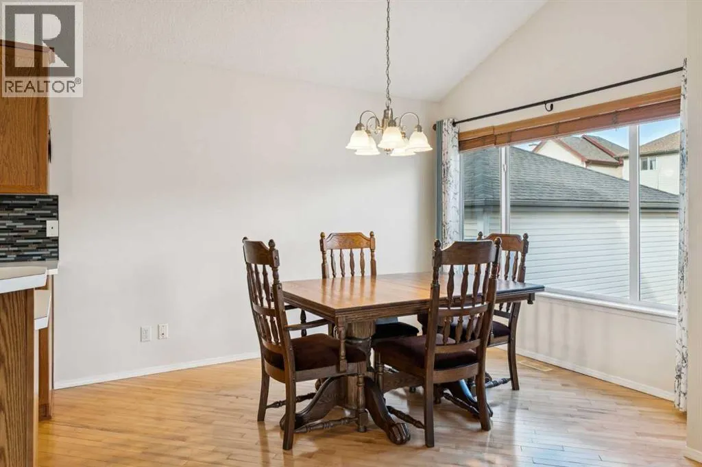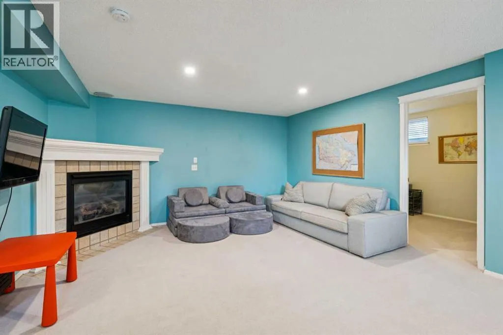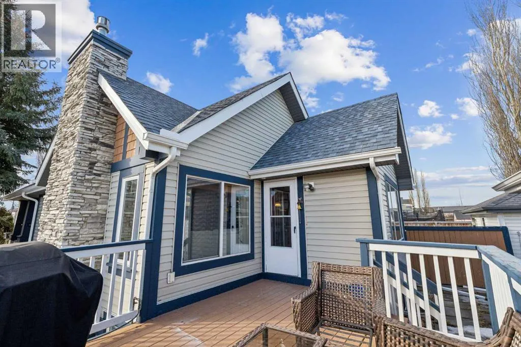 This wonderful Bungalow is a perfect family home situated on a corner cul-de-sac location. Welcome home. This beautiful bungalow offers many features- super bright home with vaulted ceilings, hardwood floors, open concept living space, stainless steel and glass railings, and a bright kitchen with a centre island. The living room features a gas fireplace with a tile surround and mantle-style finish. The large primary bedroom also has a walk-in closet with a laundry chute and glass sliding doors that lead to a front balcony. The basement is finished with a large family room, a corner gas fireplace, two more spacious rooms (one of the rooms is being used as an office), a laundry room, a storage room, and another 4 pce bath. The home is a non-smoking, no pet home. The home is close to all amenities, schools, restaurants, shopping, Stoney Trail. (id:27476)