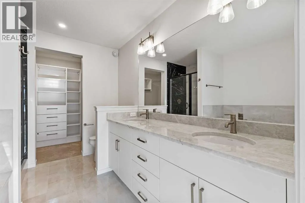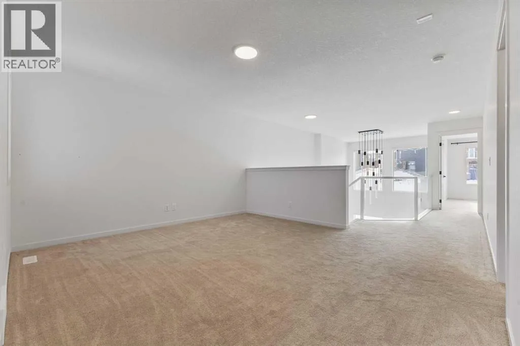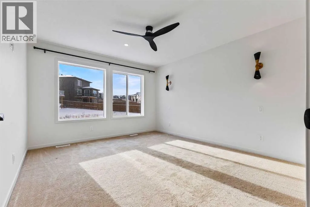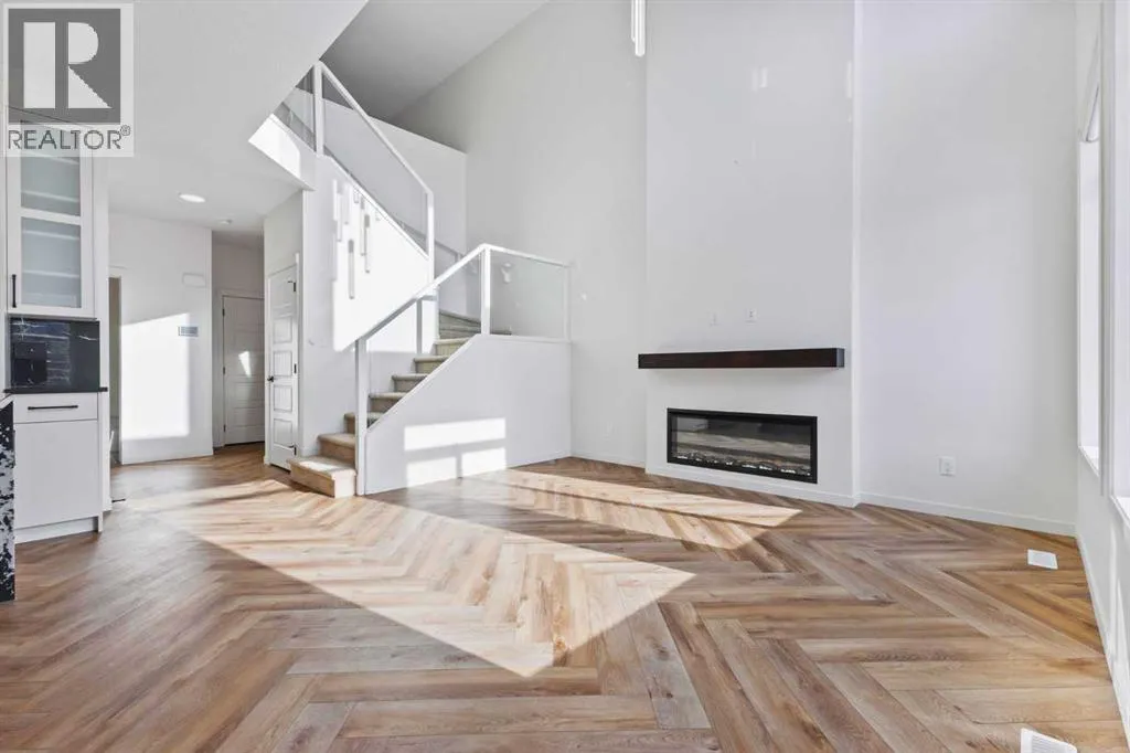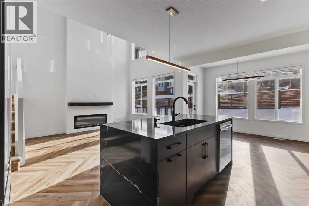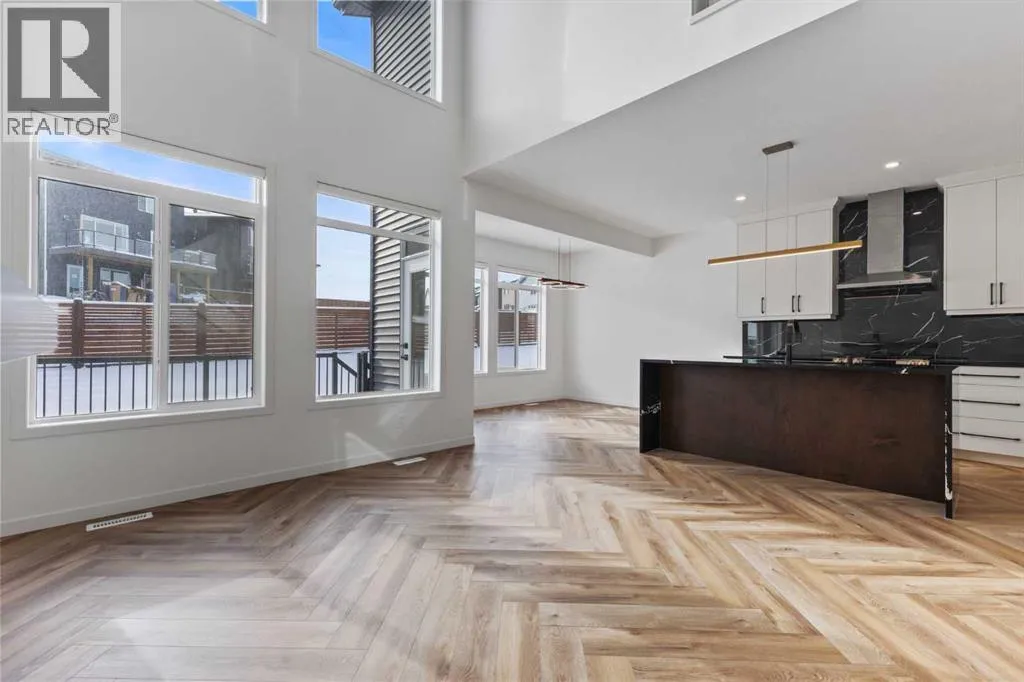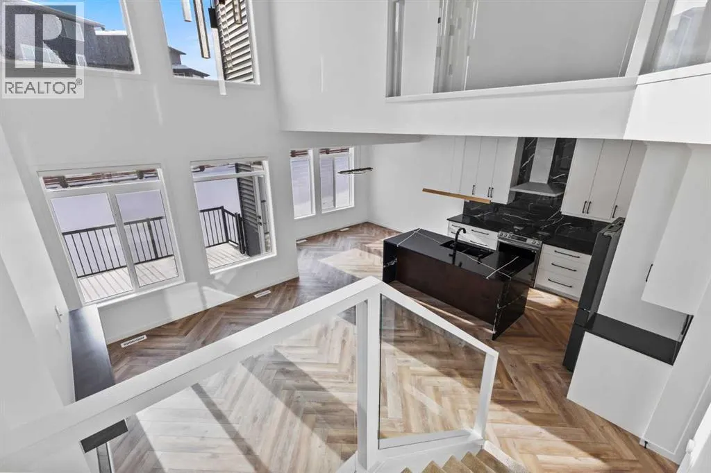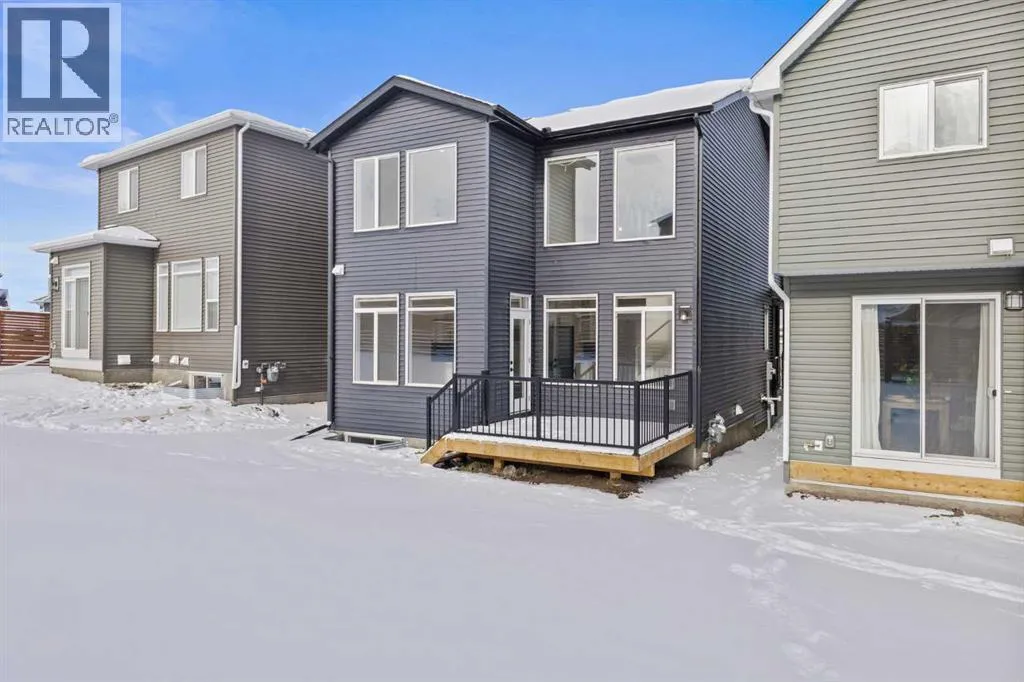 Welcome Home to 229 Calhoun Crescent NEDiscover this stunning Morrison-built two-storey home, offering just under 2,000 sq. ft. of beautifully upgraded living space. The bright, open-concept floor plan is flooded with natural light, highlighted by soaring ceilings and a spectacular two-storey living room with expansive windows.The gourmet kitchen is a chefâs dream â equipped with a gas range, striking stainless steel hood fan, double-door refrigerator with water and ice, and a built-in microwave. Custom quartz countertops, ceiling-height cabinetry, and a walk-through pantry with abundant storage complete this elegant space.Upstairs, glass-panel railings and a bright upper hallway continue the homeâs airy feel. The primary suite is spacious and luxurious, featuring a soaker tub, dual sinks, walk-in closet with built-in storage, and stylish brass fixtures atop custom quartz counters.The secondary bedrooms are generously sized â perfect for a growing family â and the unspoiled basement with large windows and a 3-piece plumbing rough-in awaits your future development ideas.This exceptional home, located in a sought-after family-friendly community, truly has it all. (id:27476)