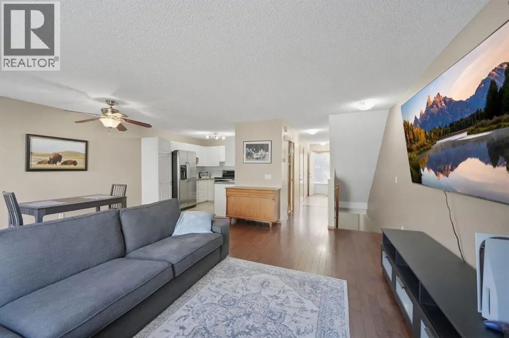 Welcome to this charming and well-maintained home in the heart of McKenzie Lake, offering over 1700 sq ft of developed living space.The main floor features rich engineered hardwood flooring & an open concept layout that seamlessly connects the living and dining areas, perfect for both everyday living and entertaining. The bright kitchen showcases white cabinetry, stainless steel appliances and plenty of storage. The living room feels cozy, anchored by a corner gas fireplace with a mantle, creating a warm and inviting atmosphere. A convenient main floor powder room completes this level.Upstairs, you will find a spacious primary bedroom with generous closet space, along with two additional well-sized bedrooms. A full four-piece bathroom and a linen closet add to the functionality of the upper level.The fully finished basement offers even more living space with a large recreation room, dedicated laundry area, and additional storage. Step outside to enjoy the spacious back deck, ideal for summer evenings and outdoor gatherings.This home also features a front attached single garage, along with convenient visitor parking nearby. Recent upgrades include a hot water tank and central air conditioning, adding comfort and peace of mind.Located close to schools, shopping, restaurants, and public transit, this home is perfectly situated within a vibrant community known for its walking paths and easy access to Fish Creek Park.A fantastic opportunity to own a move-in ready home in one of Calgaryâs most sought-after family communities. Fur friends welcome here! (id:27476)