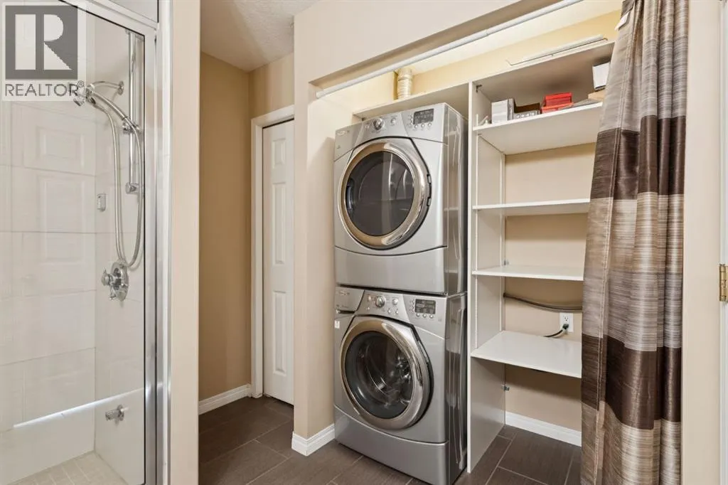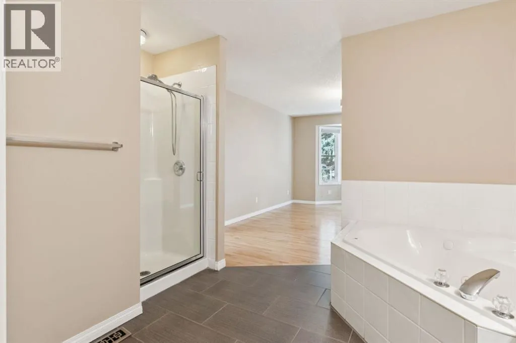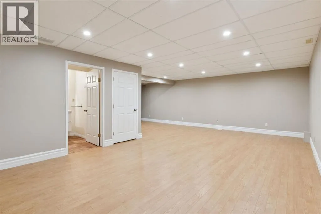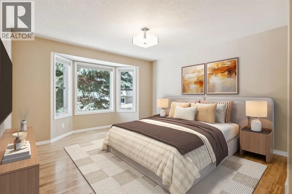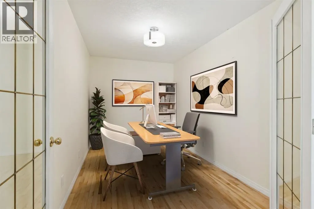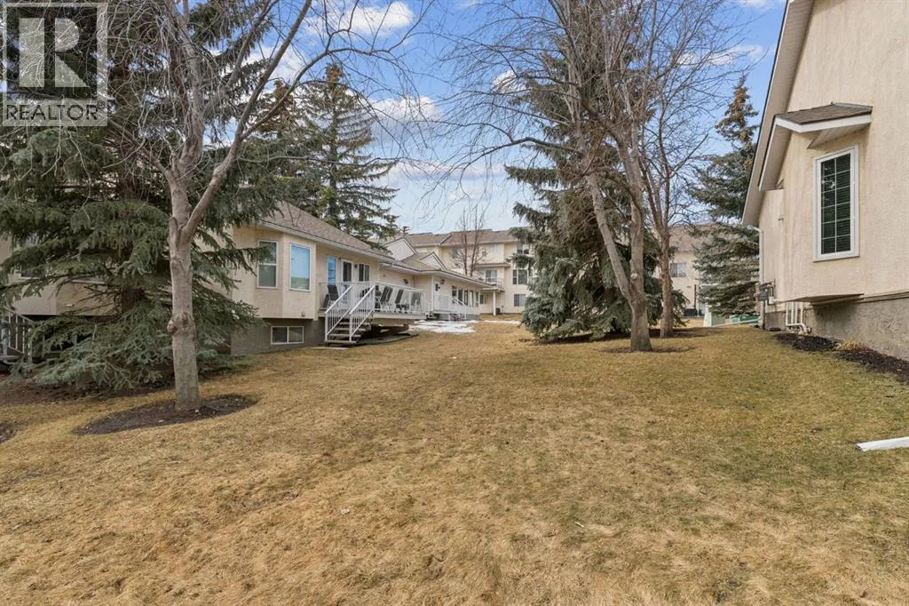 Welcome to Prominence Hillsâwhere comfort, convenience, and effortless living come together. This beautifully updated home offers the ideal lock-and-go, maintenance-free lifestyle, perfectly suited for those looking to simplify without compromise. Tucked away on a quiet street and surrounded by natural green space, it provides a rare sense of peace while remaining close to everything you need. With over 2,300 square feet of thoughtfully designed living space, the main floor features soaring vaulted ceilings, rich hardwood floors, and an abundance of natural light. A three-way fireplace creates warmth and connection between the living and dining areasâperfect for both everyday living and hosting family and friends. The kitchen is both stylish and functional, complete with custom cabinetry, quartz countertops, stainless steel appliances, integrated dishwasher and a bright eating nook that opens onto a private deck framed by mature evergreensâan ideal setting for morning coffee or summer evenings outdoors. The main floor den offers flexibility for a home office or reading retreat, while the beautifully renovated bathroomâwith a luxurious steam shower and integrated laundryâadds both comfort and convenience. The primary suite is a true sanctuary, featuring a bay window, walk-in closet, and a spa-inspired ensuite with a jetted tub and glass shower. Downstairs, a fully developed lower level provides exceptional additional space for guests and family, hobbies, or a media room, along with a full bathroom and generous storage. Upgrades include triple-pane windows with E2 coating (2015 & 2017), New exterior doors (2024), tankless water heater, humidifier & high efficiency furnace (2015), new R50 foam insulation in the attic and above the garage (2024), and Polyaspartic flooring in the garage (2024). Enjoy being just steps from walking paths and an off-leash dog park, with easy access to shopping, dining, transit, the mountains and downtown. A rare opportunity to enjoy comfor t, convenience, and a truly low-maintenance lifestyle with low condo fees in one of Calgaryâs most desirable west-side communities. Love where you live! (id:27476)