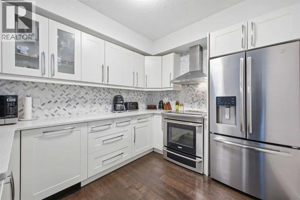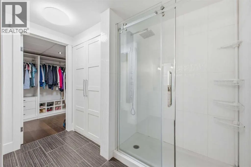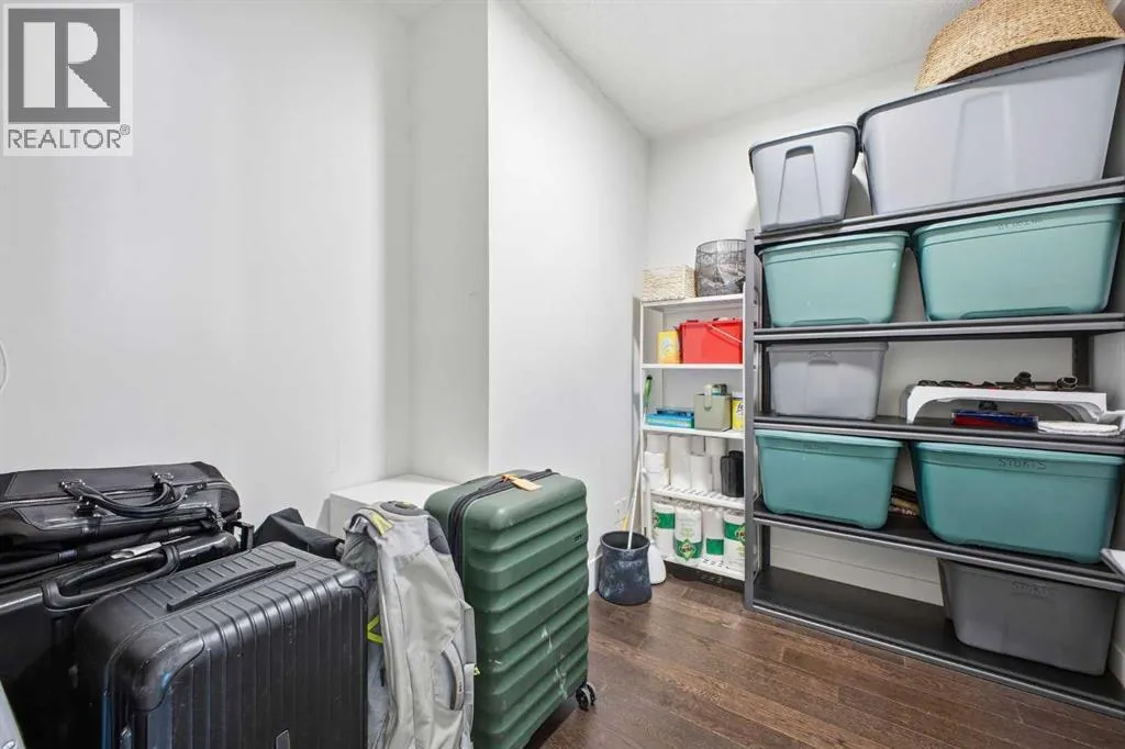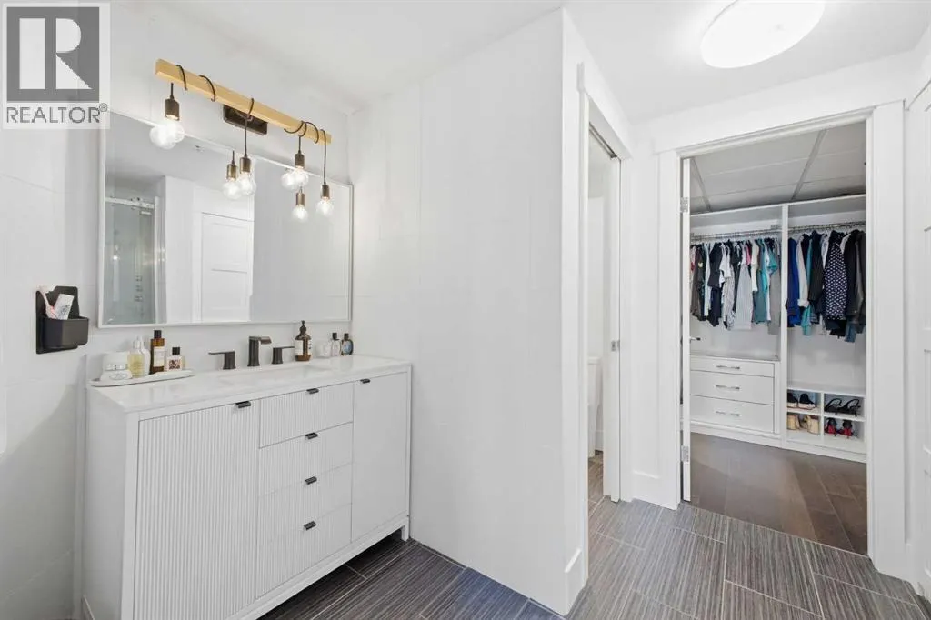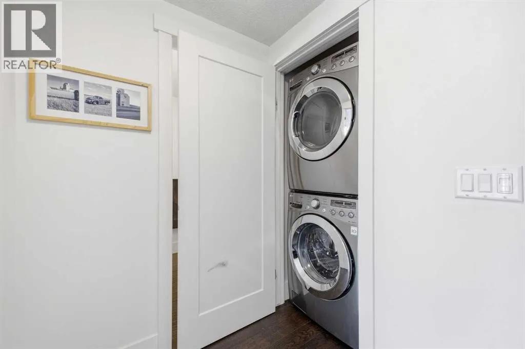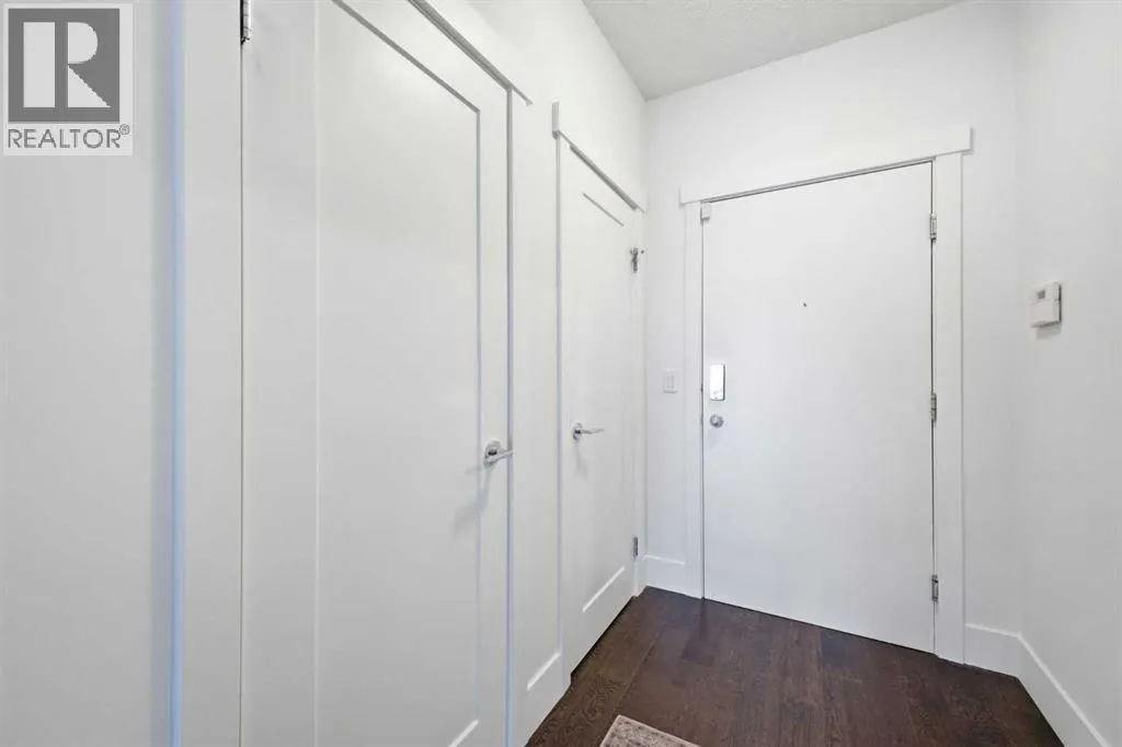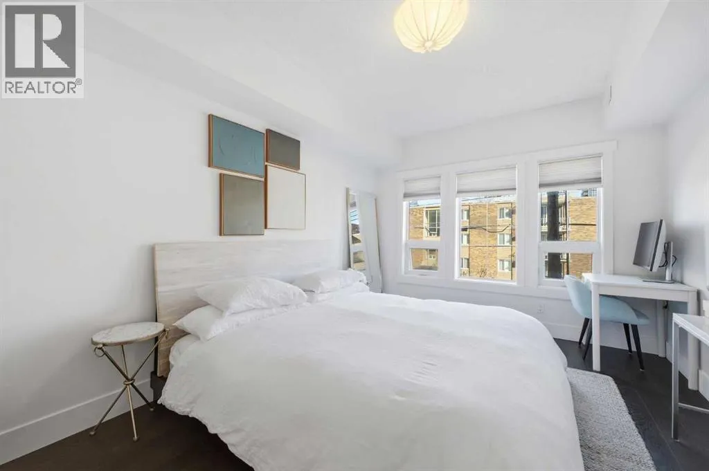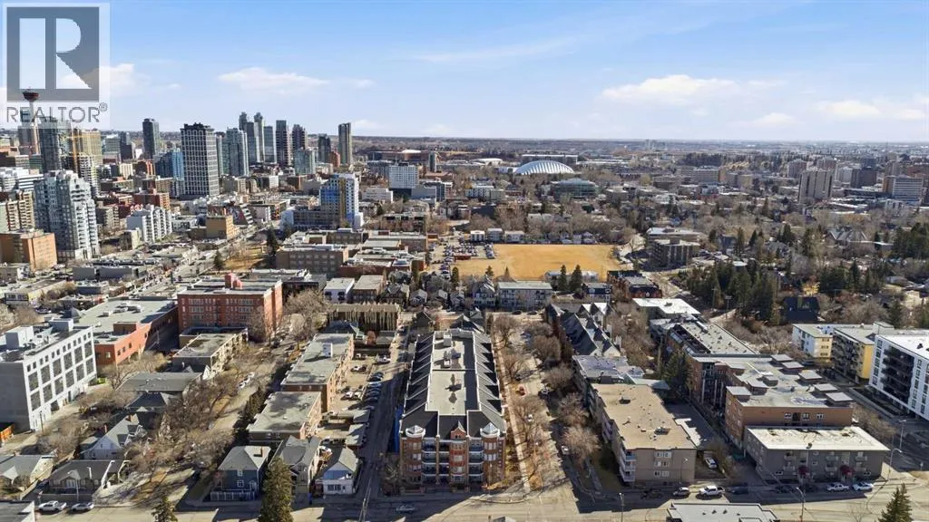 Bright and spacious, this 2-bedroom condo sits in the heart of Lower Mount Royal and offers an inviting blend of style and comfort. Espresso stained hardwood flooring and high ceilings create a warm, open feel throughout the main living spaces. The generous living area flows seamlessly into the dining space, where a feature stone wall with a built in wine fridge adds both character and function. The sleek kitchen is appointed with quartz countertops, crisp white cabinetry, and stainless steel appliances. The primary bedroom offers excellent closet space and a spa inspired 3 piece ensuite. A second bedroom and additional 4 piece bath provide ideal accommodations for guests or a dedicated home office. Additional highlights include Nest temperature control, in suite laundry, a private balcony, in suite storage, and a titled parking stall. All of this is set just steps from the vibrant shops and restaurants of 17th Avenue, close to the Bow River pathways, and within walking distance of the downtown coreâan unbeatable location for urban living. (id:27476)