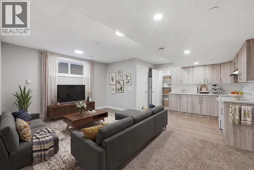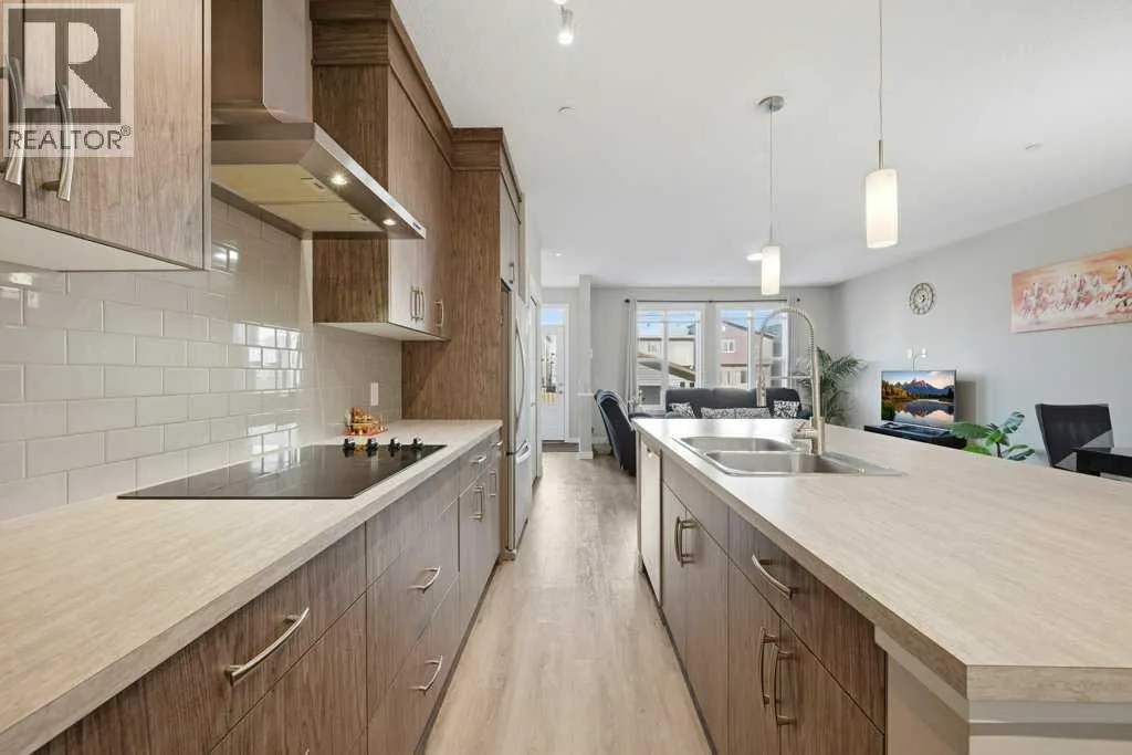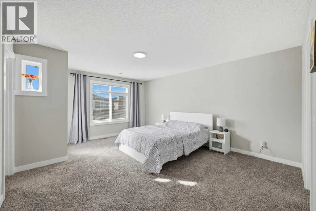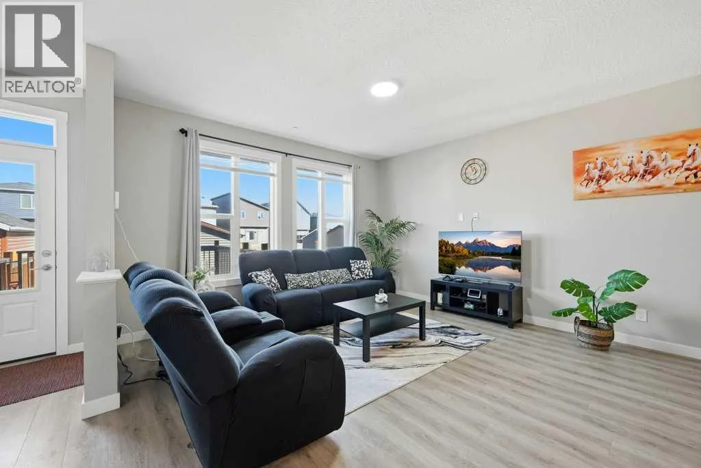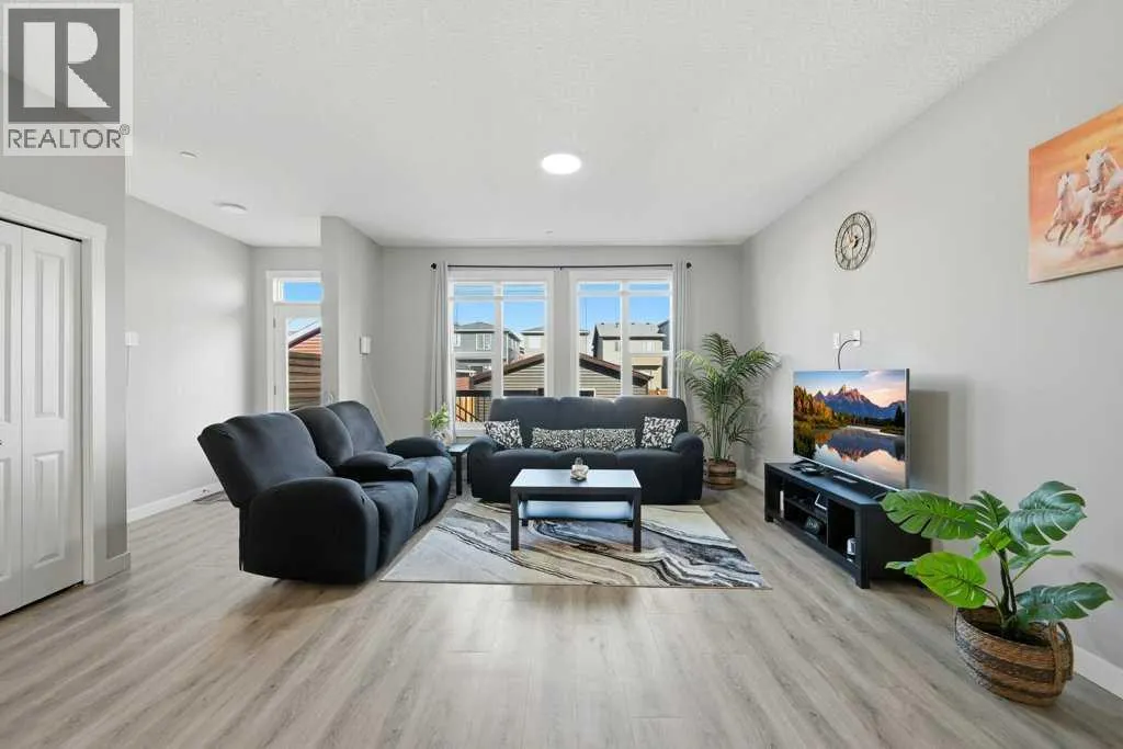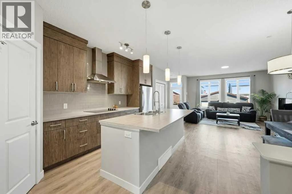 ** OPEN HOUSE - SUNDAY APRIL 5th from 2 PM to 4 PM ** Welcome to this stunning detached home in the vibrant community of Livingston, offering no neighbours behind for added privacy! Situated on a deep 130 ft lot, this property provides an extended backyard, perfect for outdoor enjoyment.This beautifully designed home features a massive front porch and approximately 1,900 sq. ft. of living space above grade, with 9-ft ceilings and luxury vinyl plank flooring throughout the main floor. The spacious foyer includes a large closet and leads to a bright front office with south exposure, filling the space with natural light.The chef-inspired kitchen is truly the heart of the home, showcasing ceiling-height cabinetry in a modern cream tone, an elegant full-height tile backsplash, high-quality countertops, and stainless steel appliances, including an electric cooktop, built-in oven and microwave, and range hood fan. A massive corner pantry adds extra convenience. The adjacent dining area easily accommodates an 8-seat table and flows seamlessly into the cozy living room, highlighted by large windows that flood the space with natural light.At the rear, youâll find a spacious mudroom leading to a large deck, a low-maintenance backyard, and a double detached garage.Upstairs features a functional and family-friendly layout with plush carpeting throughout, a bonus/family room perfect for entertaining, and convenient upper-floor laundry. The primary bedroom offers space for a king-size bed, a luxurious 5-piece ensuite with double vanity, a walk-in closet, and the rare bonus of private balcony access. Two additional generously sized bedrooms and a 4-piece bathroom complete the upper level. The home is also equipped with a security system throughout.A standout feature is the legal basement suite with a separate side entrance, complete with a full kitchen, spacious bedroom, large windows (larger than standard), and a 4-piece bathroom an excellent opportunity for rental income ( previously rented for $1,800/month) or multi-generational living.Located just minutes from Stoney Trail, close to shopping and amenities, and only a 2-minute walk to the bus stop, this home offers the perfect combination of comfort, convenience, and investment potential.Donât miss your chance to own this exceptional property! (id:27476)