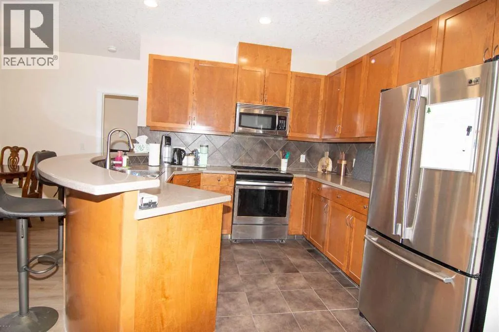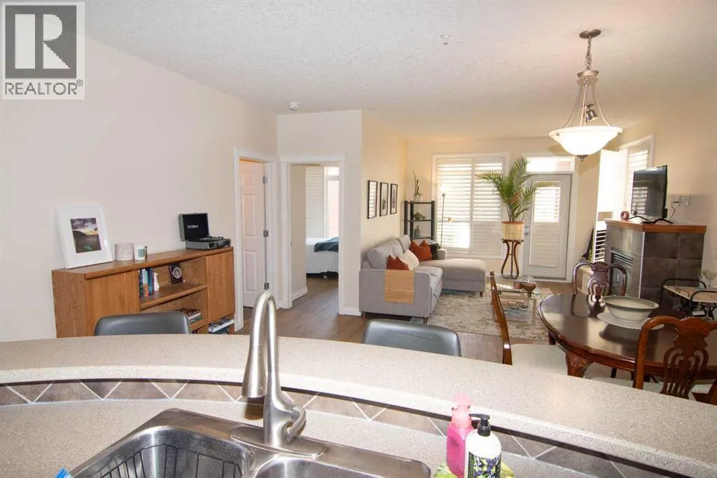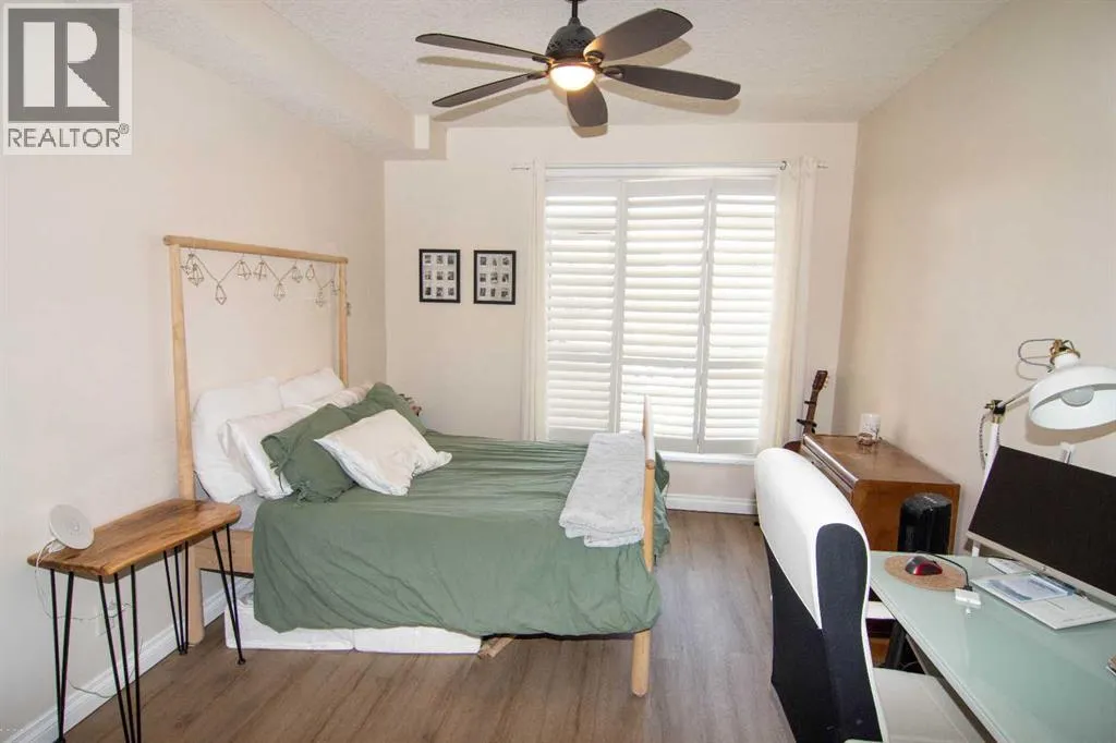 Large 2 bedroom/2 bath unit featuring large kitchen with spacious kitchen, lots of cupboards, raised breakfast bar, stainless appliances. Living room with fireplace and door leading to a private south balcony, room for dining table, Two good sized bedrooms, master with 5 piece ensuite including a soaker tub, double vanity, walk-in shower and a walk-in closet. Second bedroom could easily be a TV room, next to second bathroom. BONUS NEW VINYL FLOORING. Comes with titled parking stall and extra storage in the underground garage. On site car wash. The complex offers a gym with lots of equipment. Behind the building is a bike/walking path to the river. This is one of the better locations in the west end, close to Westbrook mall, C-train, buses, restaurants, city golf coarse. The building is well built and very quiet. (id:27476)