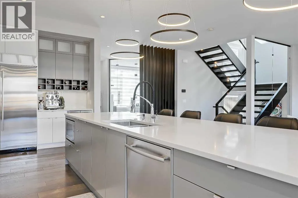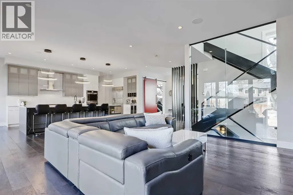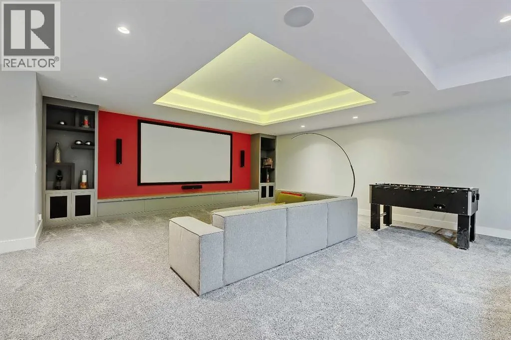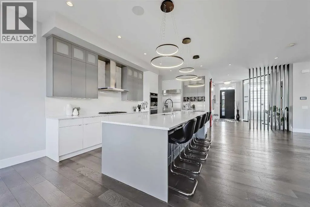 Experience elevated living in this exceptional custom-built luxury home in North Glenmore Park, offering over 3,400 sq ft, 6 bedrooms, and 4.5 bathrooms. Designed with a seamless blend of modern architecture, high-end finishes, and everyday functionality.As you enter, you're greeted by a spacious foyer that flows effortlessly into a stunning open-concept main floor, defined by soaring ceilings, expansive windows, and abundant natural light. At the heart of the home is a chef-inspired kitchen featuring custom cabinetry, premium Jenn-Air appliances, quartz countertops, and an oversized islandâperfect for both everyday living and sophisticated entertaining. The adjoining dining area and elegant living room, anchored by a sleek linear fireplace, create a warm yet refined atmosphere.Designed for todayâs lifestyle, the main floor also offers a glass-enclosed office and an additional private den with built-in millwork, giving you a dedicated space to work or play room that doesn't take up the whole house. A well-appointed mudroom with 5 custom lockers provides exceptional storage and direct access to the heated oversized double garage.Upstairs, the primary suite is an absolute dream. The walk-in closet is spacious, and the ensuite feels like a spa, with dual showerheads (including a rain shower and spray nozzle), a steam shower, and in-floor heating. Itâs pure luxury. The other THREE beds are generously sized, with one enjoying a private 3-pc ensuite and the other two sharing a lovely 5-pc Jack-and-Jill ensuite with a skylight.The fully developed lower level is designed for entertainment & wellness. The media room is set up for movie nights or big game days with a 120â projector screen and built-in surround sound for an immersive experience. There's also a gym OR 6th bed, a games area with pool table, a wet bar, in floor heating, and the integrated whole-home audio enhances both indoor and outdoor experiences.Step outside to your private outdoor oasis, complete w ith a covered deck with built-in heater, outdoor speakers, built-in BBQ station, irrigation system, and ambient gemstone lightingâperfect for year-round entertaining.The oversized double garage (27 Wx 23 D) with a heater provides more than enough space for your cars, plus extra storage. The home also has all the smart tech you could want plus multi-zone air conditioning, a VacuFlow system on all three floors, and motion-sensor lighting.Ideally located just minutes from the vibrant shops and dining of Marda Loop, Glenmore Reservoir's scenic walking & cycling paths, top-rated schools including Altadore School (K-6), private specialized learning at Rundle Academy and Master's Academy & College, along with nearby options like Lycée international de Calgary and Central Memorial. This home offers the perfect balance of luxury, lifestyle, and location.A rare opportunity to own a turnkey luxury residence in North Glenmore Parkâwhere sophisticated design meets everyday living. (id:27476)