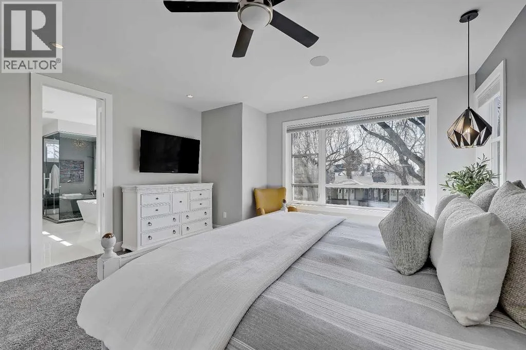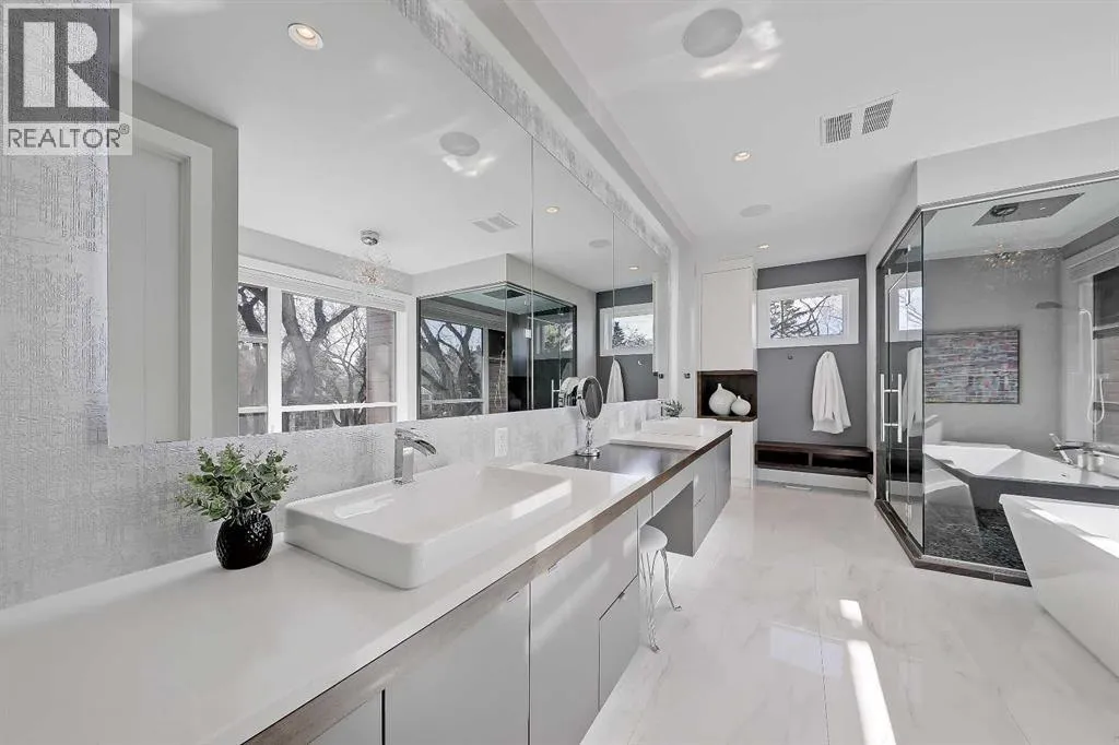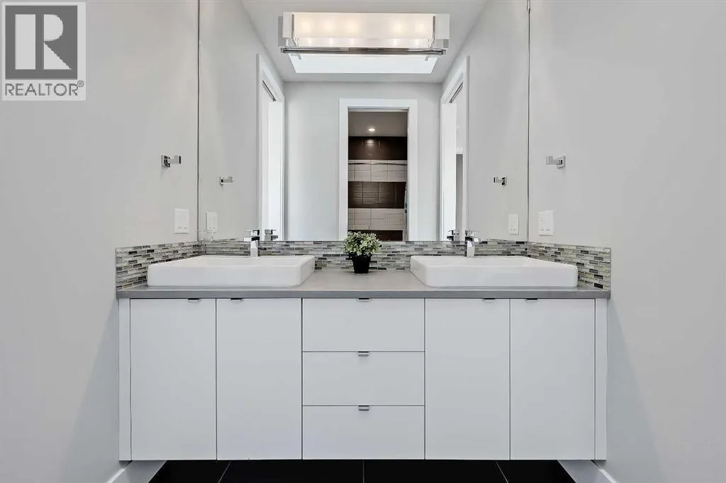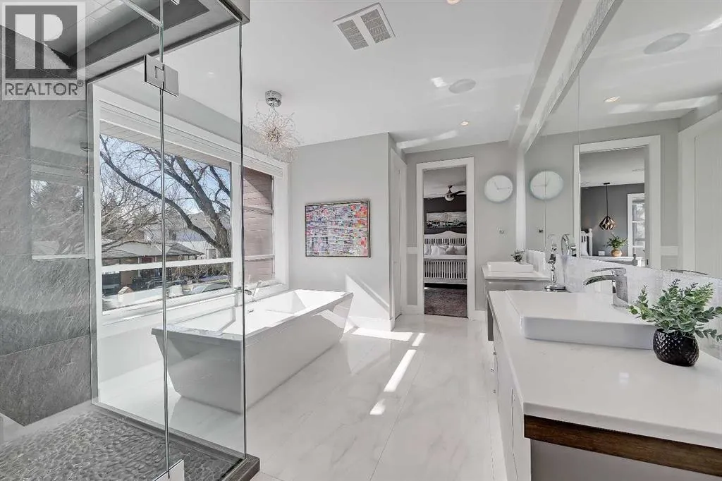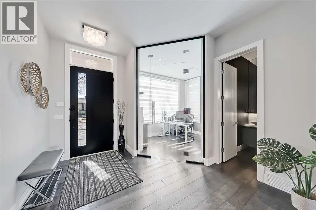 Experience elevated living in this exceptional custom-built luxury home in North Glenmore Park, offering over 3,400 sq ft, 6 bedrooms, and 4.5 bathrooms. Designed with a seamless blend of modern architecture, high-end finishes, and everyday functionality.As you enter, you're greeted by a spacious foyer that flows effortlessly into a stunning open-concept main floor, defined by soaring ceilings, expansive windows, and abundant natural light. At the heart of the home is a chef-inspired kitchen featuring custom cabinetry, premium Jenn-Air appliances, quartz countertops, and an oversized islandâperfect for both everyday living and sophisticated entertaining. The adjoining dining area and elegant living room, anchored by a sleek linear fireplace, create a warm yet refined atmosphere.Designed for todayâs lifestyle, the main floor also offers a glass-enclosed office and an additional private den with built-in millwork, giving you a dedicated space to work or play room that doesn't take up the whole house. A well-appointed mudroom with 5 custom lockers provides exceptional storage and direct access to the heated oversized double garage.Upstairs, the primary suite is an absolute dream. The walk-in closet is spacious, and the ensuite feels like a spa, with dual showerheads (including a rain shower and spray nozzle), a steam shower, and in-floor heating. Itâs pure luxury. The other THREE beds are generously sized, with one enjoying a private 3-pc ensuite and the other two sharing a lovely 5-pc Jack-and-Jill ensuite with a skylight.The fully developed lower level is designed for entertainment & wellness. The media room is set up for movie nights or big game days with a 120â projector screen and built-in surround sound for an immersive experience. There's also a gym OR 6th bed, a games area with pool table, a wet bar, in floor heating, and the integrated whole-home audio enhances both indoor and outdoor experiences.Step outside to your private outdoor oasis, complete w ith a covered deck with built-in heater, outdoor speakers, built-in BBQ station, irrigation system, and ambient gemstone lightingâperfect for year-round entertaining.The oversized double garage (27 Wx 23 D) with a heater provides more than enough space for your cars, plus extra storage. The home also has all the smart tech you could want plus multi-zone air conditioning, a VacuFlow system on all three floors, and motion-sensor lighting.Ideally located just minutes from the vibrant shops and dining of Marda Loop, Glenmore Reservoir's scenic walking & cycling paths, top-rated schools including Altadore School (K-6), private specialized learning at Rundle Academy and Master's Academy & College, along with nearby options like Lycée international de Calgary and Central Memorial. This home offers the perfect balance of luxury, lifestyle, and location.A rare opportunity to own a turnkey luxury residence in North Glenmore Parkâwhere sophisticated design meets everyday living. (id:27476)