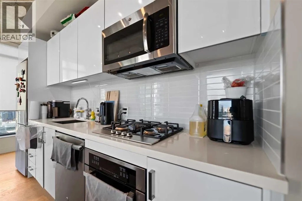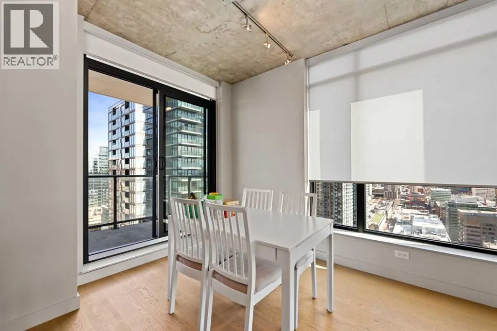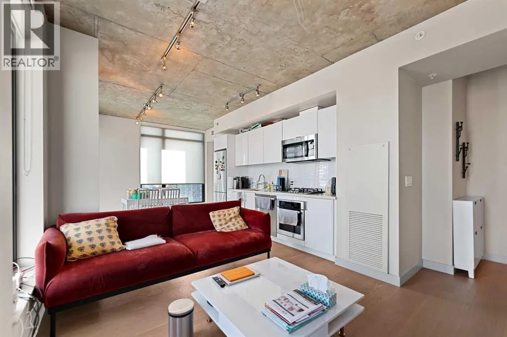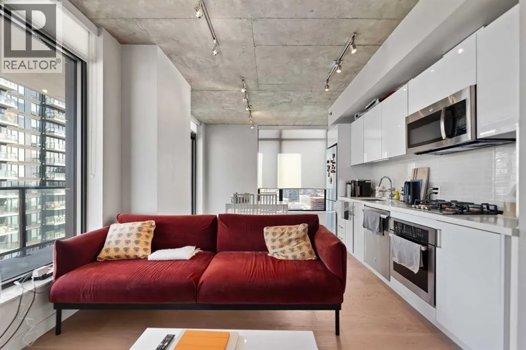 Experience elevated urban living in this stunning 2-bedroom, 2-bathroom corner unit on the 28th floor of the sought-after 6th and Tenth building in Calgaryâs Beltline. Nearly floor-to-ceiling windows frame sweeping city and mountain views, filling the open-concept layout with natural light and highlighting its sleek industrial design.The modern kitchen features quartz countertops, a gas range, and stainless-steel appliances, seamlessly flowing into the living and dining areas. Step onto the large private balcony to unwind, entertain, or enjoy breathtaking sunsets over the skyline.Additional features include in-suite laundry, central air conditioning, and one titled underground parking stall. Residents enjoy premium amenities such as a fitness centre, outdoor pool, concierge service, and stylish recreation spaces. Each floor also offers a garbage chuteâan uncommon convenience in most condo buildings.Located in the heart of downtown, youâre steps from top restaurants, shopping, entertainment, transit, and the Calgary Stampede grounds. The building is short-termârental friendly, offering a rare turn-key opportunity for investors.Donât miss your chance to own this exceptional high-rise home in one of Calgaryâs most vibrant communities. (id:27476)
