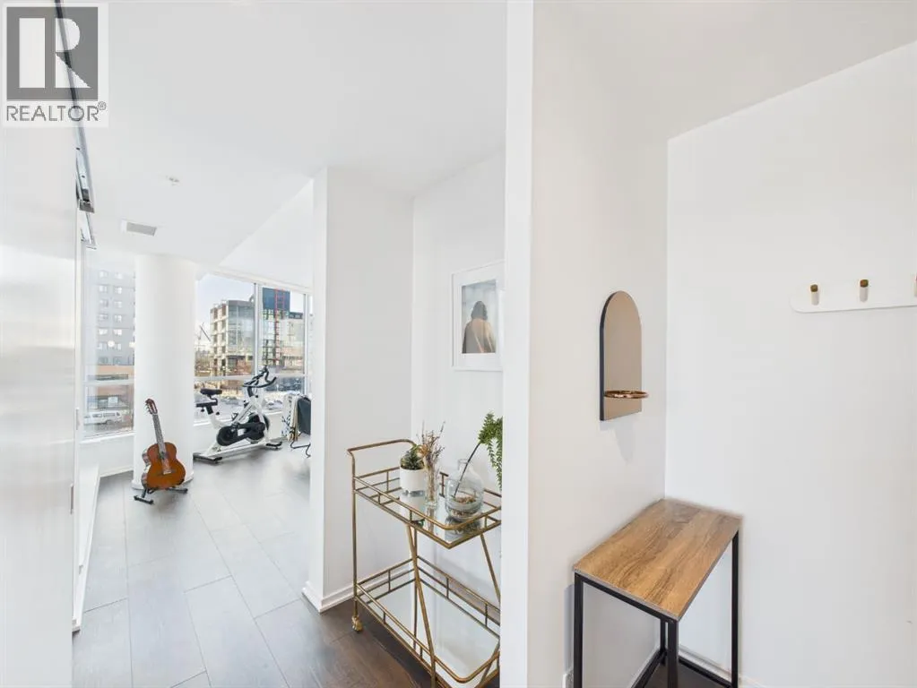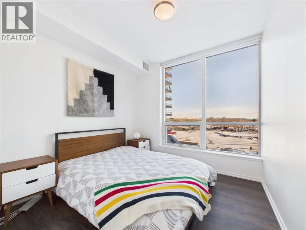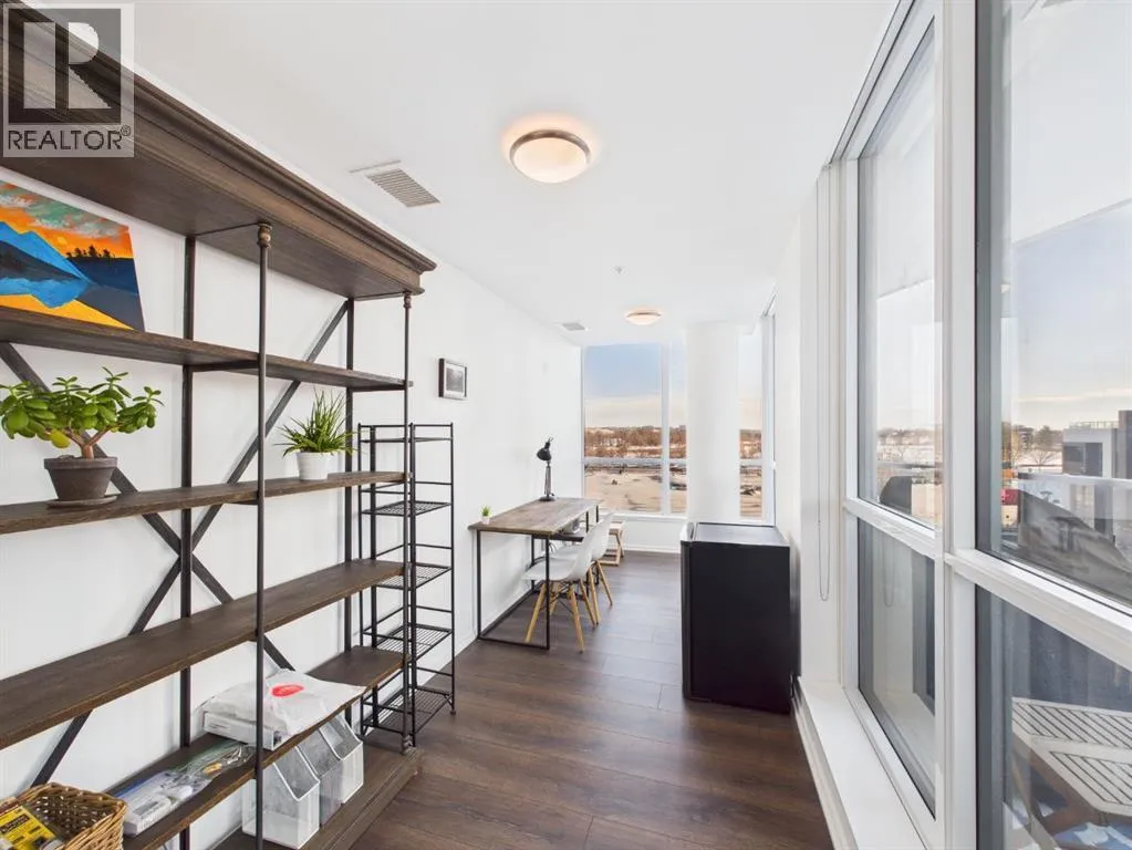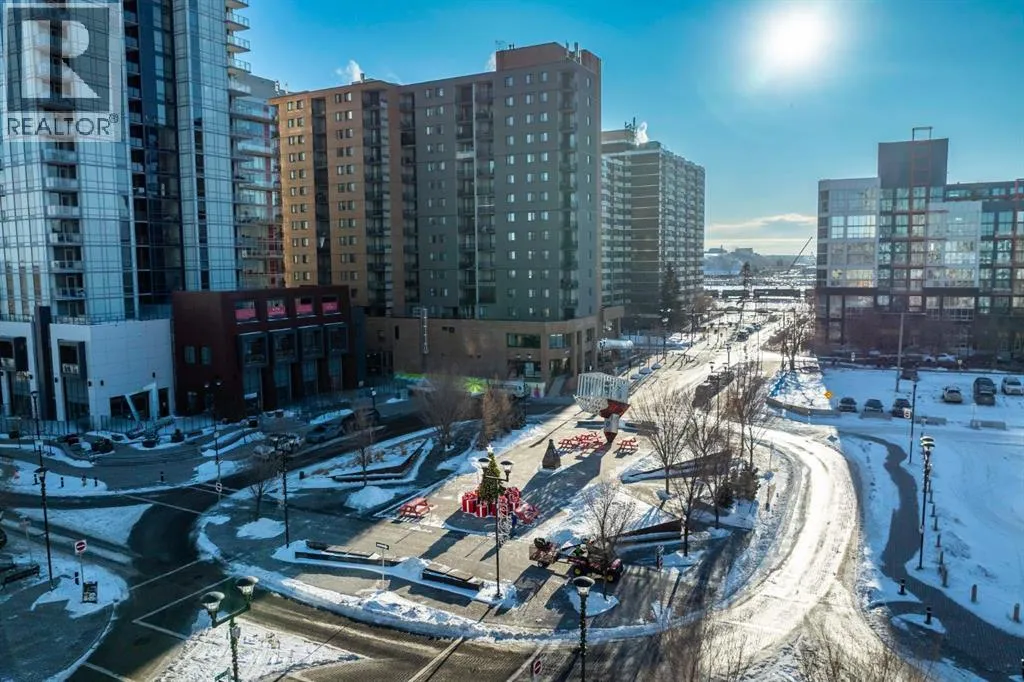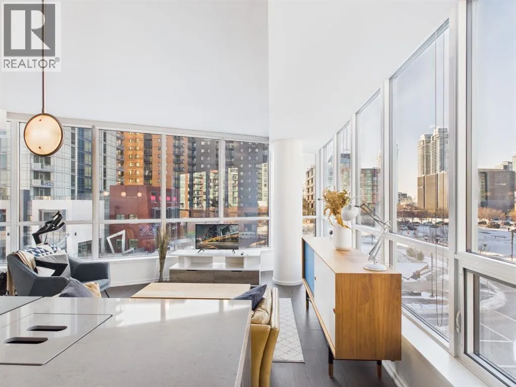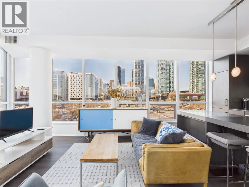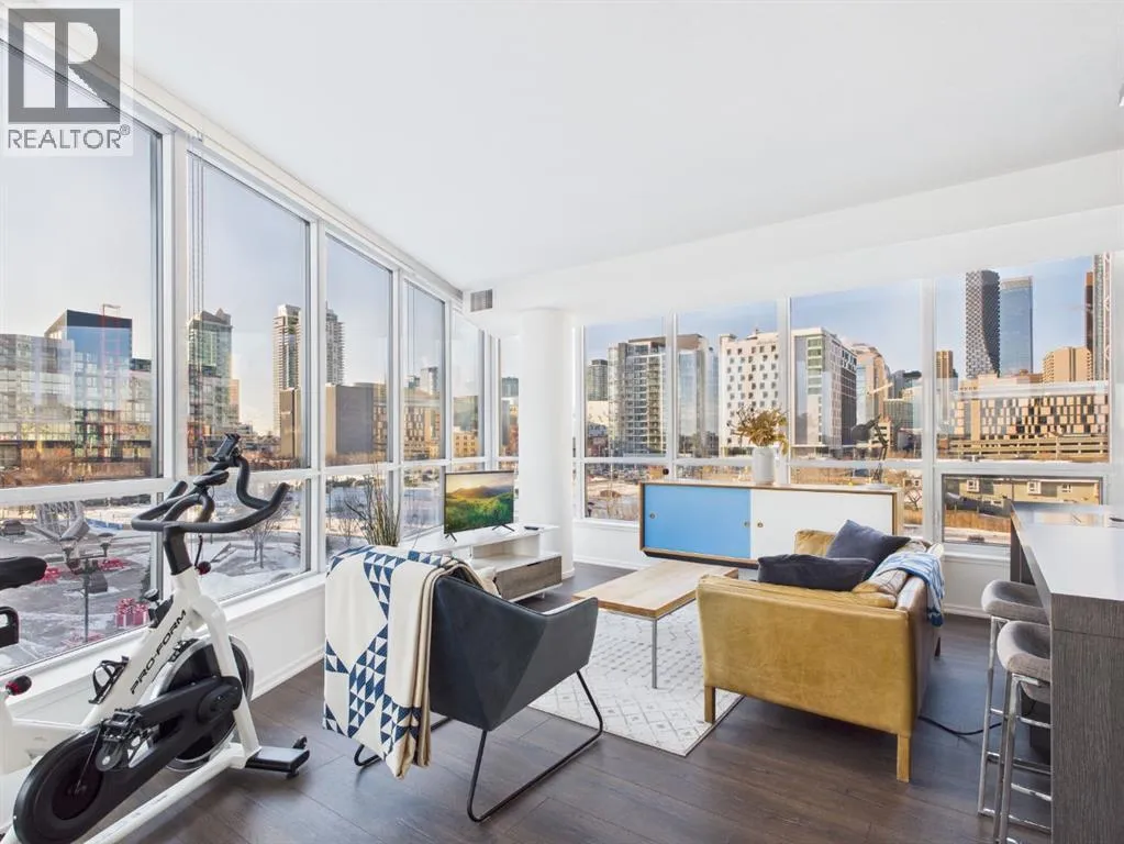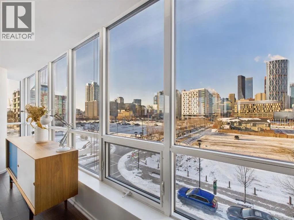 Wake up to sunlight pouring in from every angle in this third-floor 1 bedroom + den/bedroom home in the Verve, where city living meets everyday comfort. With 180-degree views stretching from the southeast all the way to the northwest, your days begin with glowing sunrises and wind down with golden evening light filtering through expansive windows. The open-concept layout is both welcoming and functional, featuring laminate flooring, quartz countertops with apple-box storage, and a modern kitchen designed for relaxed mornings and effortless entertaining. The versatile den easily functions as a second bedroom, home office, or guest retreat, adapting to your lifestyle as it evolves. Enjoy year-round comfort with air conditioning, in-suite washer and dryer, and the convenience of a storage locker and an underground titled extra-wide parking stall. Beyond your front door, the Verve offers exceptional amenities including a beautifully landscaped courtyard, a fully equipped fitness centre, and an inviting social room with cozy fireplaces. With easy access to East Village, river pathways, dining, and downtown amenities, this bright, modern home delivers the perfect blend of comfort, style, and connected urban living. Whether you are looking for inner-city living or an investment property this home is perfect! (id:27476)