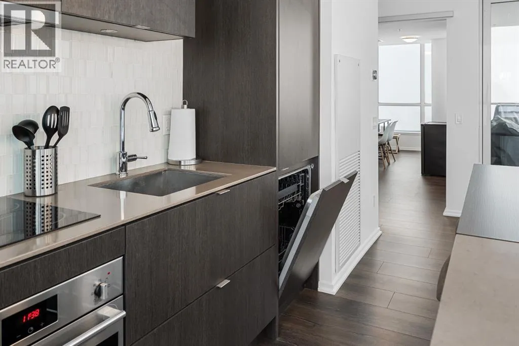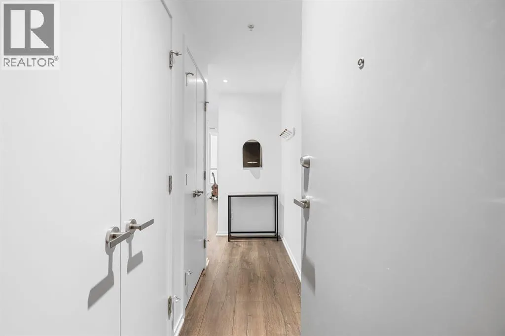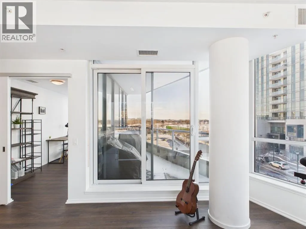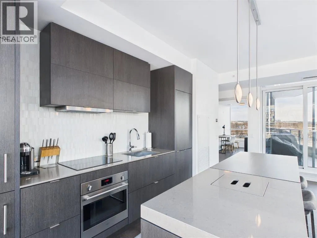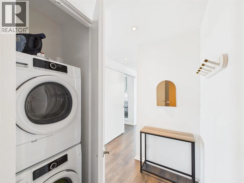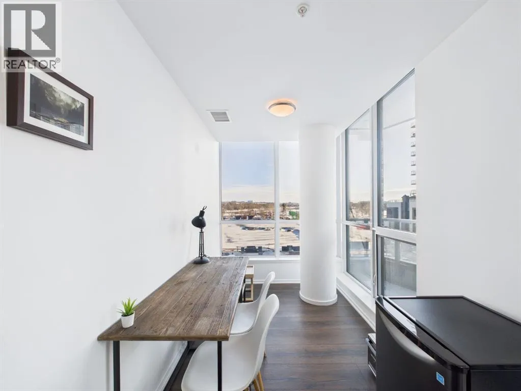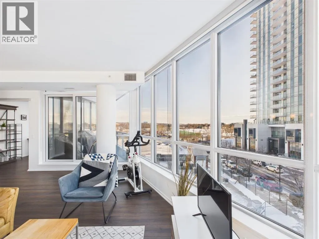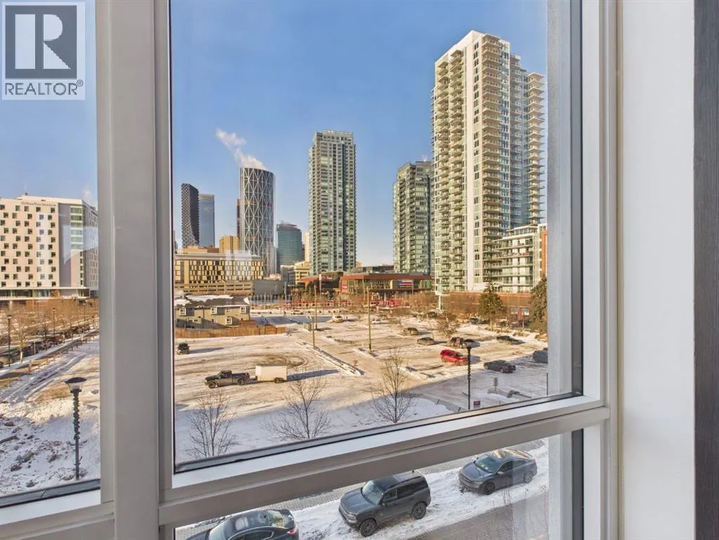 Wake up to sunlight pouring in from every angle in this third-floor 1 bedroom + den/bedroom home in the Verve, where city living meets everyday comfort. With 180-degree views stretching from the southeast all the way to the northwest, your days begin with glowing sunrises and wind down with golden evening light filtering through expansive windows. The open-concept layout is both welcoming and functional, featuring laminate flooring, quartz countertops with apple-box storage, and a modern kitchen designed for relaxed mornings and effortless entertaining. The versatile den easily functions as a second bedroom, home office, or guest retreat, adapting to your lifestyle as it evolves. Enjoy year-round comfort with air conditioning, in-suite washer and dryer, and the convenience of a storage locker and an underground titled extra-wide parking stall. Beyond your front door, the Verve offers exceptional amenities including a beautifully landscaped courtyard, a fully equipped fitness centre, and an inviting social room with cozy fireplaces. With easy access to East Village, river pathways, dining, and downtown amenities, this bright, modern home delivers the perfect blend of comfort, style, and connected urban living. Whether you are looking for inner-city living or an investment property this home is perfect! (id:27476)