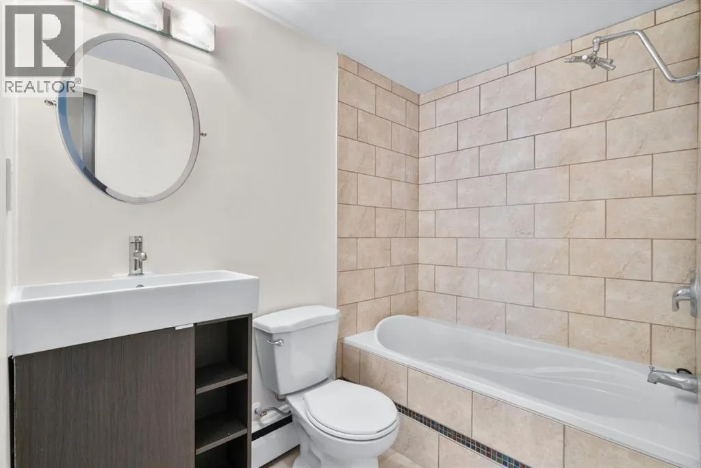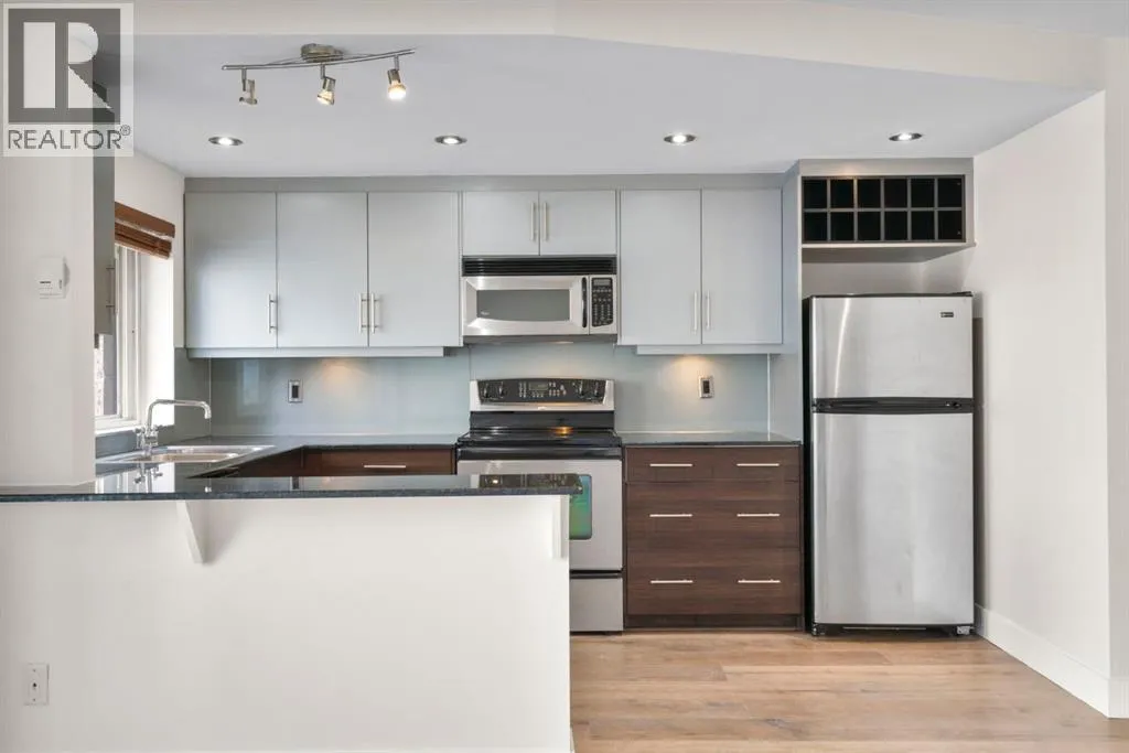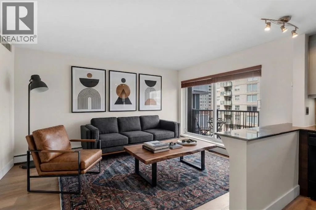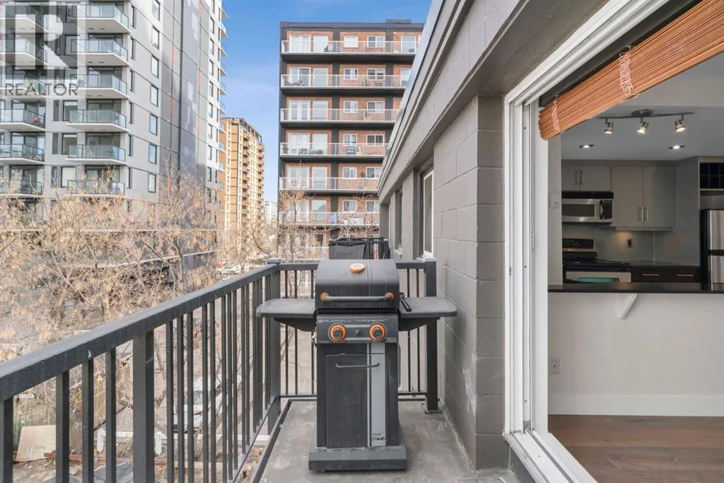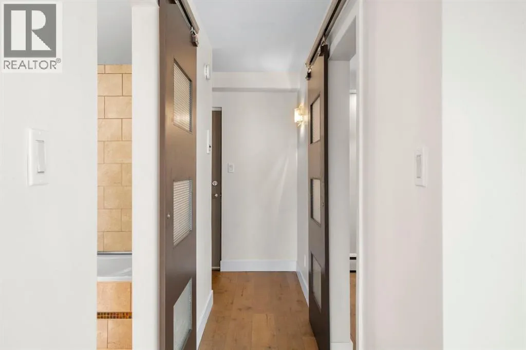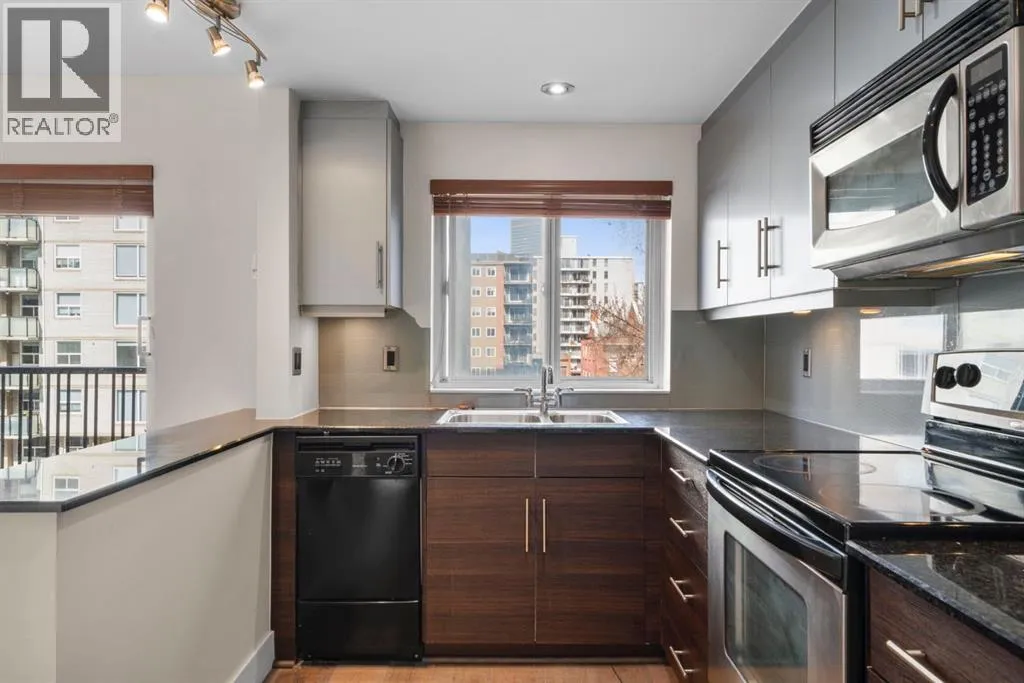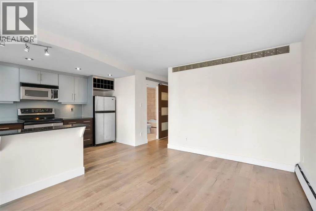 TOP-FLOOR CORNER UNIT - IN ONE OF DOWNTOWN'S BEST LOCATIONS - STEPS TO 17TH AVE! Set on one of the most desirable streets in the Beltline area, this location delivers unbeatable walkability. Just steps to 17th Avenue!! You will be surrounded by Calgaryâs top restaurants, cafés, fitness studios and boutiques - all within a 5-minute walk. Quiet, tree-lined and incredibly central, this building is on a street that offers both energy and calm. Located in a well-maintained small (only 16 units!) CONCRETE building, this TOP FLOOR, corner unit offers added privacy with no neighbours above you. This 4-level walk-up is known for its solid construction and quiet living. Secure FOB access gets you in the building. Inside, youâll find NEW HARDWOOD floors throughout, BIG closet at front entrance. This unit maximizes the space - 484 sq ft - and feels big and open! Functional 1 bedroom, 1 bathroom layout with TONS of natural light. Enjoy cooking in your kitchen with lots of counter space (GRANITE!) PLUS a great sized window above the sink! Open concept. BALCONY. Nice sized bedroom with AWESOME closet space and glass sliding doors. Barn doors, baseboards, lighting, handles and cabinet coloring - truly make this unit feel updated and modern! LAUNDRY IN THE UNIT! Brand new washer/dryer. Soaker tub. PET-FRIENDLY building (with board approval) - no size or breed restrictions - makes this a rare find for pet owners in the inner city!!! Condo fees include heat and water. An ideal opportunity for those seeking inner-city living with exceptional walkability, privacy and long-term value. Don't have a car? You can literally WALK/BIKE everywhere....But this unit comes with assigned parking! Work downtown? Enjoy the benefits of inner-city living - with reduced commute times = come home for lunch or take the dog out! Transit is close - 2 bus stops within a two min walk. Perfect for young professionals, first-time buyers or investors! STOP renting - pay your own mortgage i nstead!!!! NO POST TENSION CABLES! SHORT TERM RENTALS ALLOWED WITH BOARD APPROVAL! (id:27476)