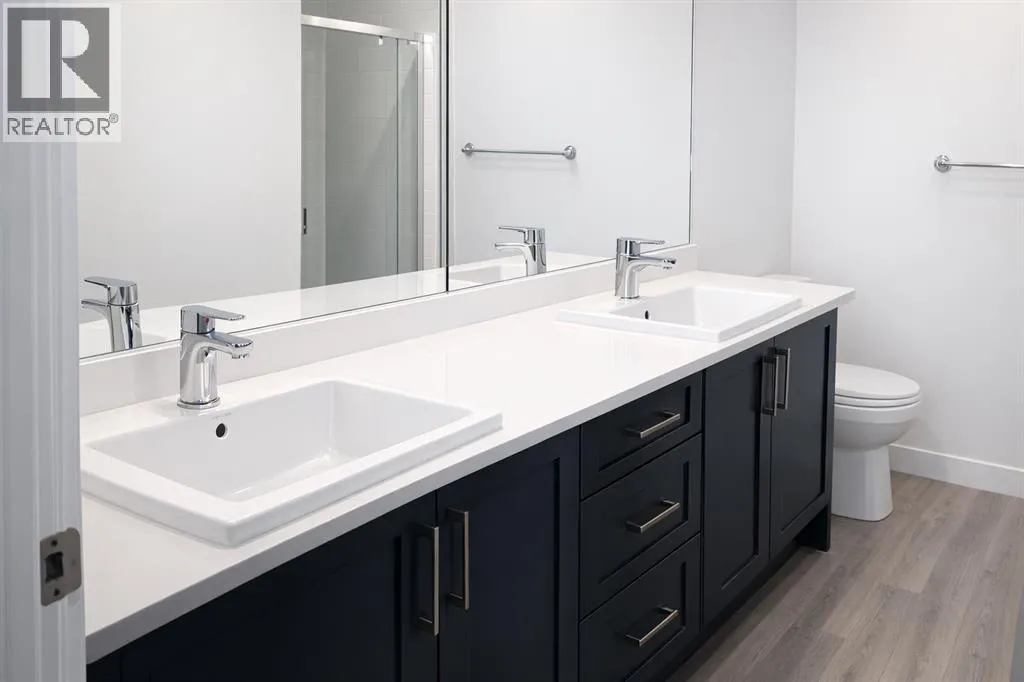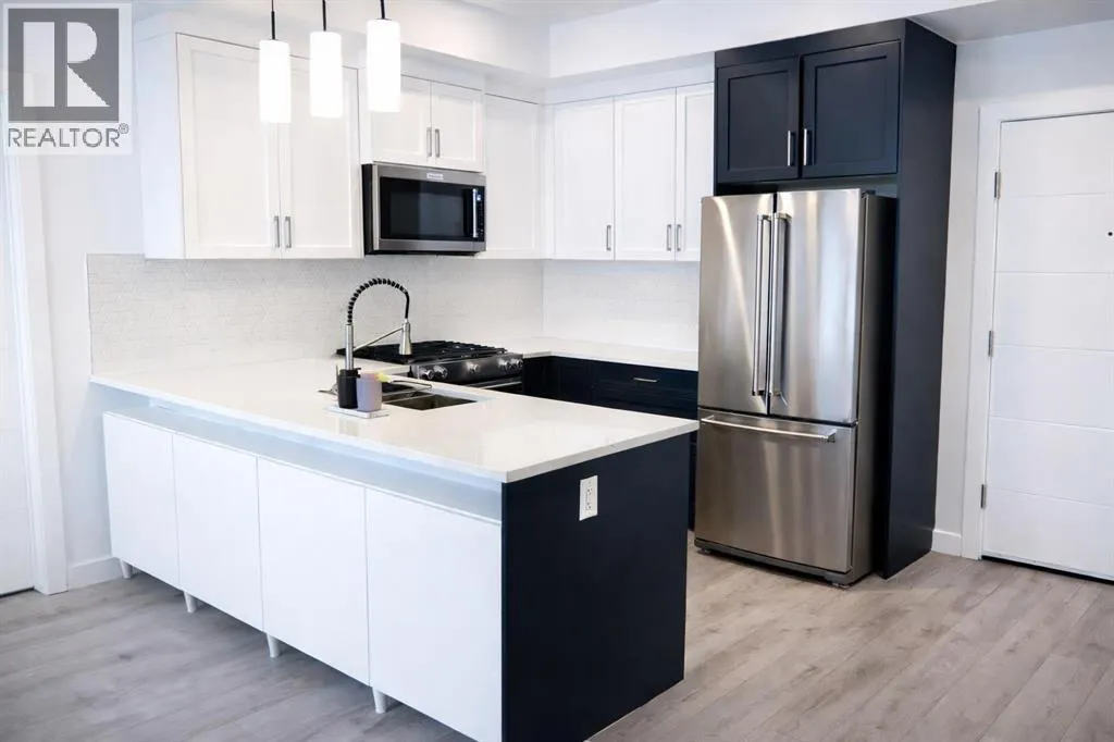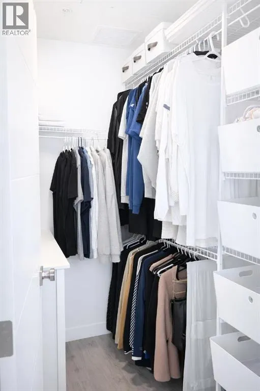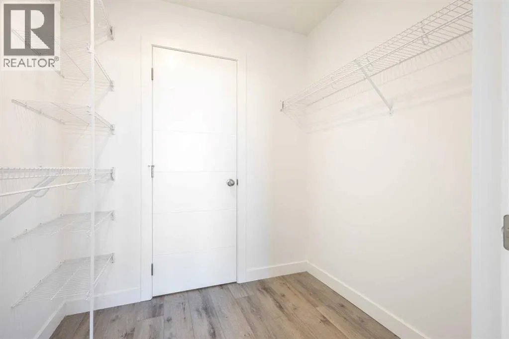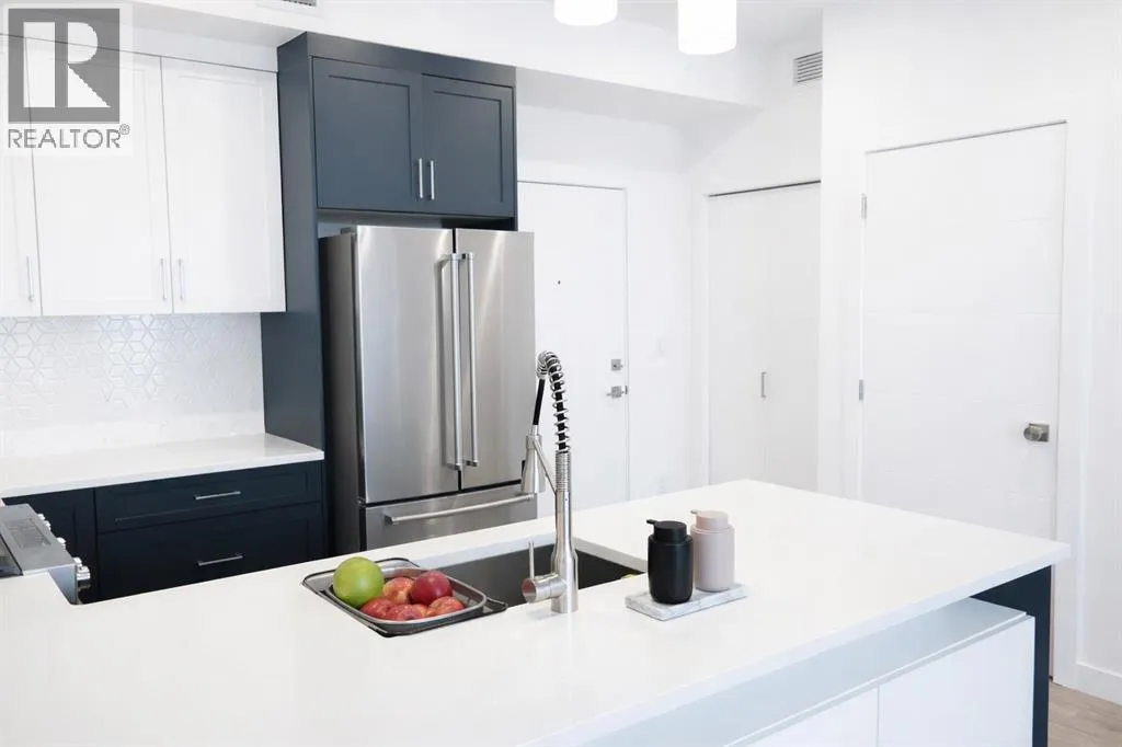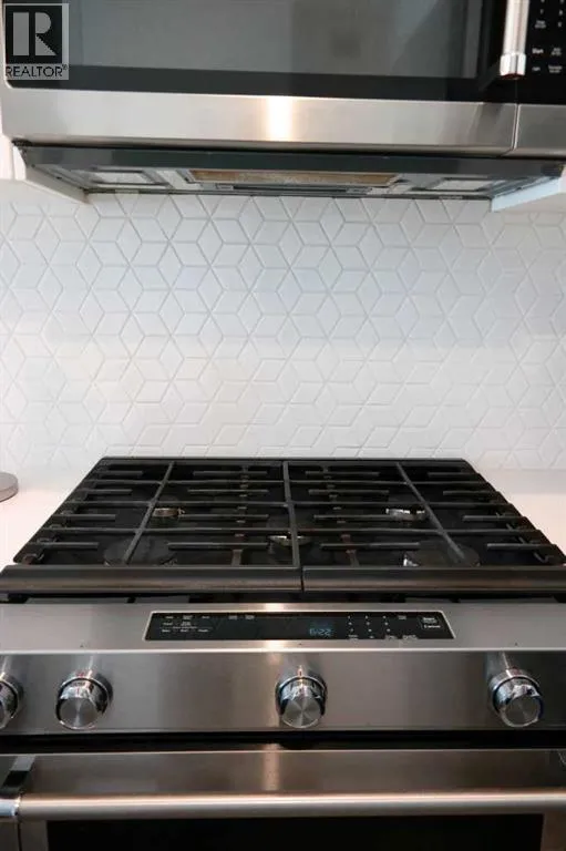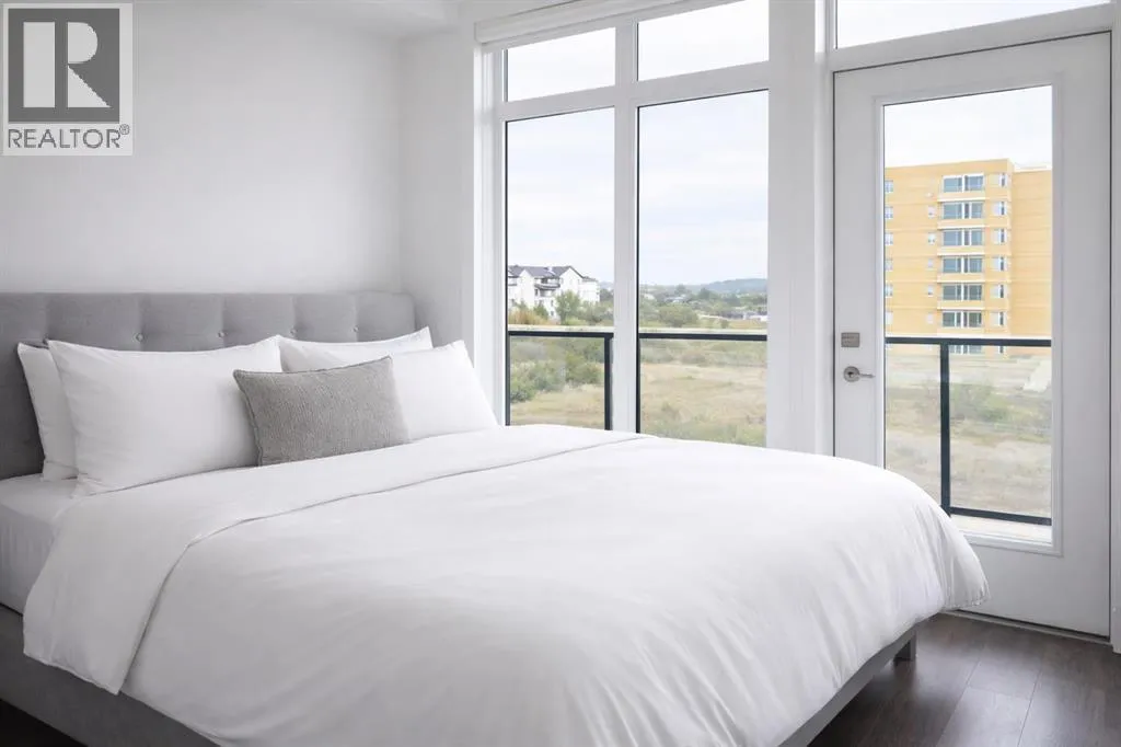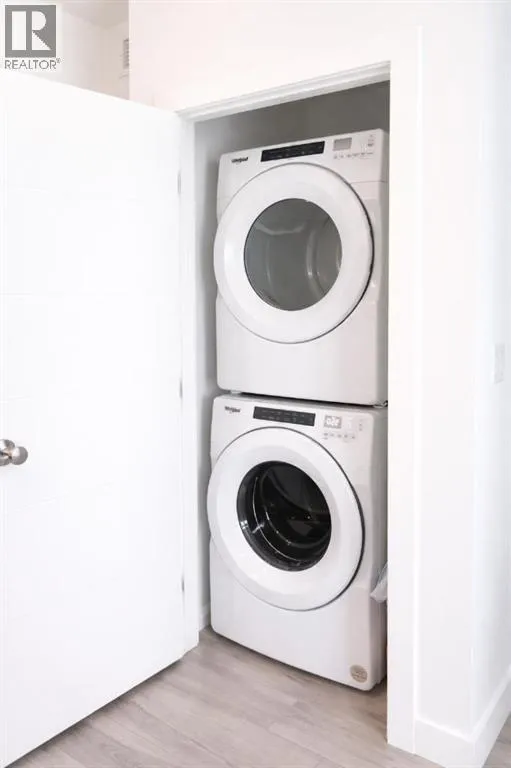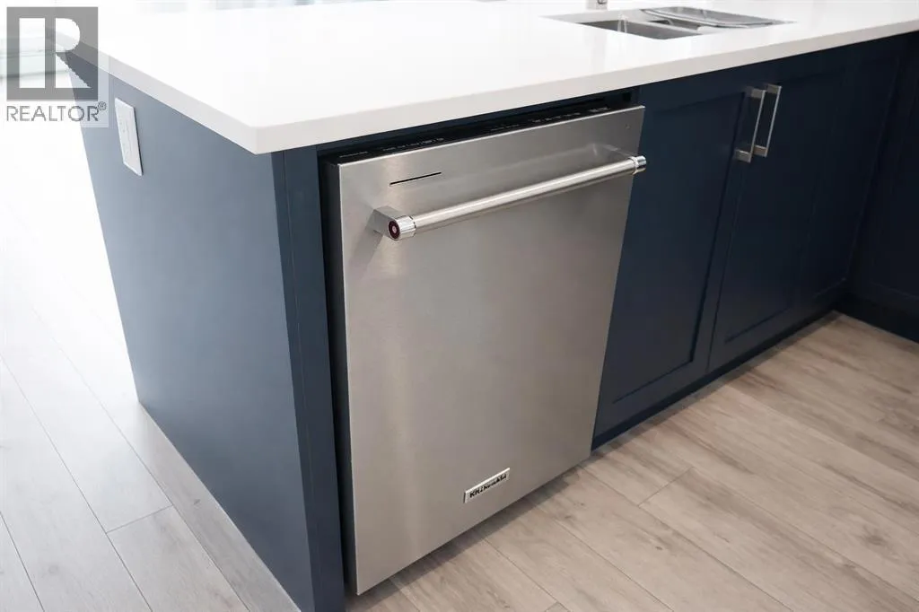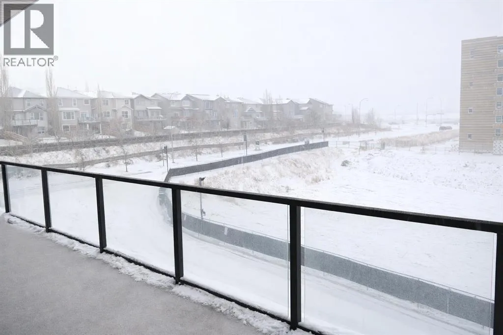 Welcome to the Springbank Hill community, known for its excellent schools and family-friendly environment. This beautiful area is bordered by a natural environmental reserve park with abundant walking trails and bike paths that connect throughout this vibrant and growing community. This new build condominium, Orion Condominium, is located at 85 Street and 19 Avenue SW. This fully upgraded open-concept TOP FLOOR unit is designed to highlight its large double balcony and double-pane windows. The home features a Lennox mini-split heating and cooling system, an efficient dual heating and air conditioning system professionally installed with permits. Luxury vinyl plank flooring with soundproof underlay runs throughout the living room, dining room, kitchen, bathroom, and primary bedroom. The European-inspired kitchen is finished with premium kitchen cabinetry, shaker-style cabinets throughout all bathrooms, soft-close drawers, marble quartz countertops, KitchenAid appliances (refrigerator, gas stove, microwave, dishwasher), stacked front-load washer and dryer, and a natural gas BBQ line installed on the balcony. Includes one titled parking stall and an oversized storage locker (75 sq. ft.) located beside the parking stall. Walking distance to Aspen Landing Shopping Centre with grocery stores, restaurants, cafes, clinics, and amenities. Quick access to Stoney Trail and Bow Trail, and close to 69 Street C-Train Station for easy downtown access, as well as Westside Recreation Centre. (id:27476)