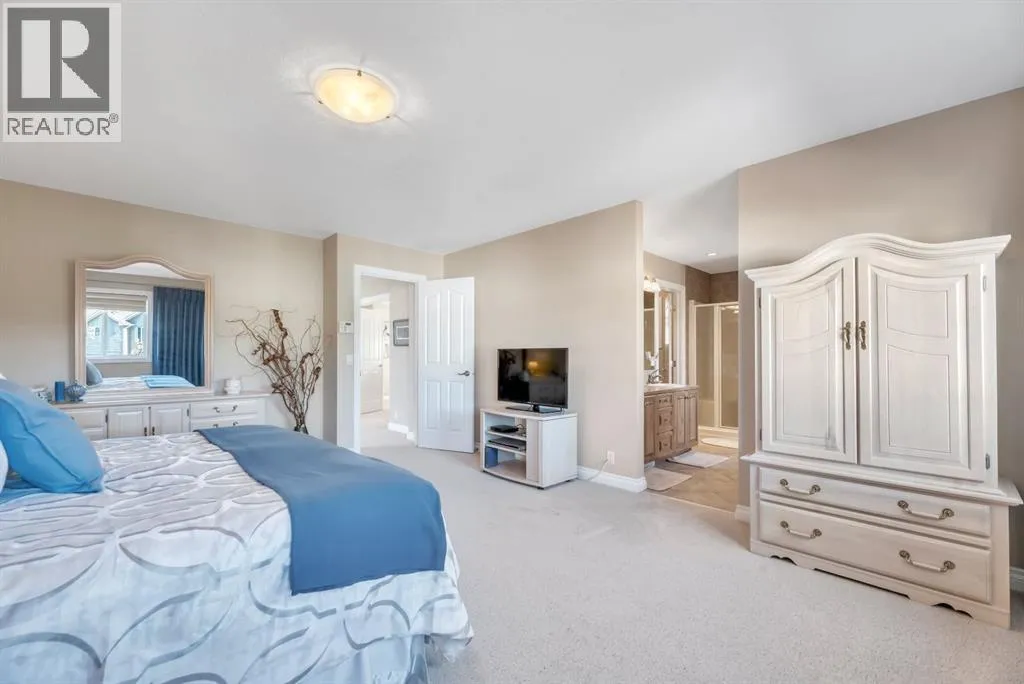 Welcome to this exceptional in the highly sought-after community of Evergreen SW, perfectly positioned on a very rare 8,223 sq ft private oasis lot surrounded by mature trees & professional landscaping inc. a large vegetable garden. Meticulously maintained, this custom Jager built 2-storey offers almost 3300 sq ft of refined living space & showcases pride of ownership at every turn. From the moment you arrive, the stunning solid oak front door sets the tone for the quality and craftsmanship found throughout. Inside, youâre greeted by a bright and elegant main floor featuring a versatile formal dining room/home office, expansive windows dressed with Hunter Douglas Pirouette blinds, and a warm, inviting living room anchored by a gas fireplace. High end flooring is throughout the home and has diagonally laid maple hardwood flooring for a timeless touch, complemented by plush carpeting for comfort & quality porcelain tile work.The beautiful kitchen offers maple cabinetry, a 6â granite island with wine rack, undermount lighting, newer slide-in range and microwave hood fan, dishwasher, fridge and garburator. The heart of this home lies in the functionality. Step in from the double attached garage to the combo back entry/laundry room with dedicated wash sink. This space flows into a large walk through pantry with shelving on both sides offering unparalleled convenience for bringing in groceries & staying clean and organized. Speaking of clean, this home also has a central vac system. The backyard is your own private retreatâan incredible 550 sq ft two-tier cedar deck, freshly stained & complete with built-in bench seating, planters, gas line for BBQ (BBQ included), & under-deck storage. The beautiful landscaping is enhanced by a full irrigation & lighting system & includes a newer shed as well as 3 rain barrels, creating the perfect setting for a fabulous outdoor lifestyle! Upstairs, youâll find a sunken bonus room, a full 4-piece bathroom, & a massive second bedroom with dual closets (easily converts into two bedrooms with the smart layout provided). The spacious primary suite overlooks the backyard & features a luxurious 5-piece ensuite with cozy in floor heat, dual sinks, soaker tub, separate shower, & a fully customized W/I closet.The basement has been developed with thought & care...includes great storage space, 3 piece bath with heated tile floor as well as tiled shower & walls. Enjoy family time, movie & sports nights with a wet bar on the way to the media room complete w/ built in speakers for max sound experience as well as a fireplace feature wall. Just behind is a great gym space (treadmill inc) with commercial carpet (& smart access to media receiver controls through the closet doors). The additional bedroom in the basement is a big bright space - comfortable for visitors or family members. Come and visit this home & see all the extras for yourself - truly a MUST SEE! Check 3D tour for all additional photos! (id:27476)